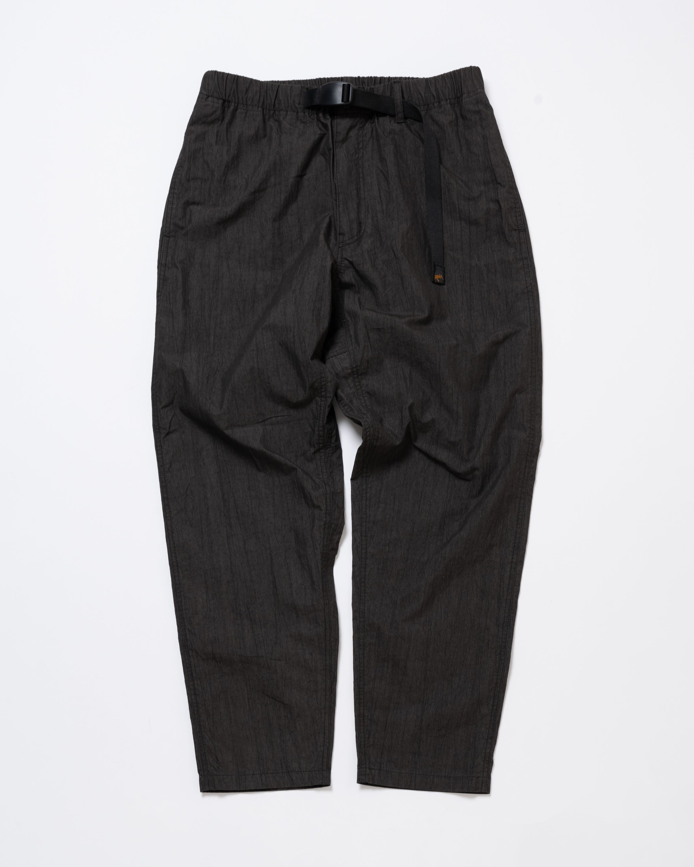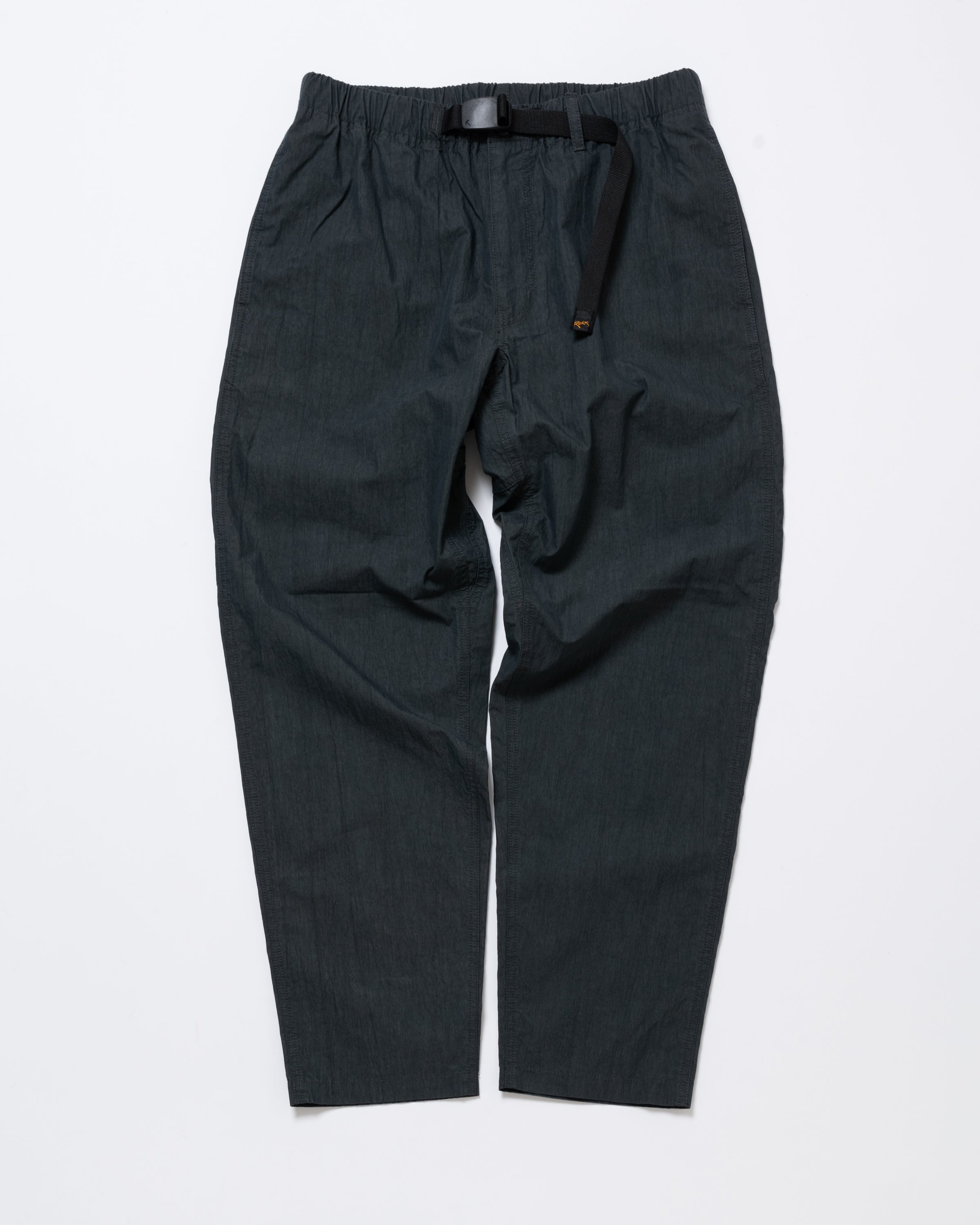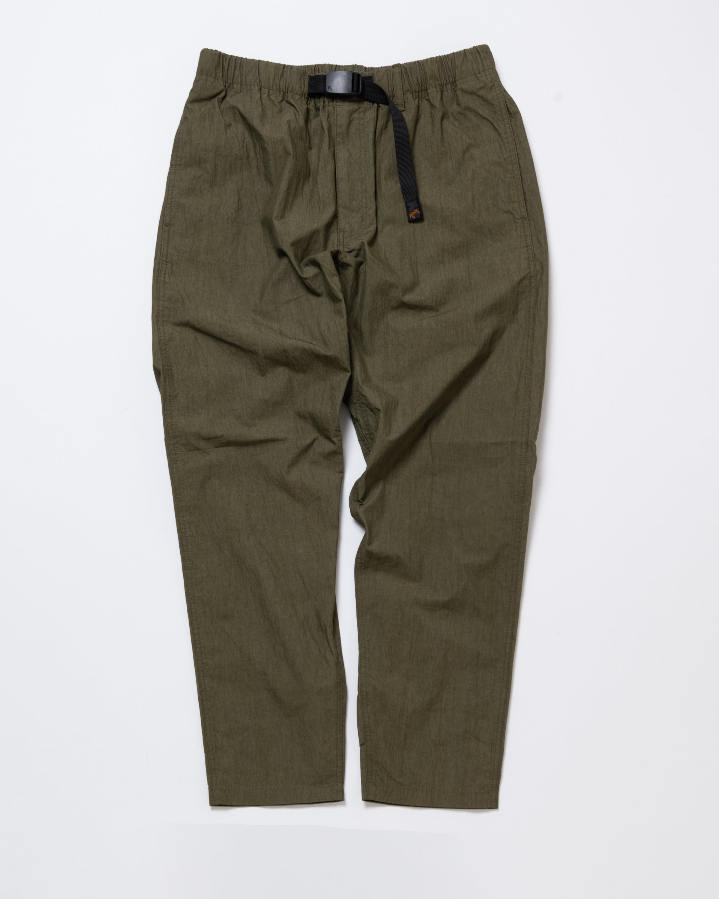ウエストの調節が簡単なウェビングベルトや、180°股を広げることが可能なガゼットクロッチ、裾が邪魔にならないテーパード仕様など、ROKXの象徴である「クライミングパンツ」としの機能を持ちつつ、カジュアルウェアとしても街でも活躍するパンツです。