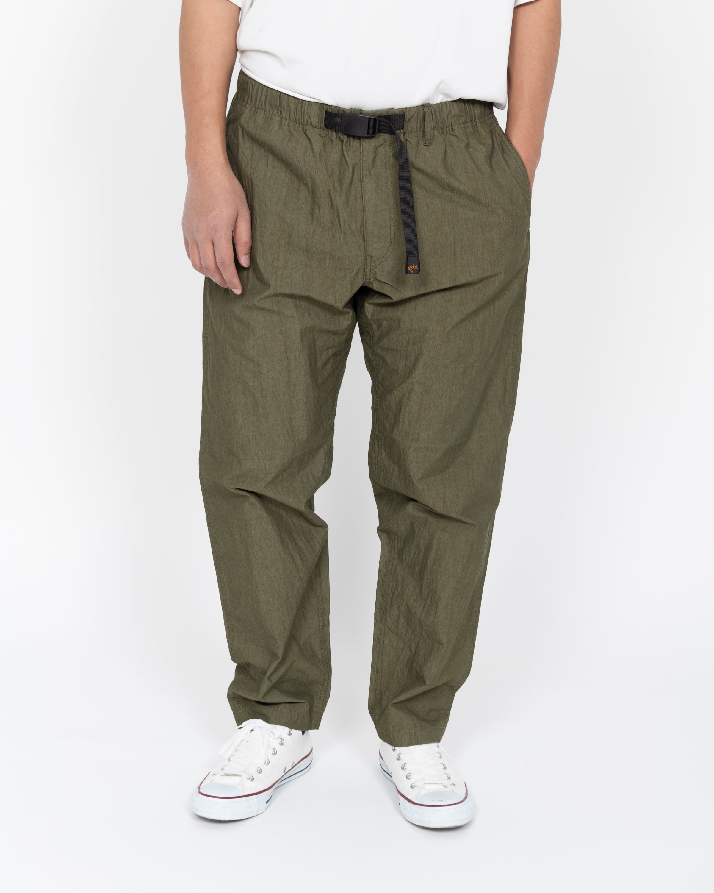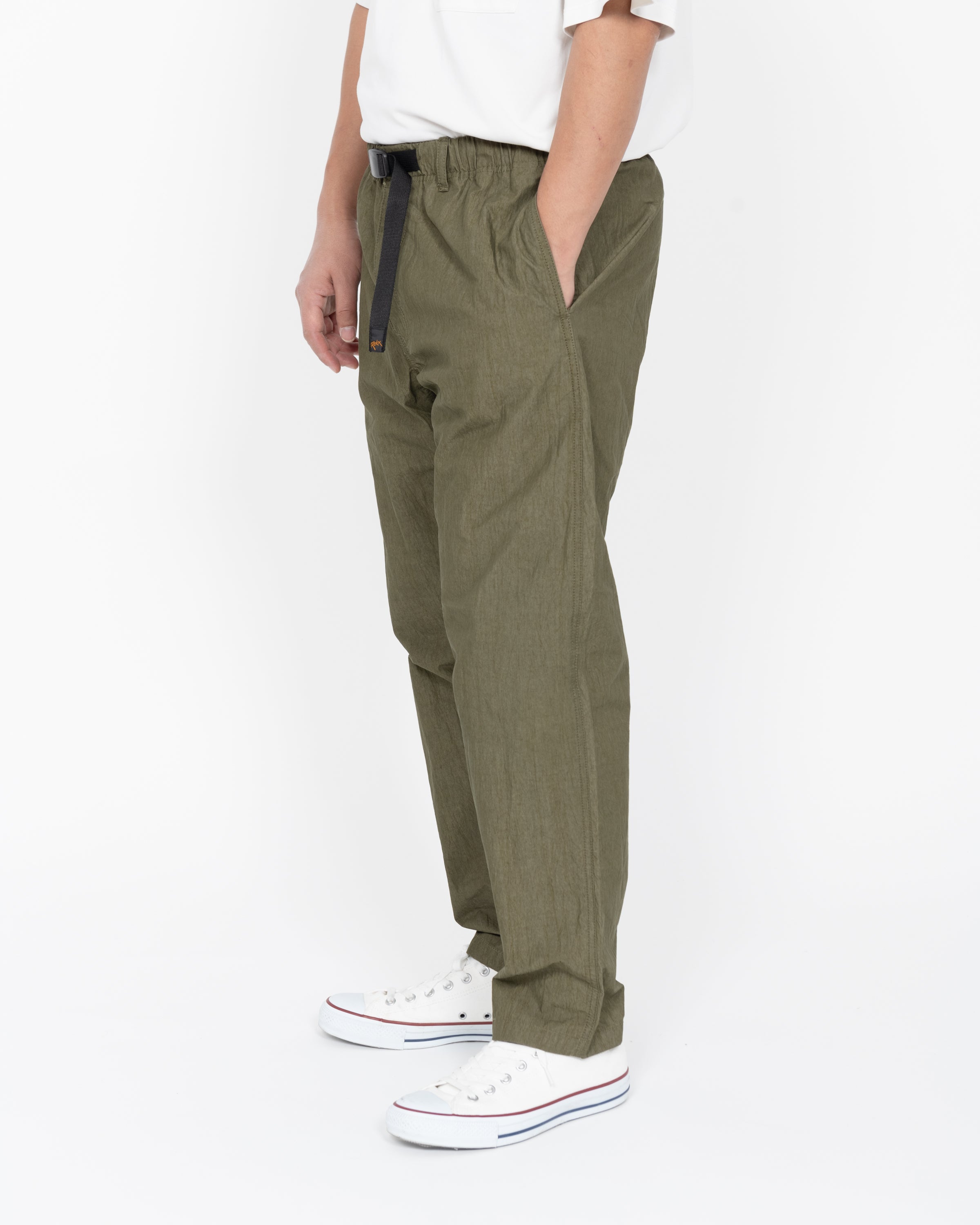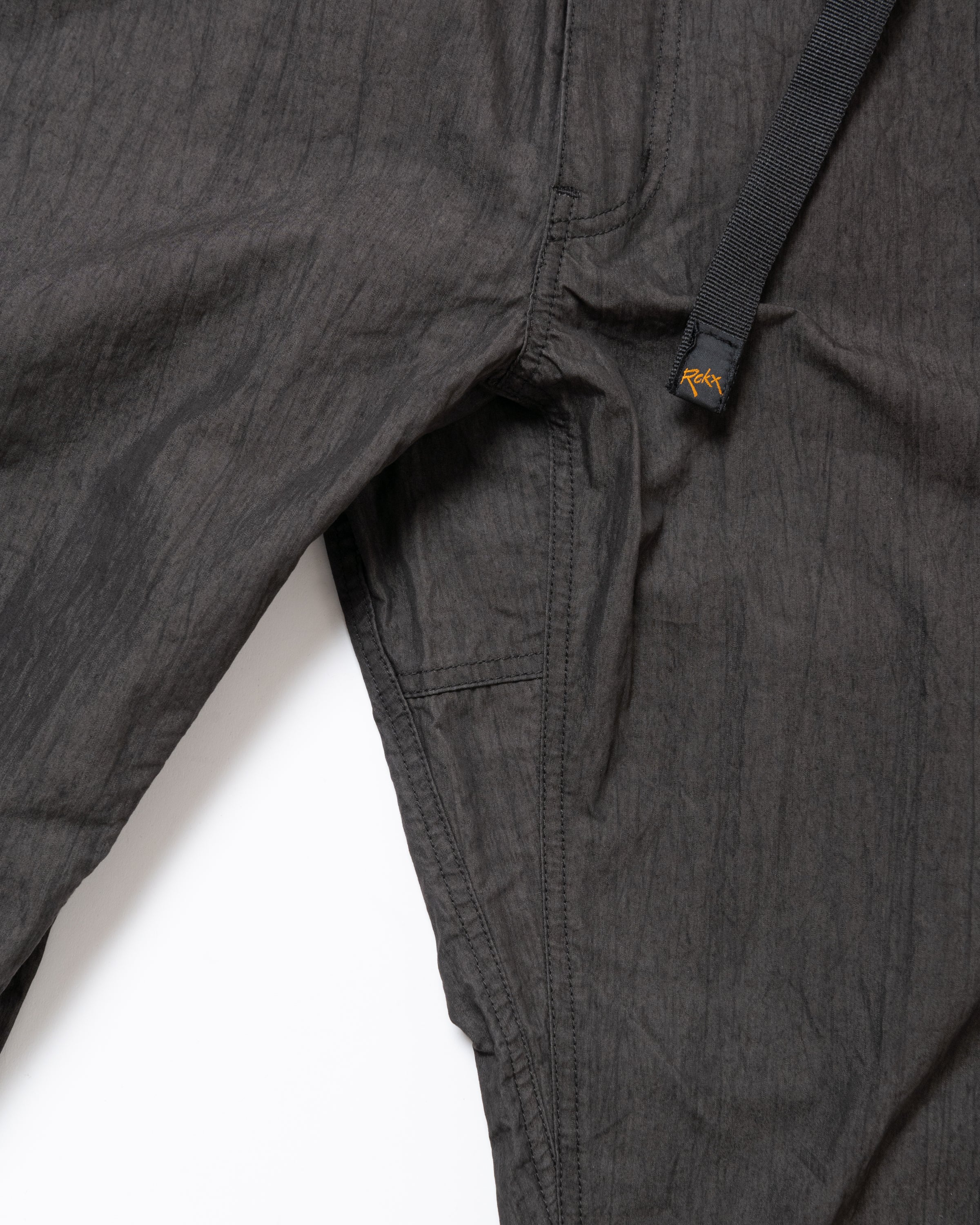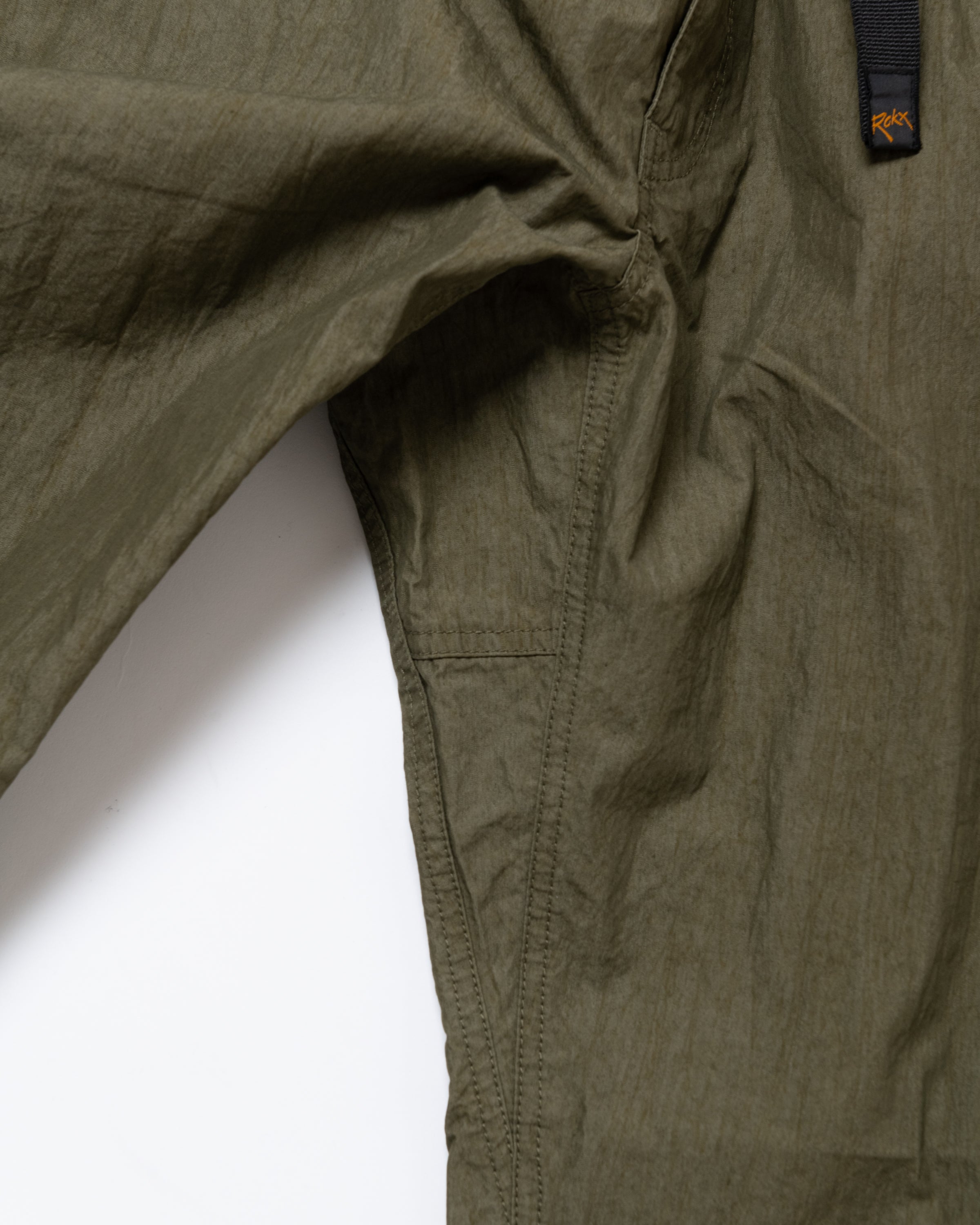 ウエストの調節が簡単なウェビングベルトや、180°股を広げることが可能なガゼットクロッチ、裾が邪魔にならないテーパード仕様など、ROKXの象徴である「クライミングパンツ」としの機能を持ちつつ、カジュアルウェアとしても街でも活躍するパンツです。