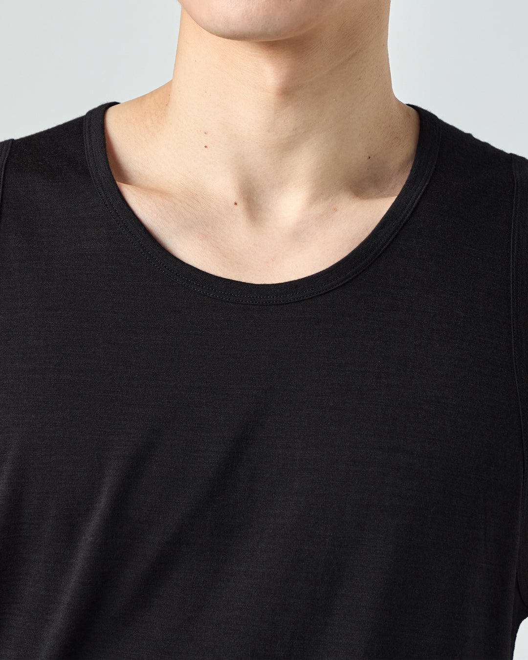 一枚でも気兼ねなく着用できるよう、襟元の開き具合やアームホールの大きさを緻密に設計しました。脇下が見えすぎないよう配慮しつつ、動きやすさも確保した絶妙なバランスです。