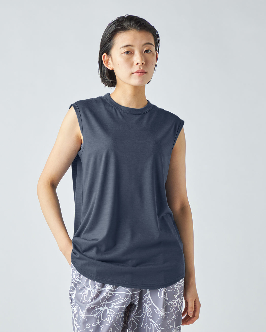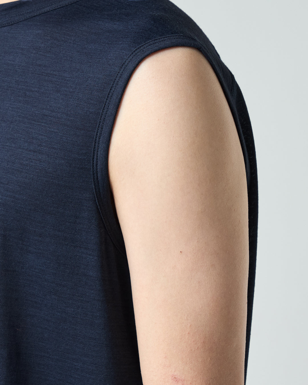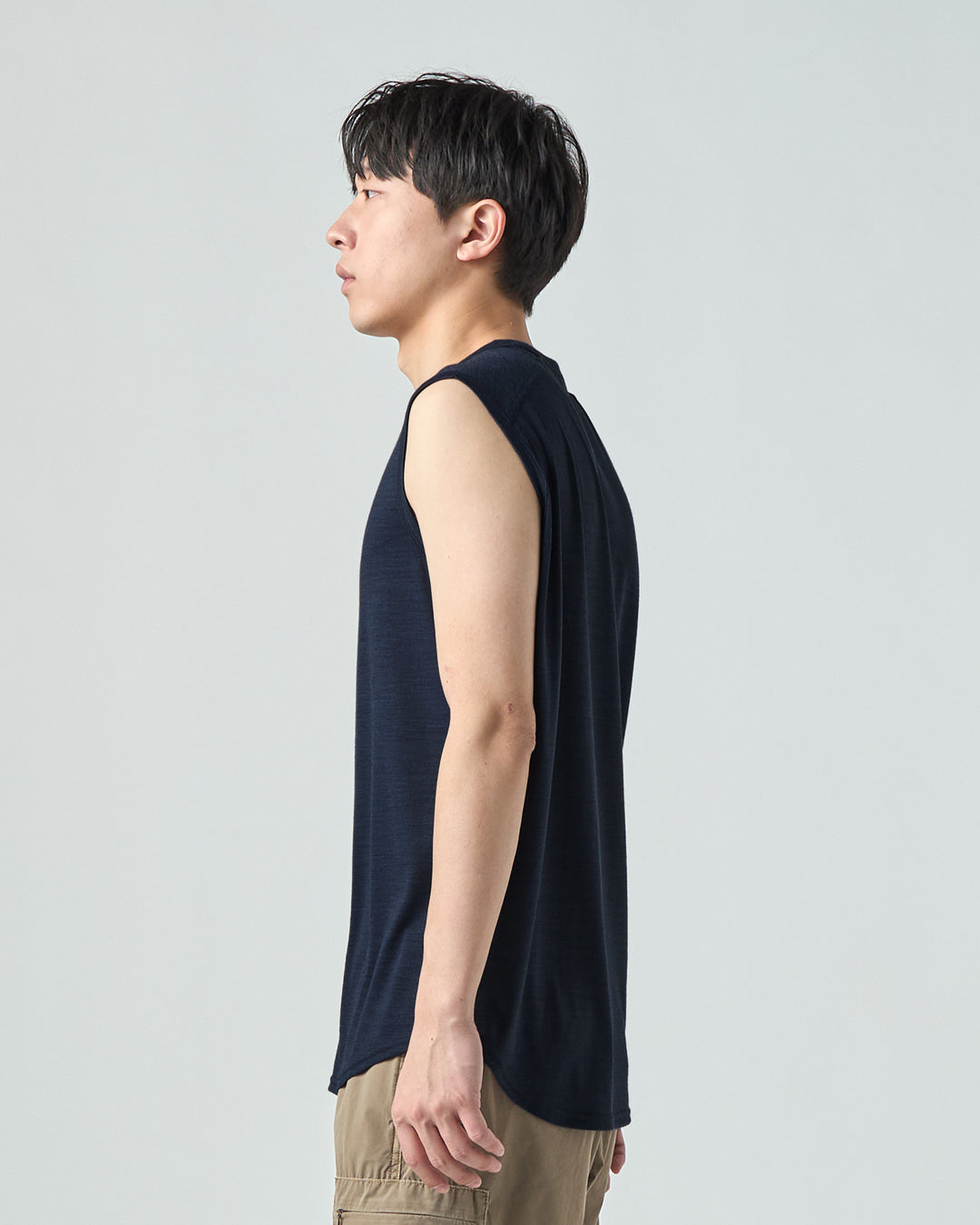 [sn]定番素材のメリノーウール50%・ポリエステル50%の混紡生地を使用したノースリーブ。