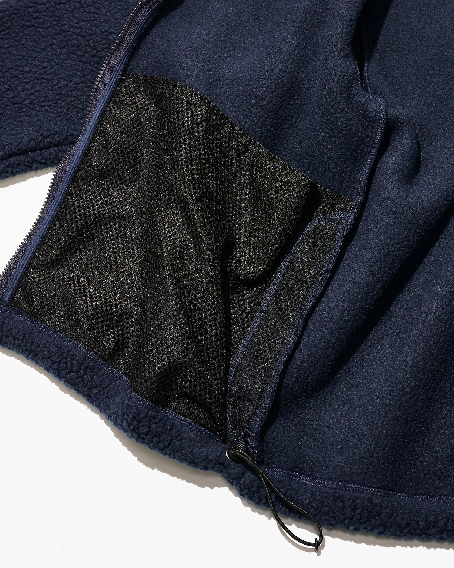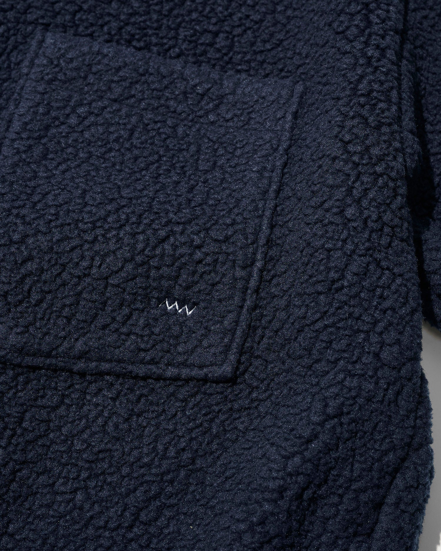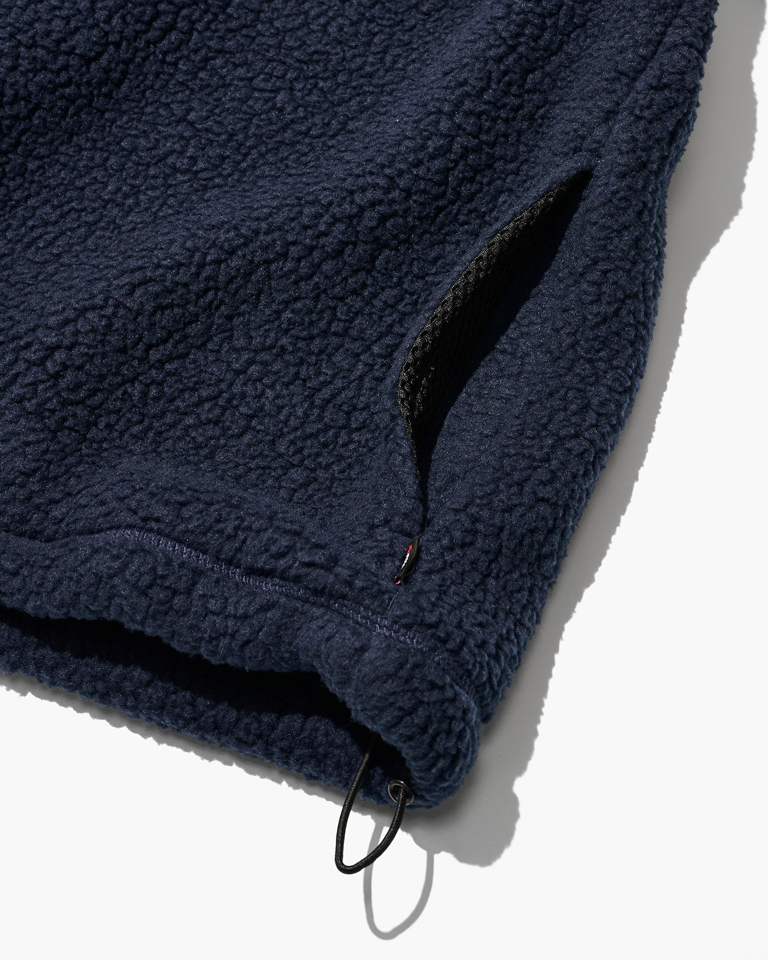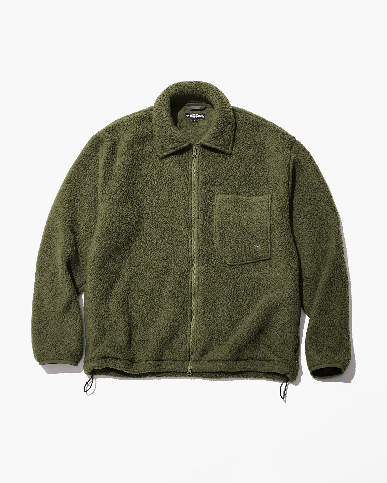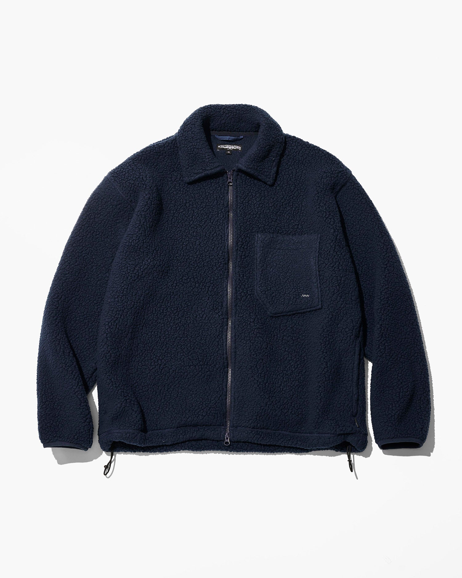 ファブリックにはボリュームのあるボアタイプのフリースを採用。クラシックなスタイルに、左胸のチェストポケットはマイク・グラハムが手書きで指示した変形5角形パッチポケットがアクセントとなっている。フロントファスナーはダブルスライダーでスタイリングの幅を持たせています。裾にアジャスタードローコードを配置します。