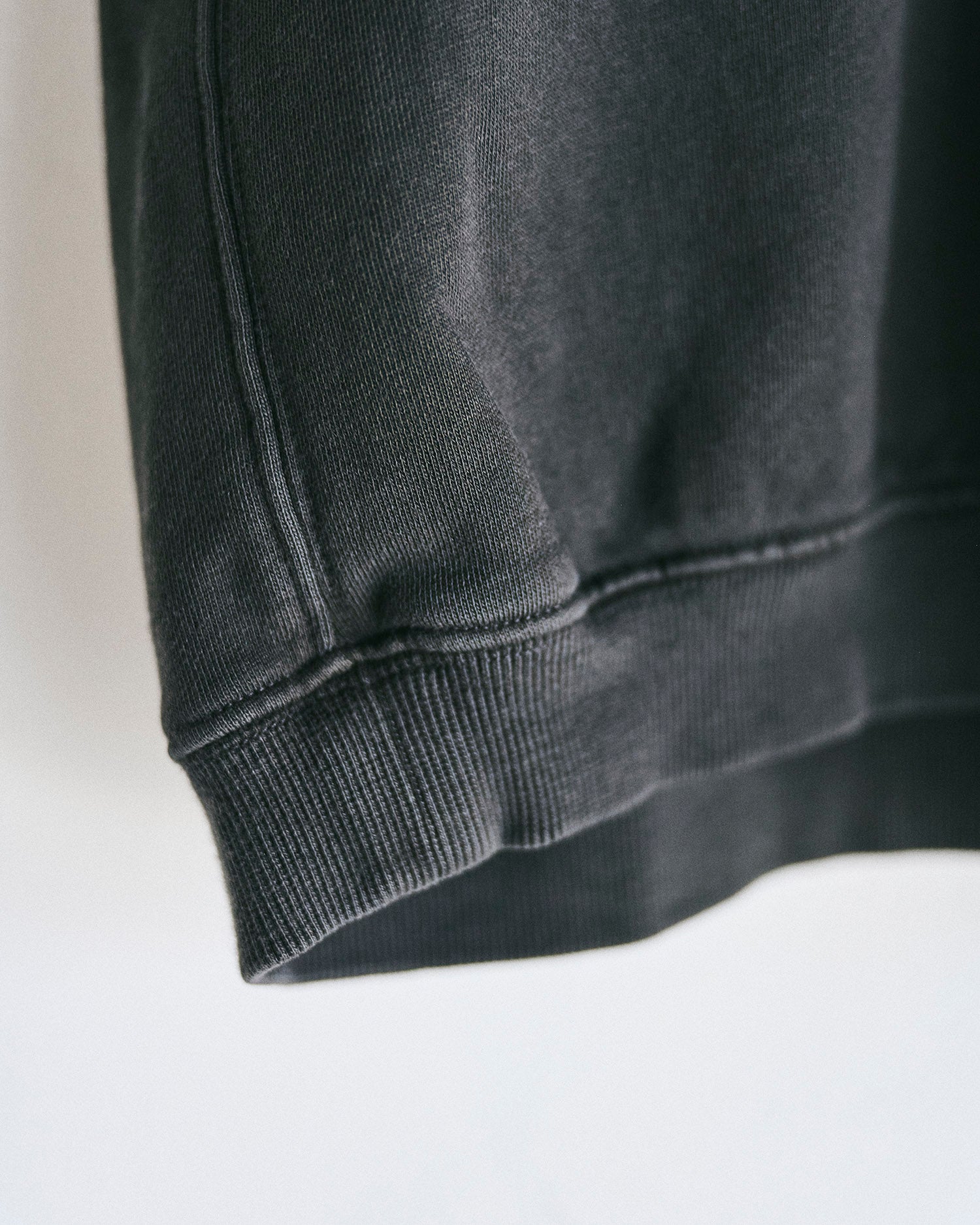 コットン100%の裏毛スエット生地。製品完成後に顔料染めで仕上げている。