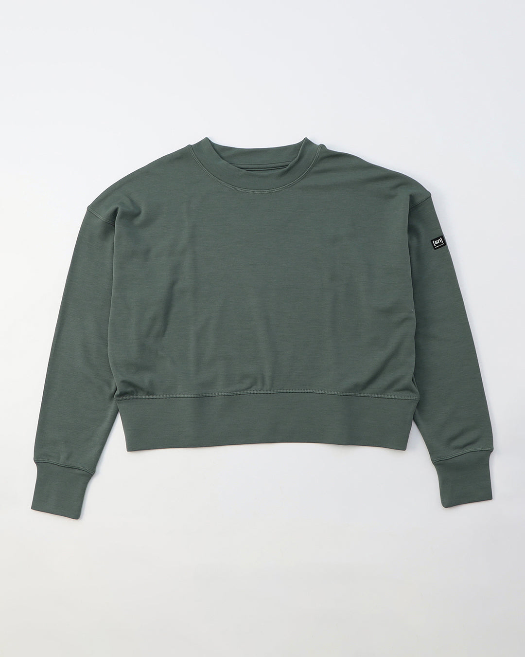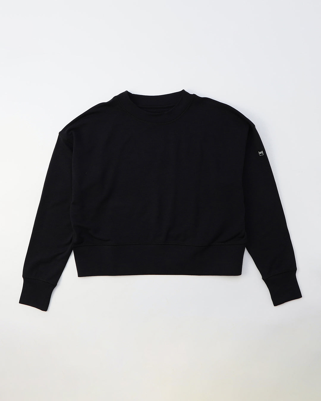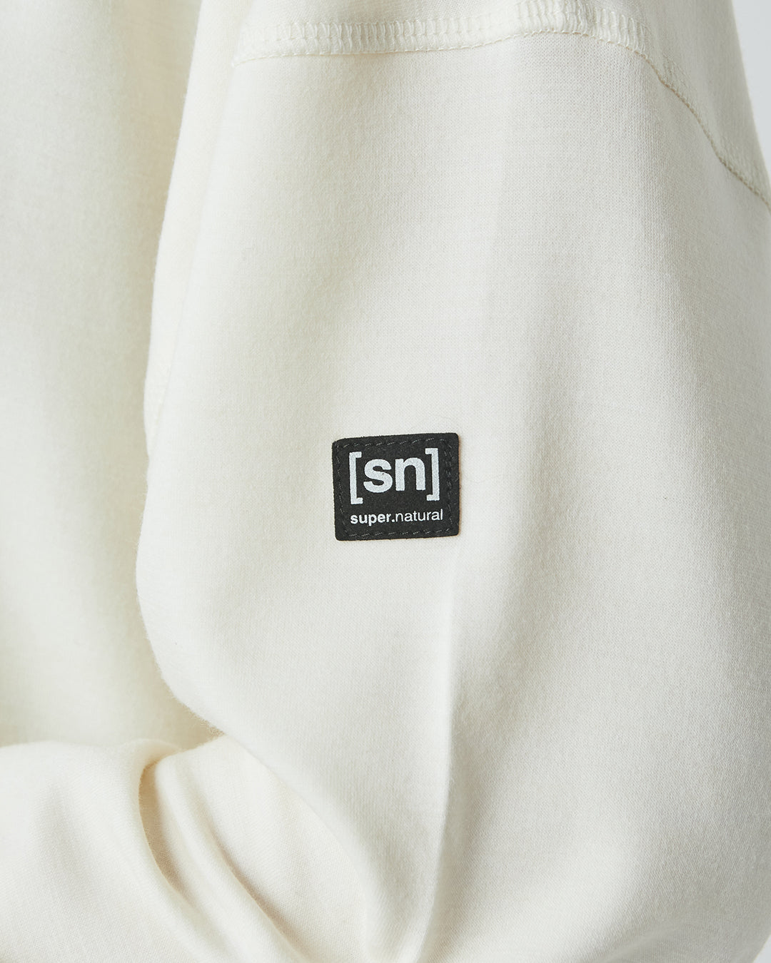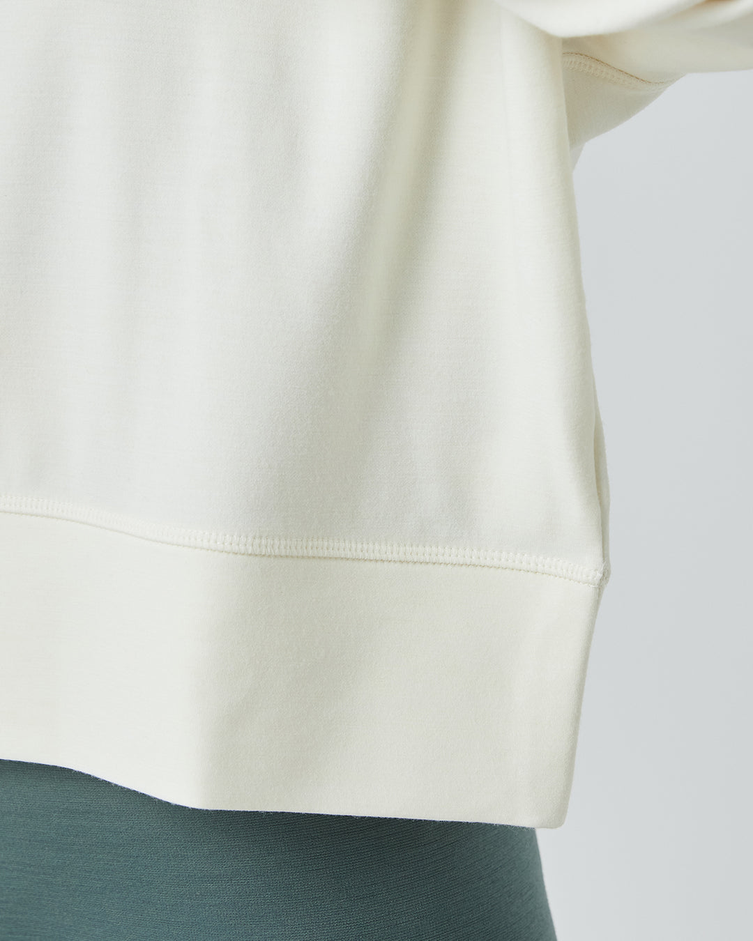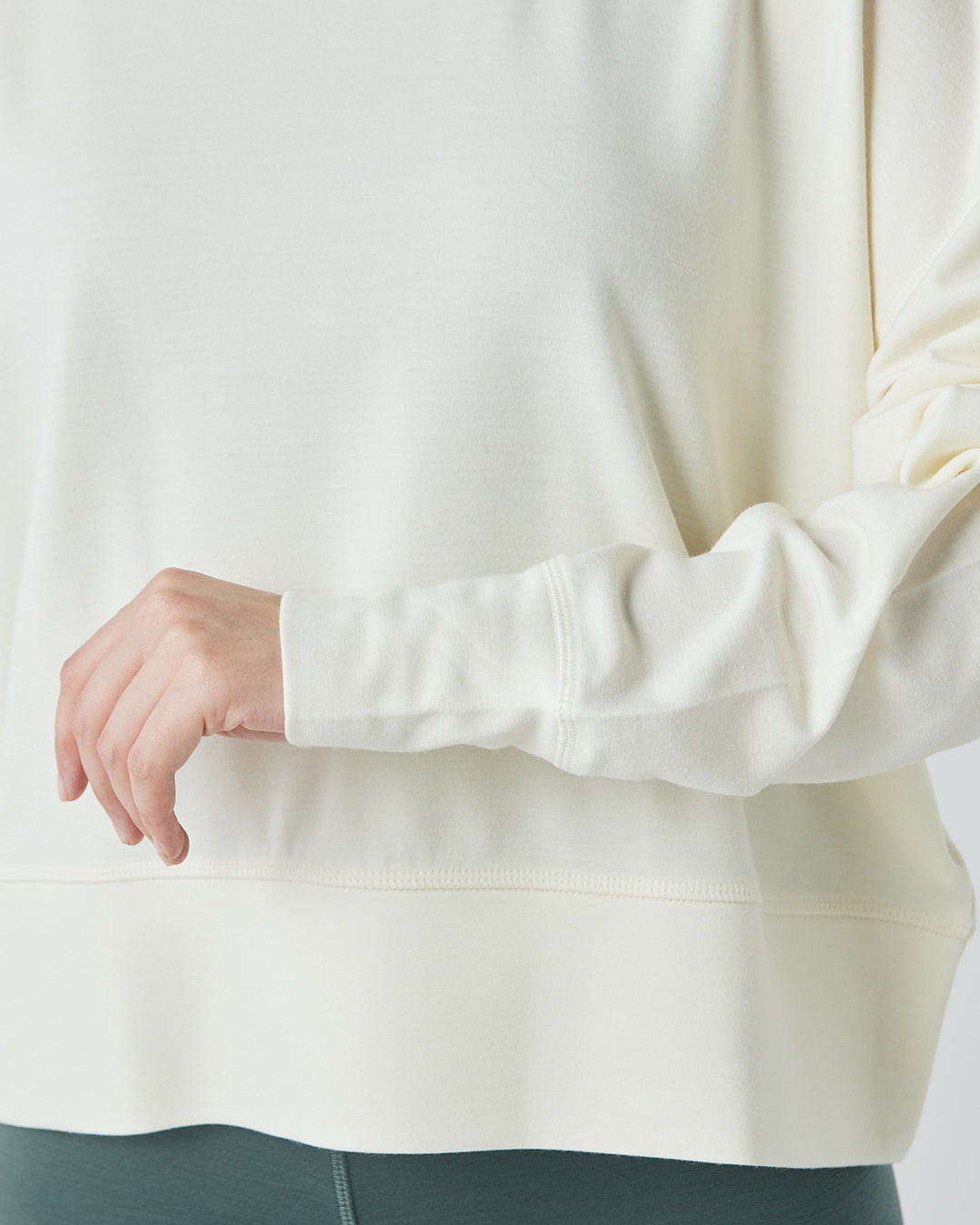 少し高めのラウンドネックやドロップショルダーのゆったりとしたシルエットは、アクティブシーンはもちろん、日常着にもおすすめのデザインです。
