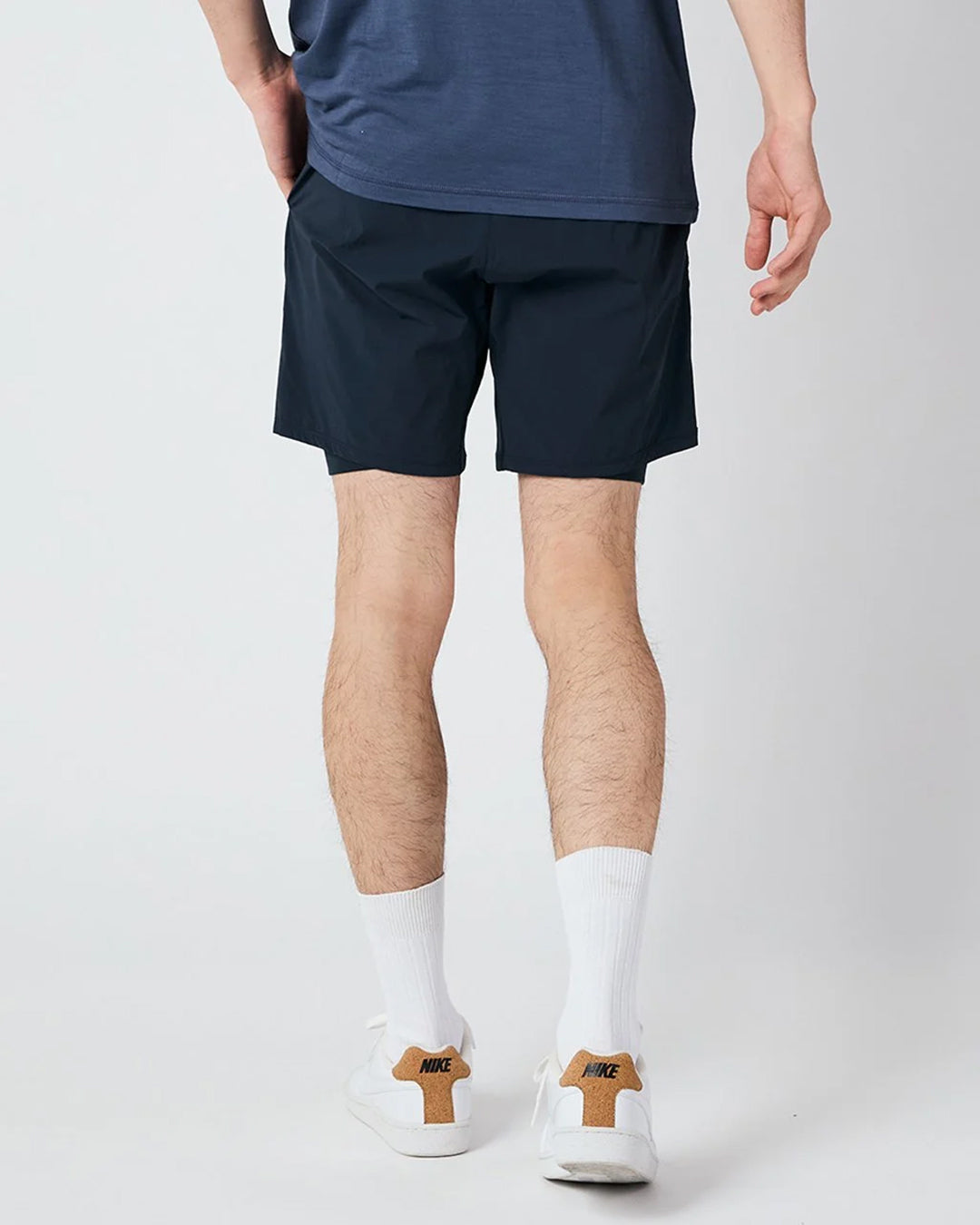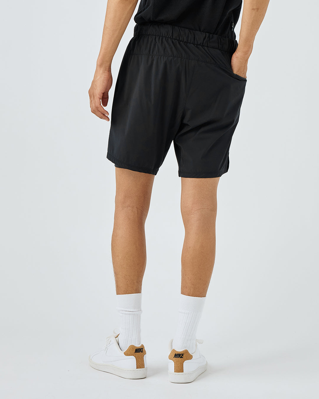 速乾性の高いポリエステル混の生地を使用したショートパンツは、足捌きを妨げないようストレッチ性にも優れ、ストレスフリーな着心地。