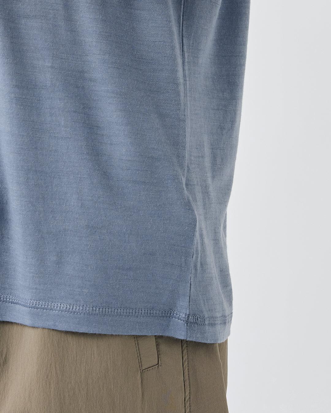 メリノウールのさらりとした風合いと吸湿効果、抗菌・防臭効果、UVカット効果に、更にポリエステルの優れた速乾性と耐久性も備えました。