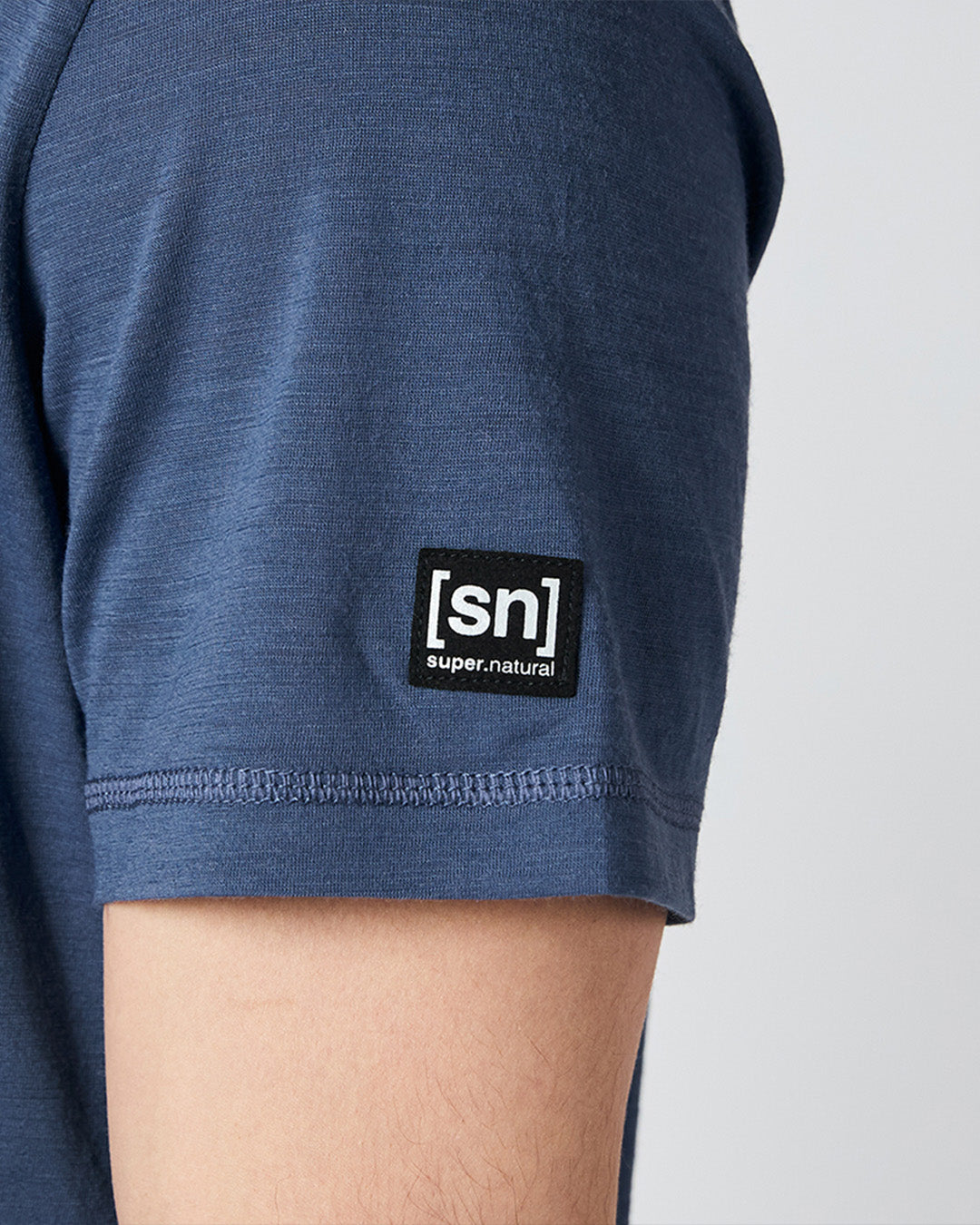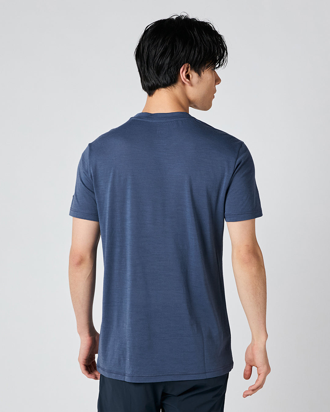 [sn]定番素材のメリノーウール50%・ポリエステル50%の混紡生地を使用したTシャツは、普段使いから、ハードなトレーニングまで通年着用しやすいライトウェイト(140g/㎡)。
