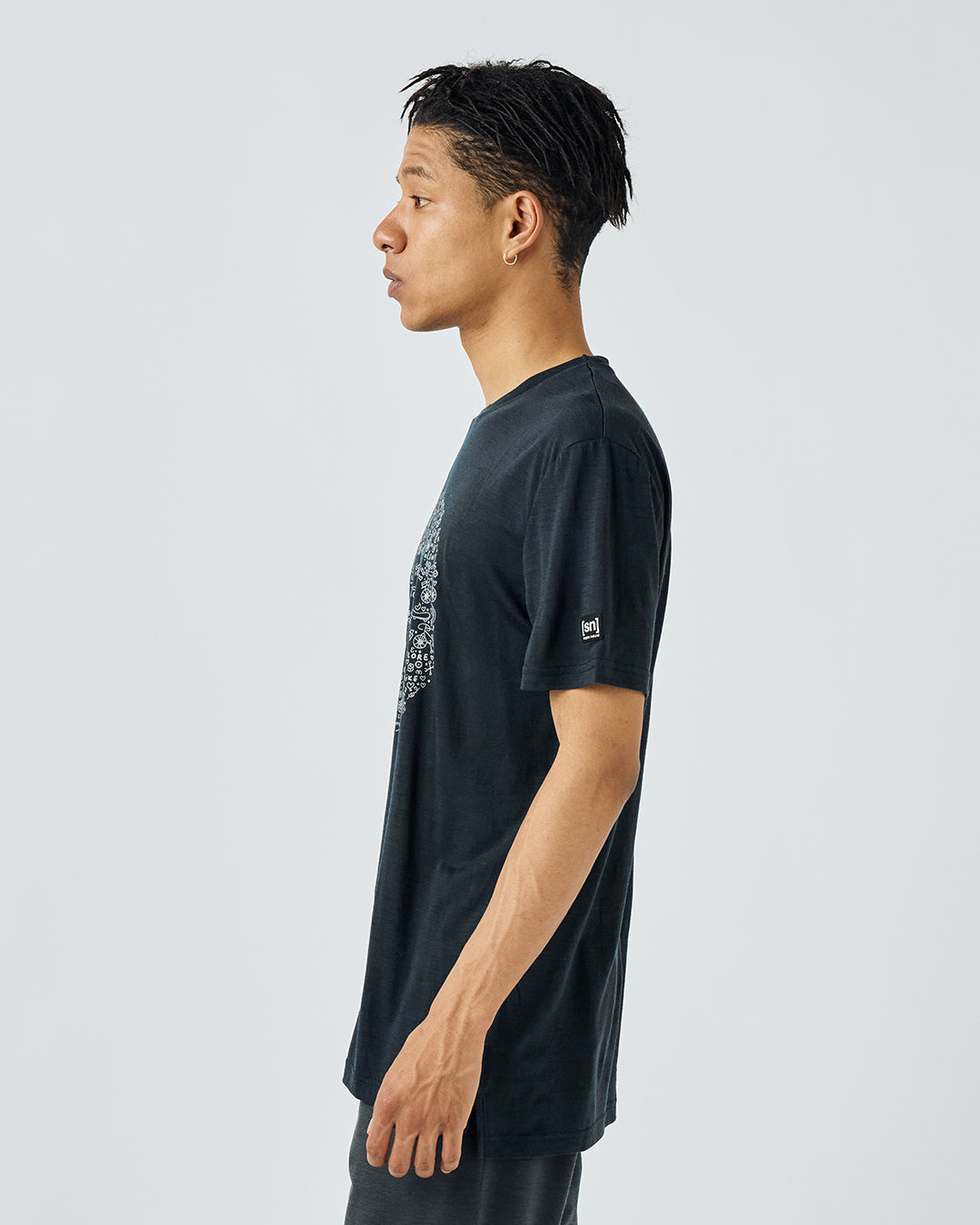 Tシャツのボディは、カジュアルに一枚で着ることもできる定番スタイル。