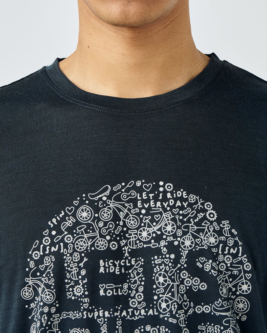 キャッチーな自転車やスケートボードのイラストは「LET'S RIDE」したくなるグラフィックTシャツ。