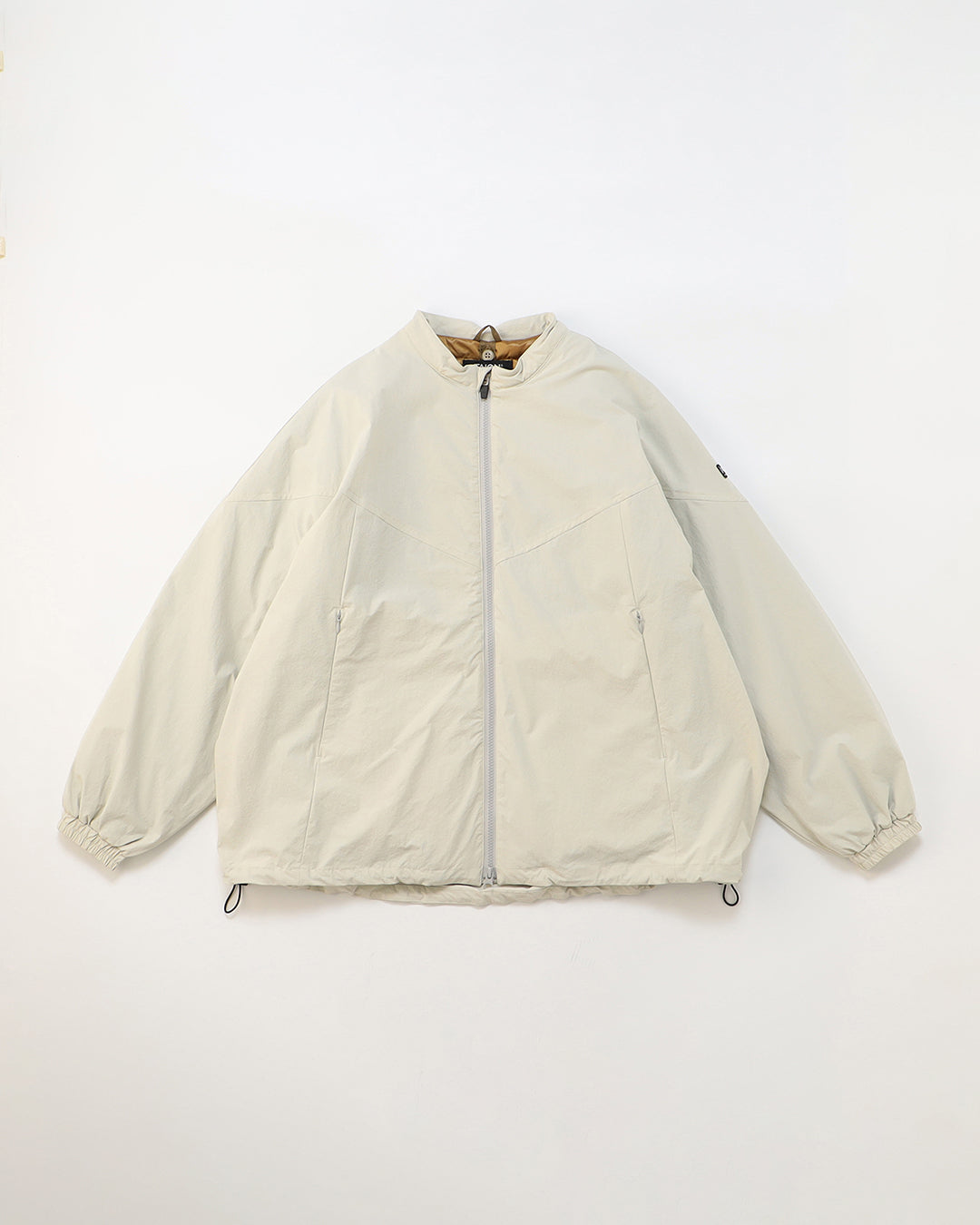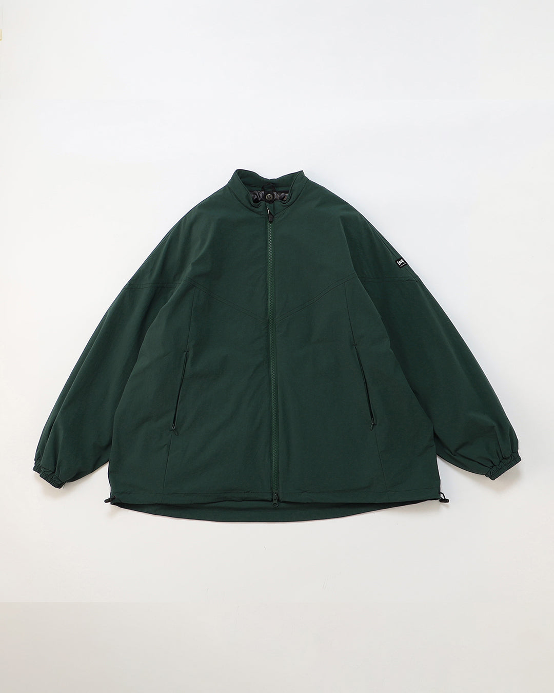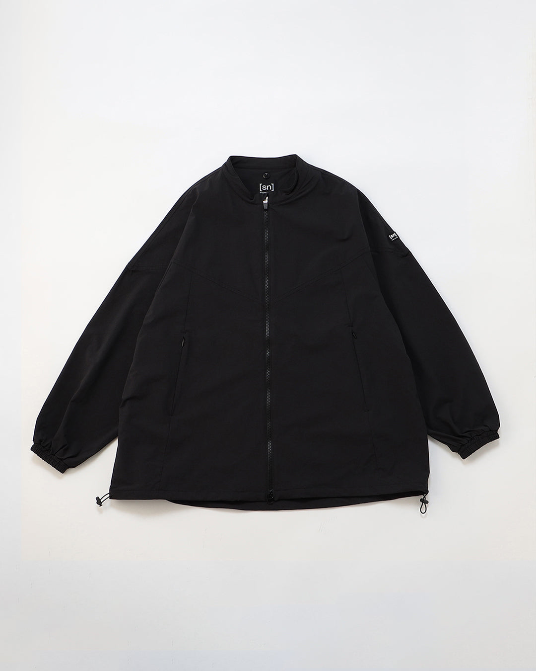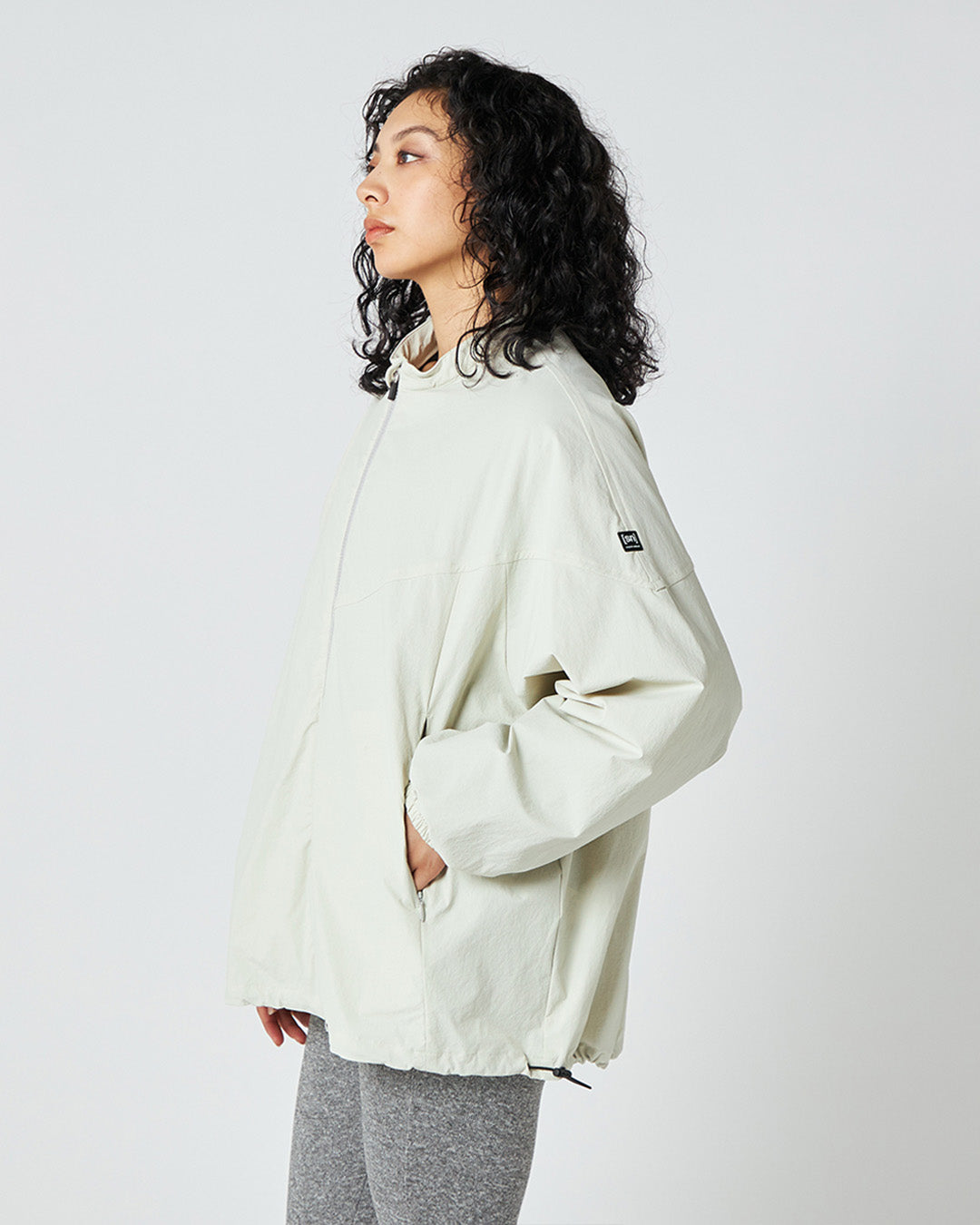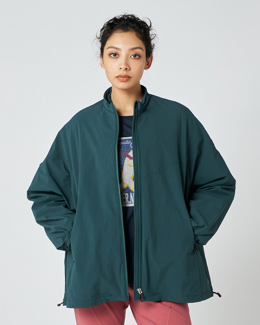 4方向に伸びる4ウェイストレッチナイロンを使用したアウターは、ゆったりとしたシルエットのユニセックスモデル。