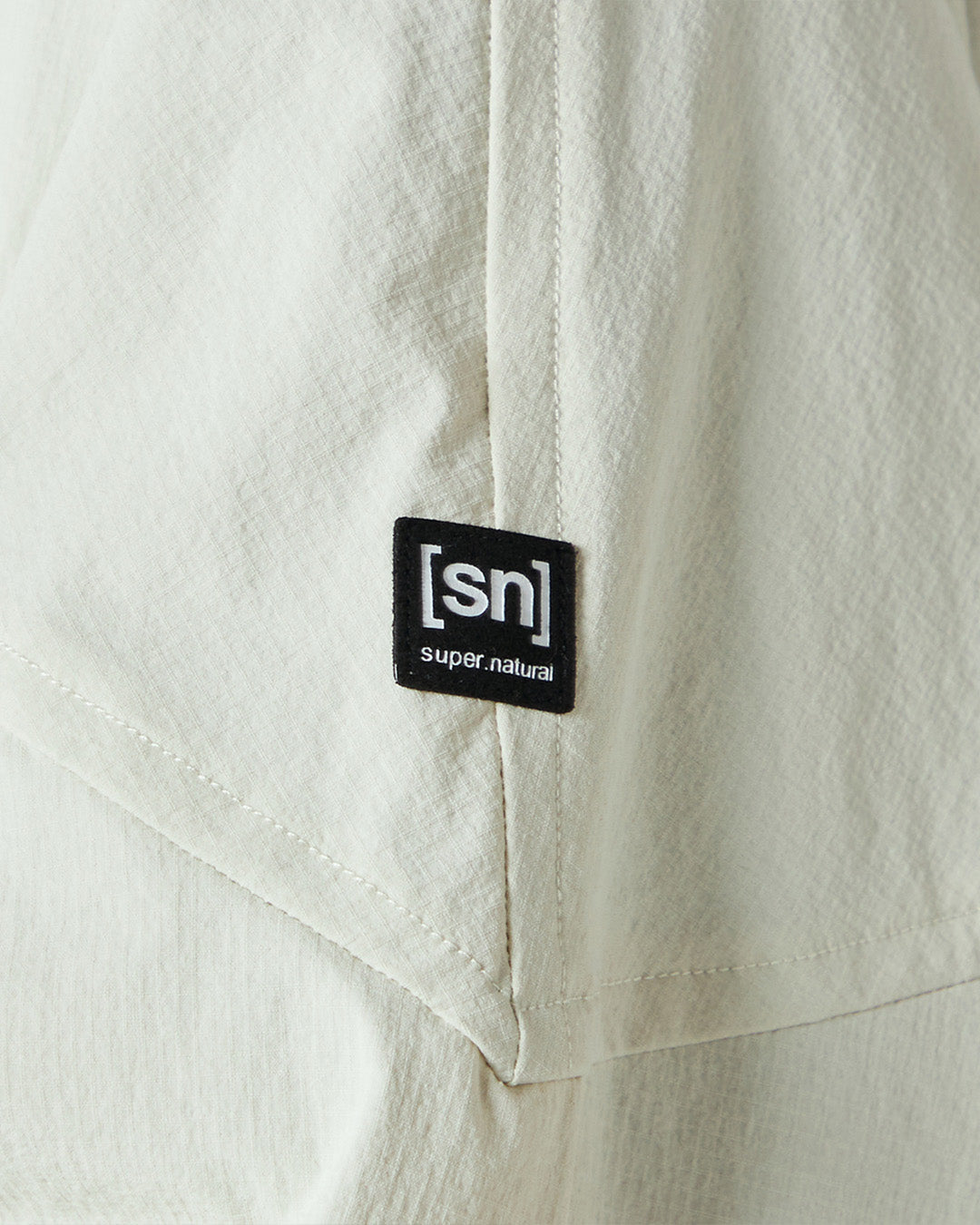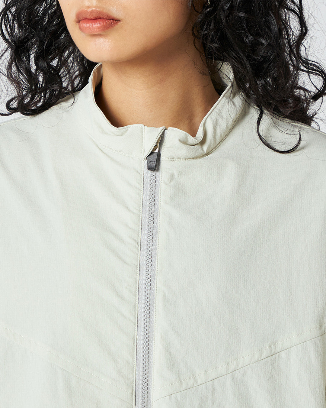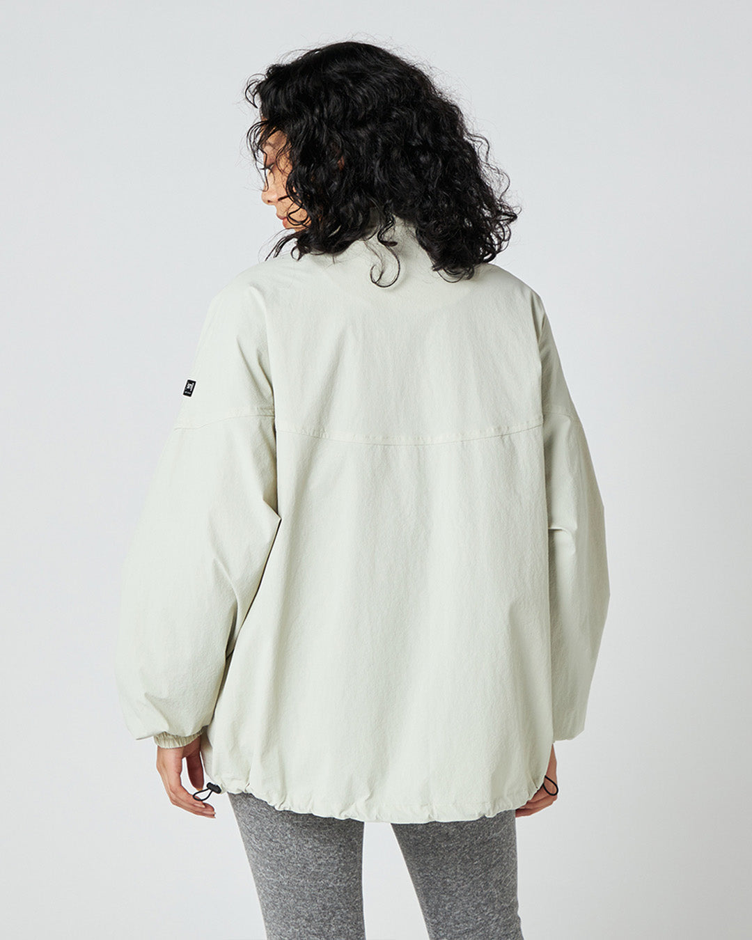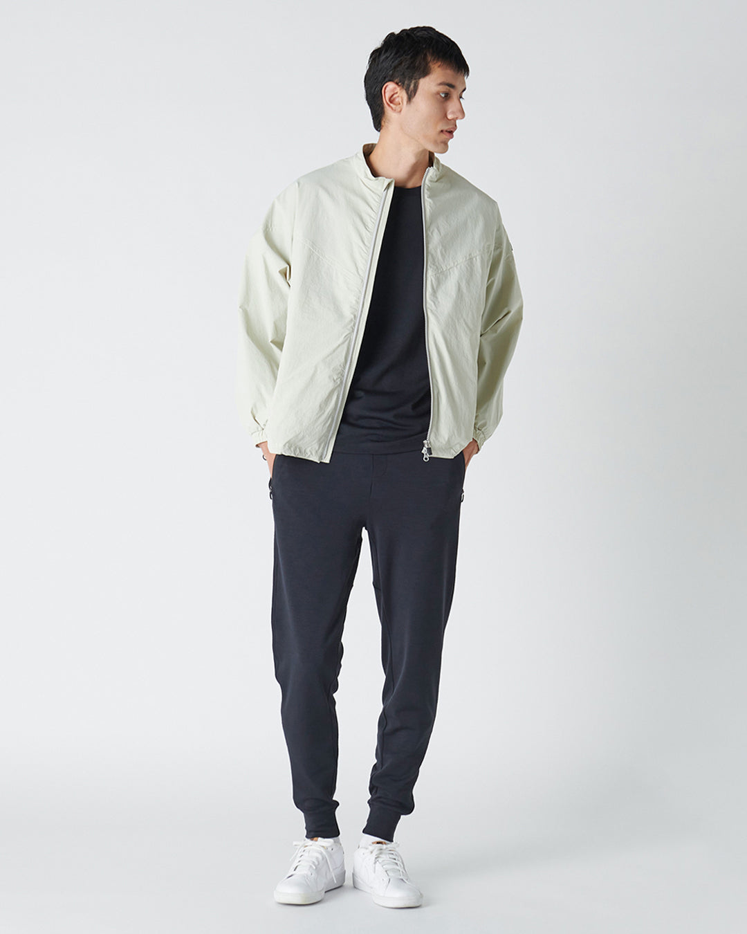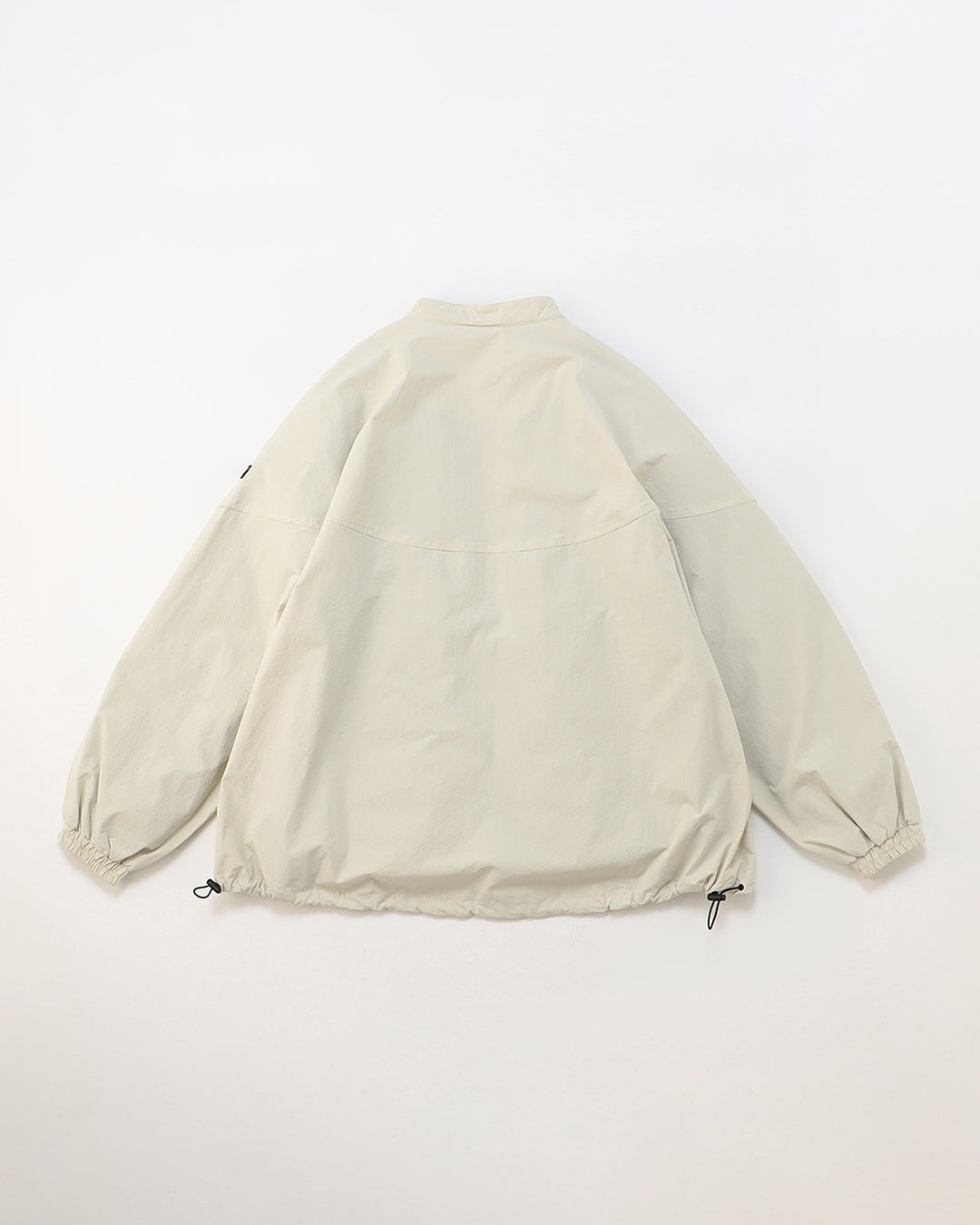 4方向に伸びる4ウェイストレッチナイロンを使用したアウターは、ゆったりとしたシルエットのユニセックスモデル。