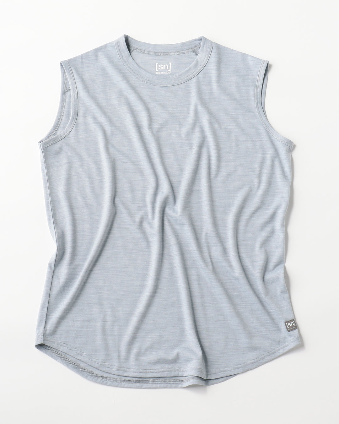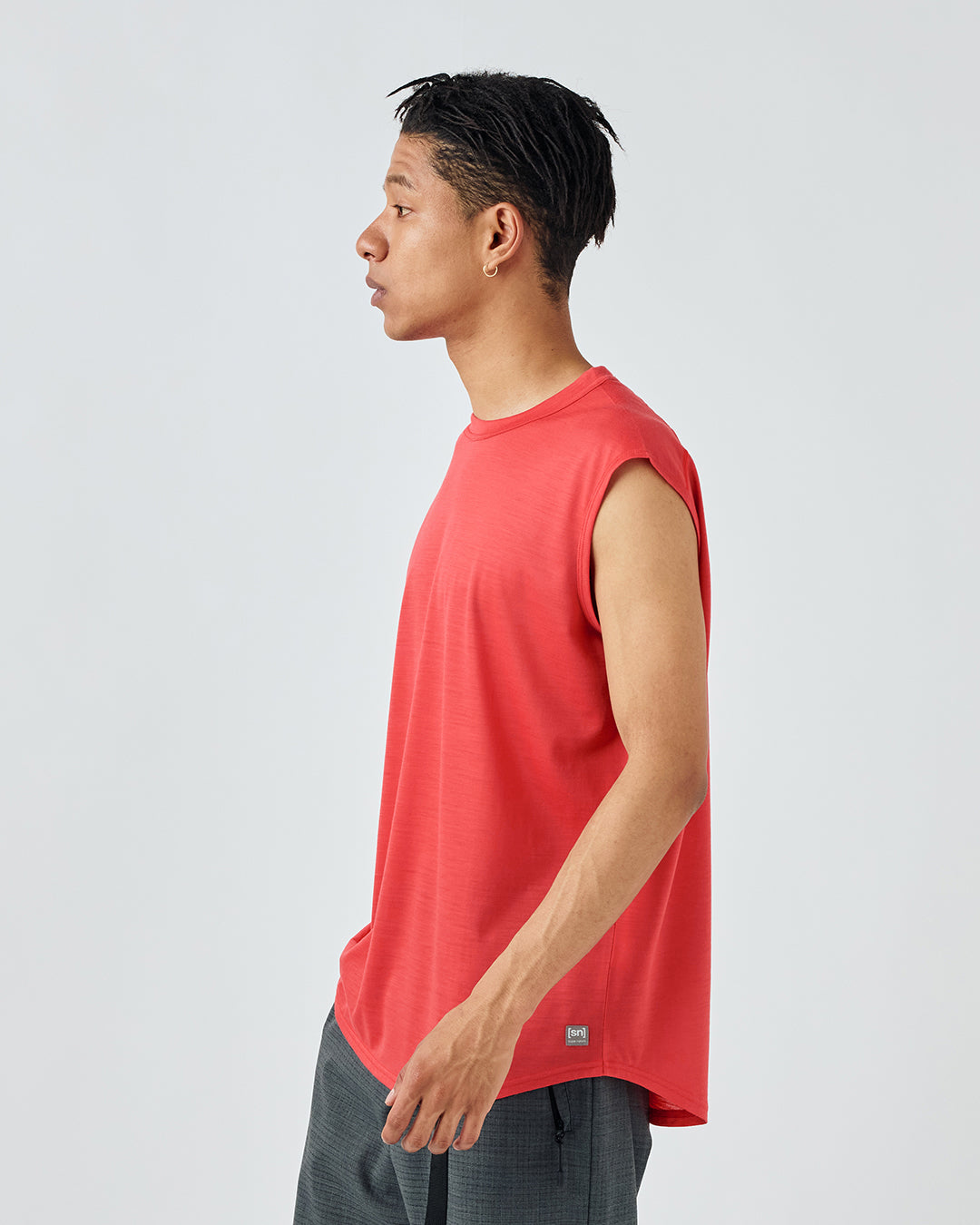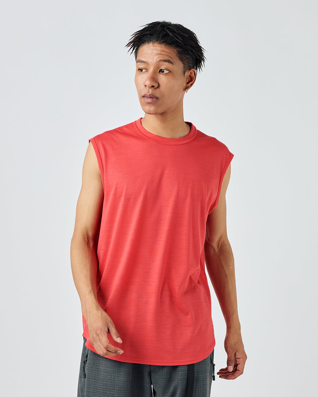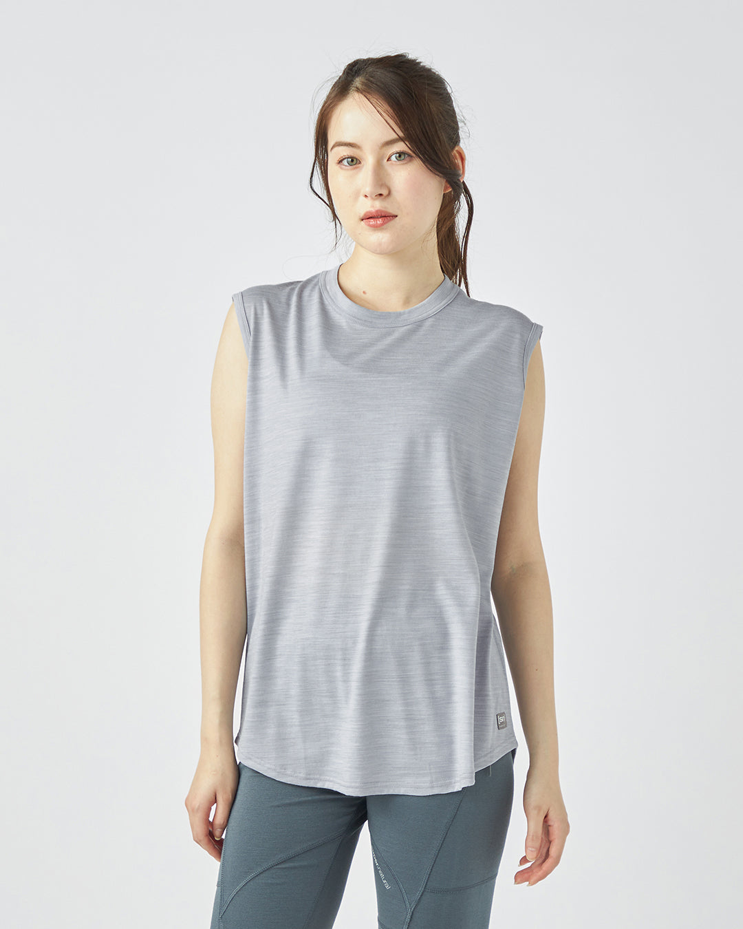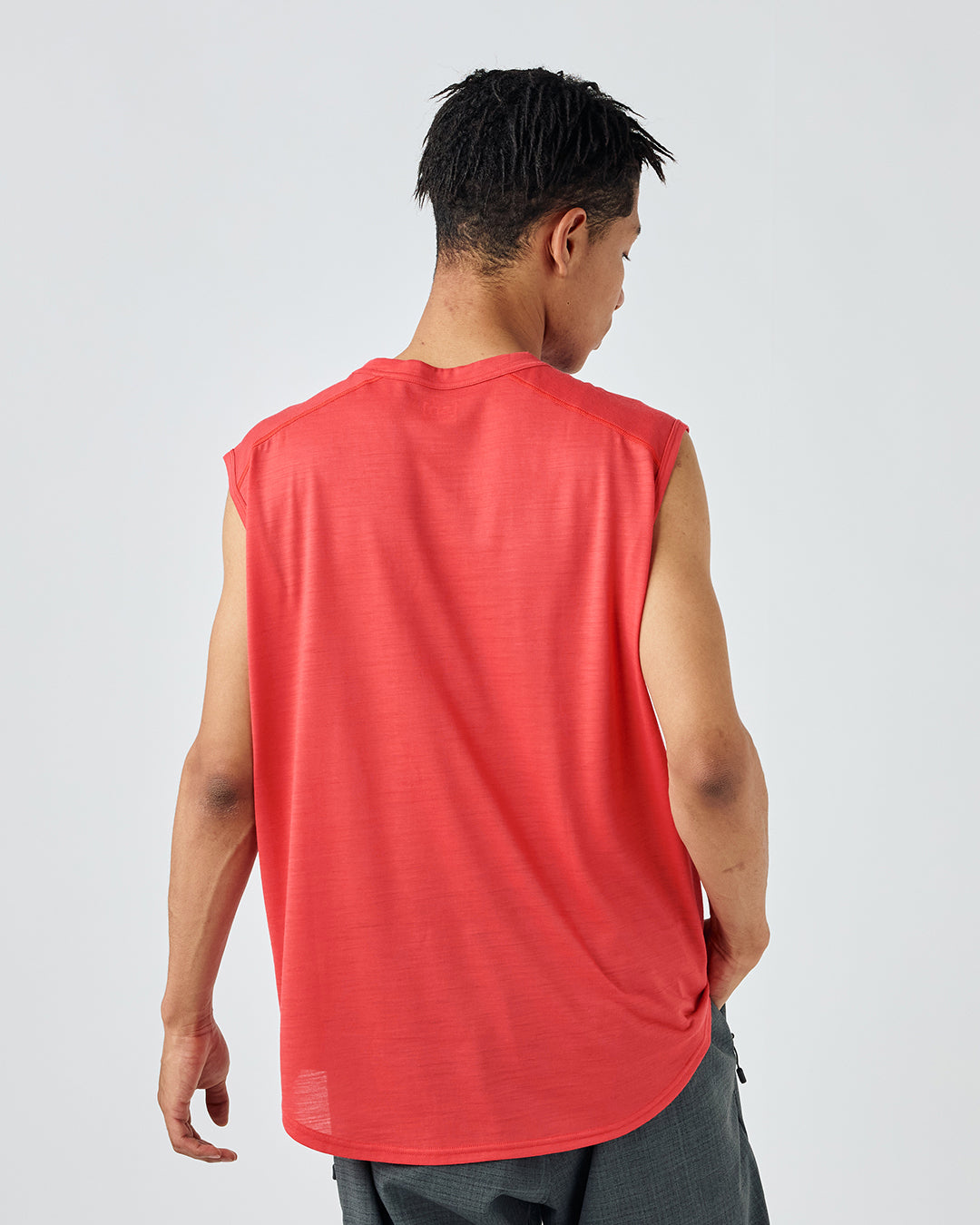 [sn]定番素材のメリノーウール50%・ポリエステル50%の混紡生地を使用したノースリーブ。普段使いから、ハードなトレーニングまで通年着用しやすいライトウェイト(140g/㎡)。