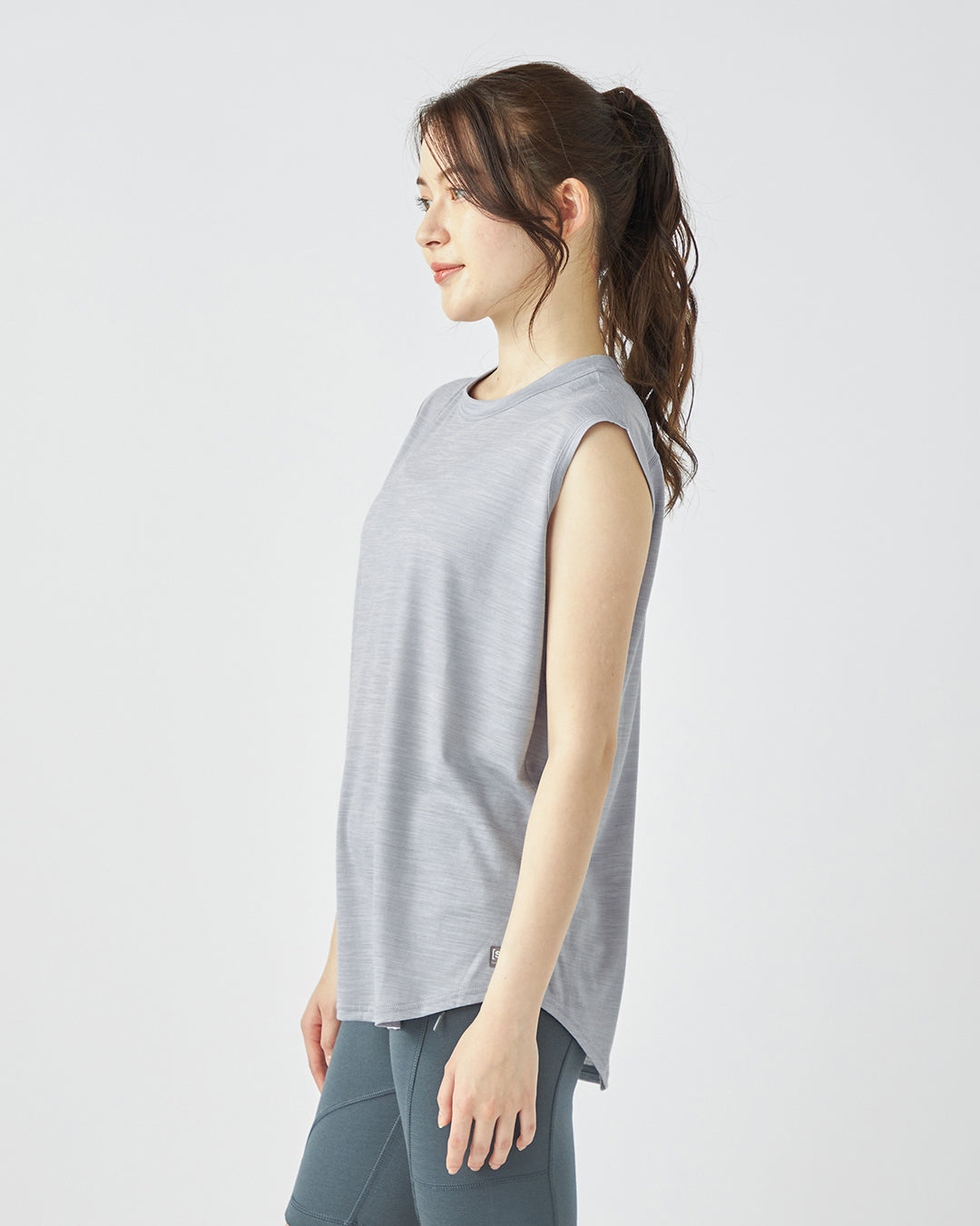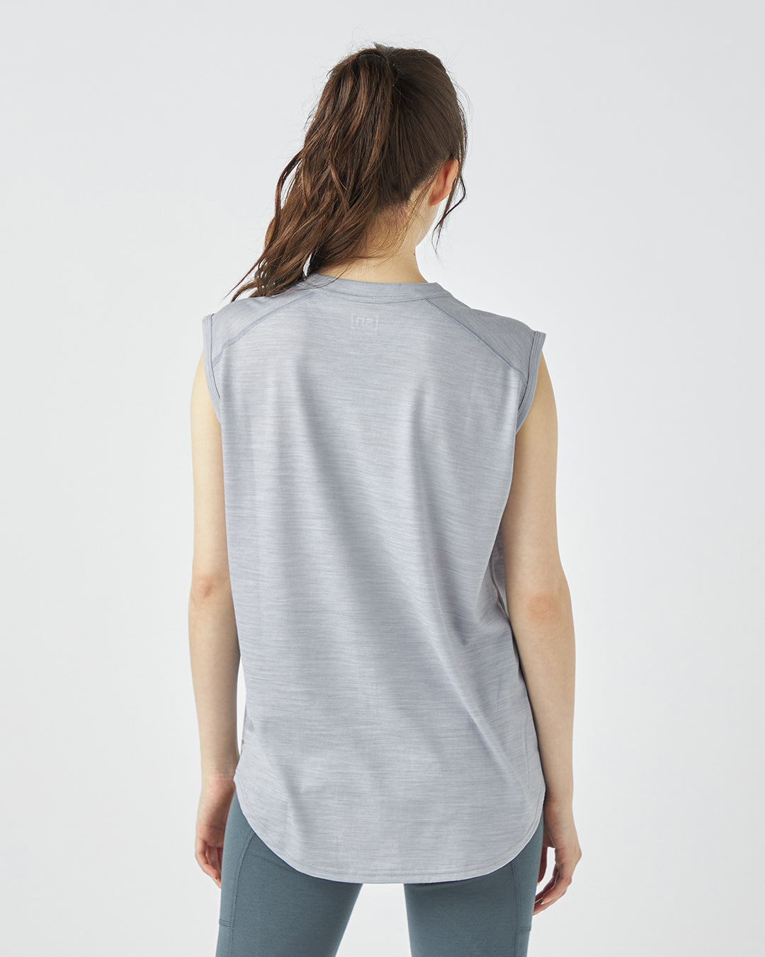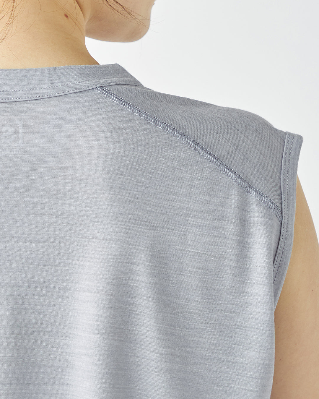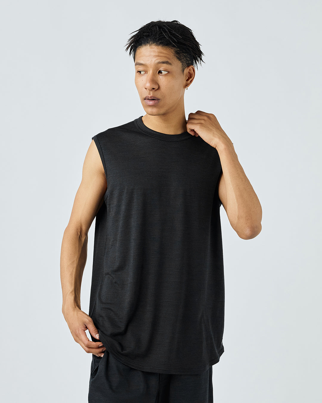 [sn]定番素材のメリノーウール50%・ポリエステル50%の混紡生地を使用したノースリーブ。普段使いから、ハードなトレーニングまで通年着用しやすいライトウェイト(140g/㎡)。