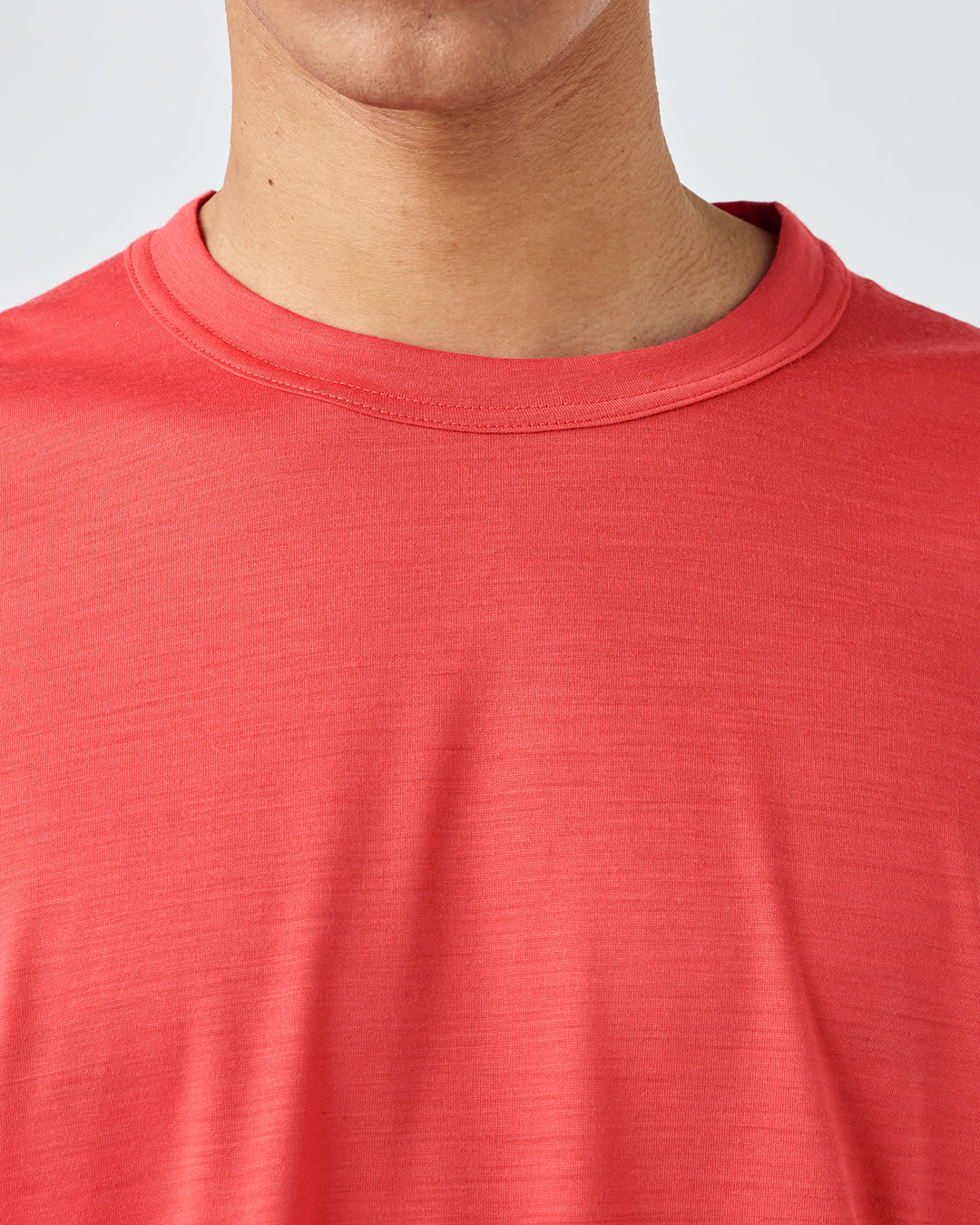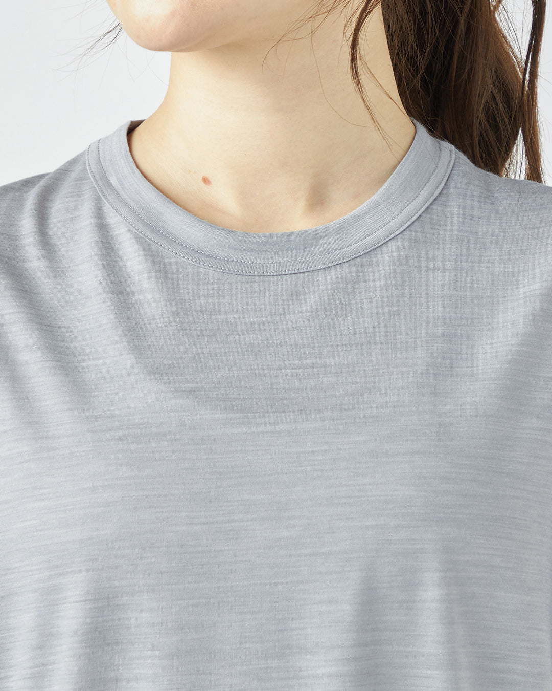 メリノウールのさらりとした風合いと吸湿効果、抗菌・防臭効果、UVカット効果に、更にポリエステルの優れた速乾性と耐久性も備えました。家庭での洗濯も可能。