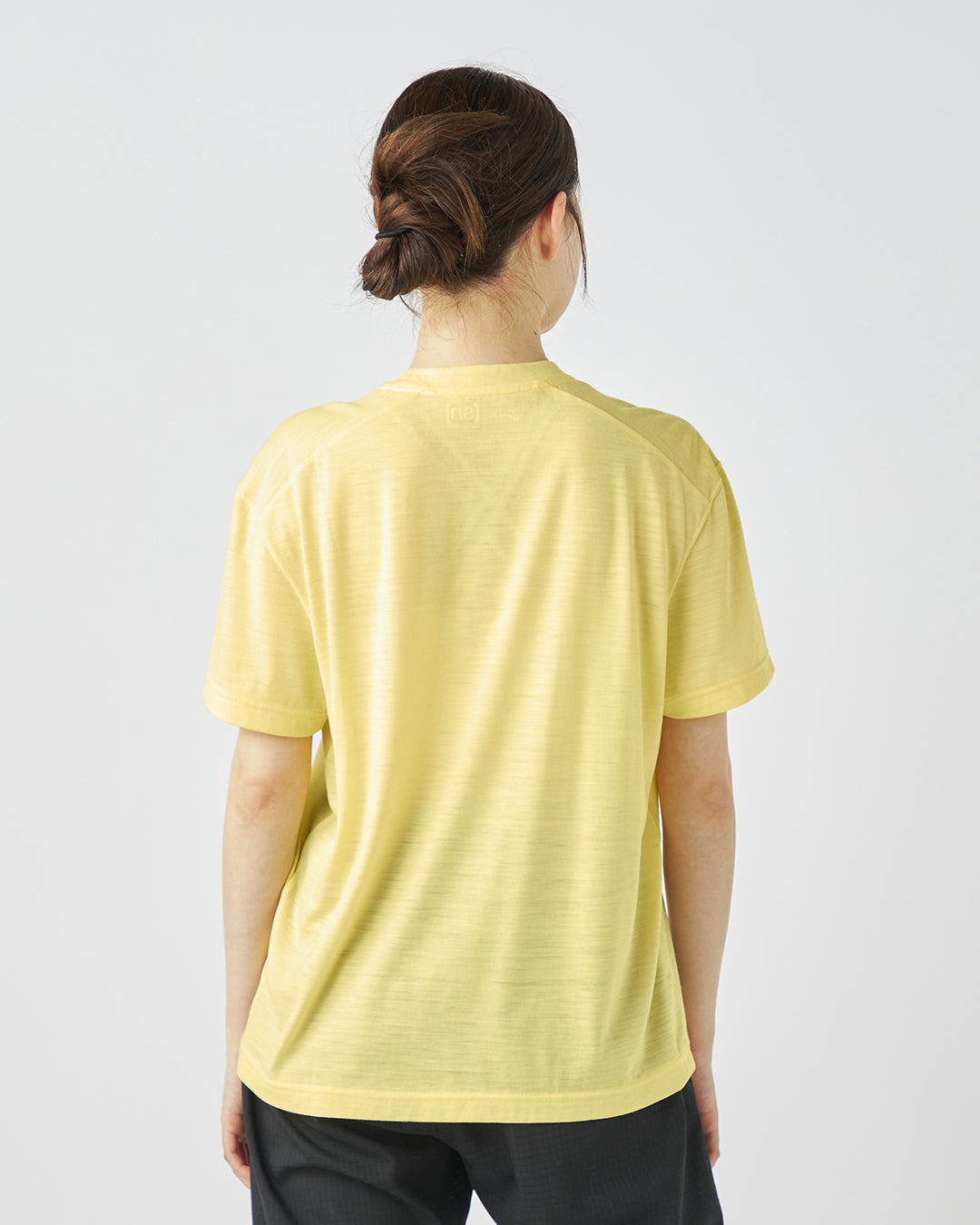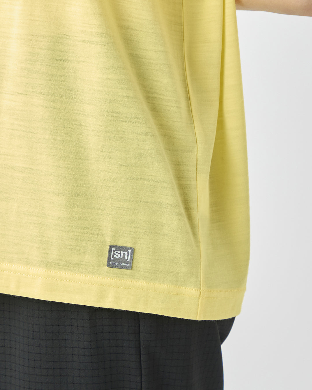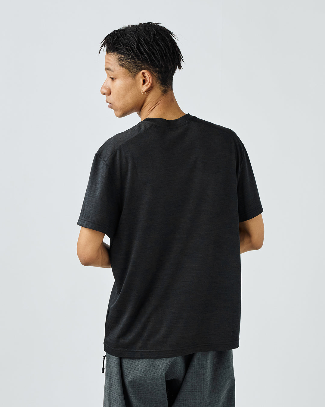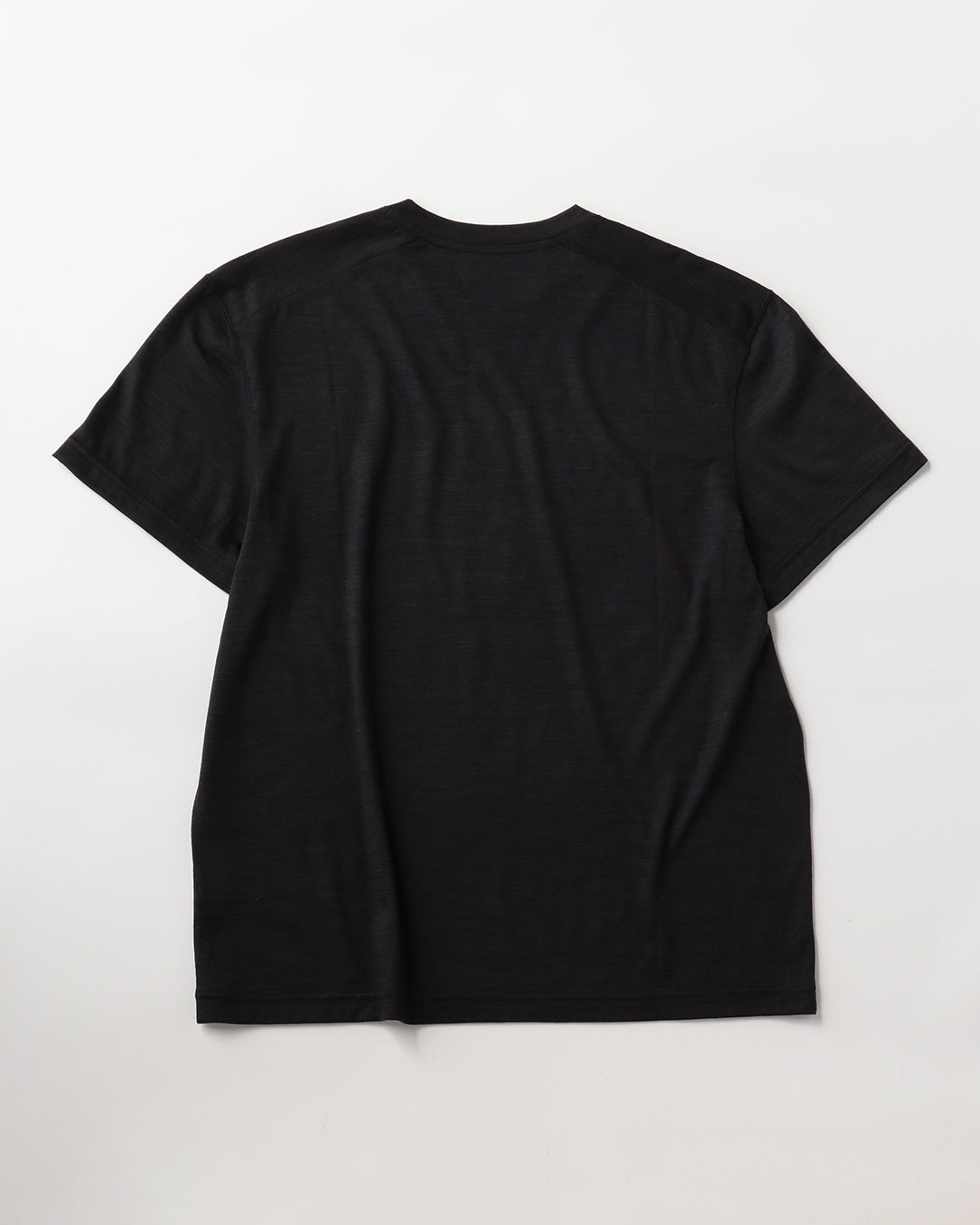 [sn]定番素材のメリノウール50%・ポリエステル50%の混紡生地を使用したTシャツは、普段使いから、ハードなトレーニングまで通年着用しやすいライトウェイト(140g/㎡)。