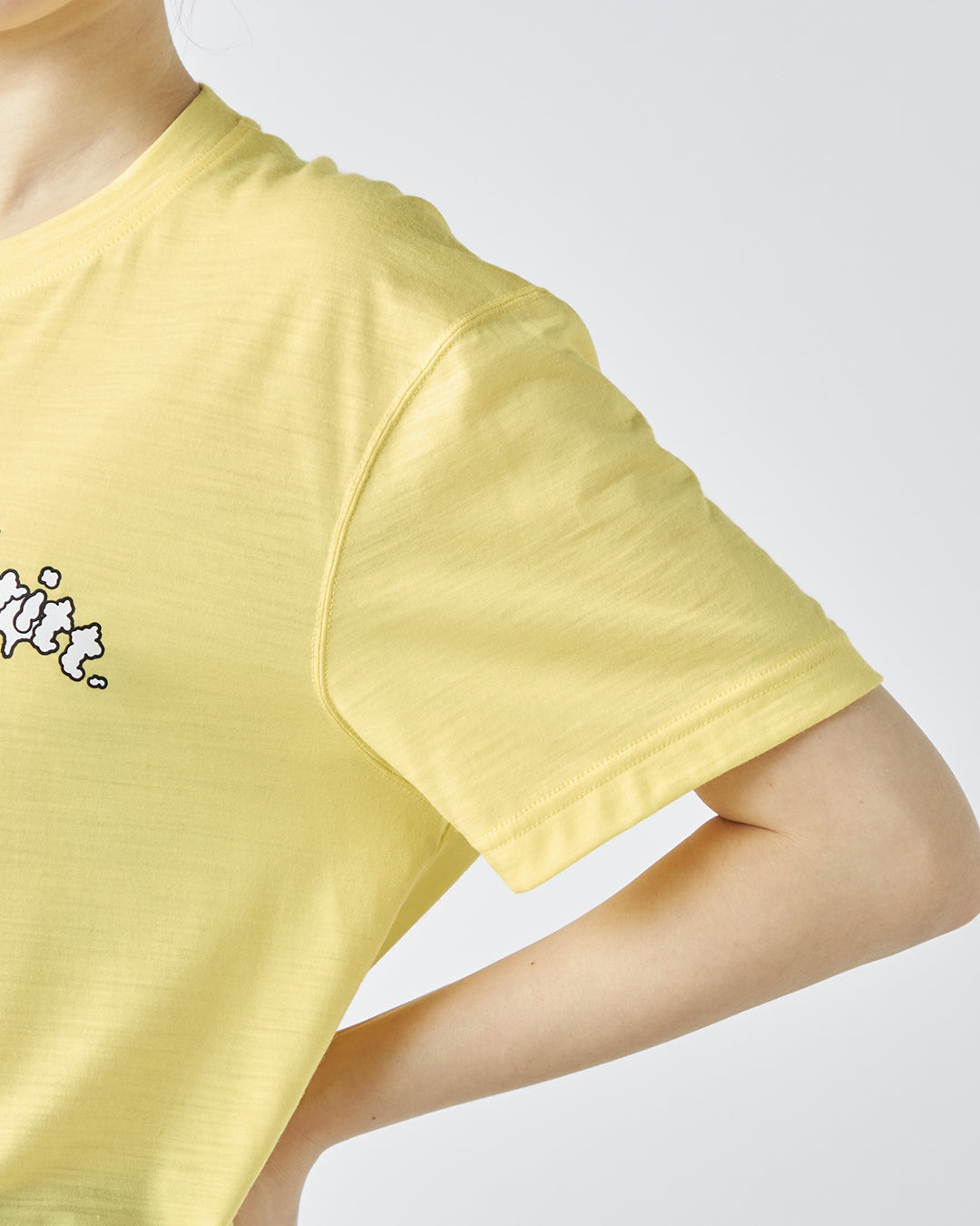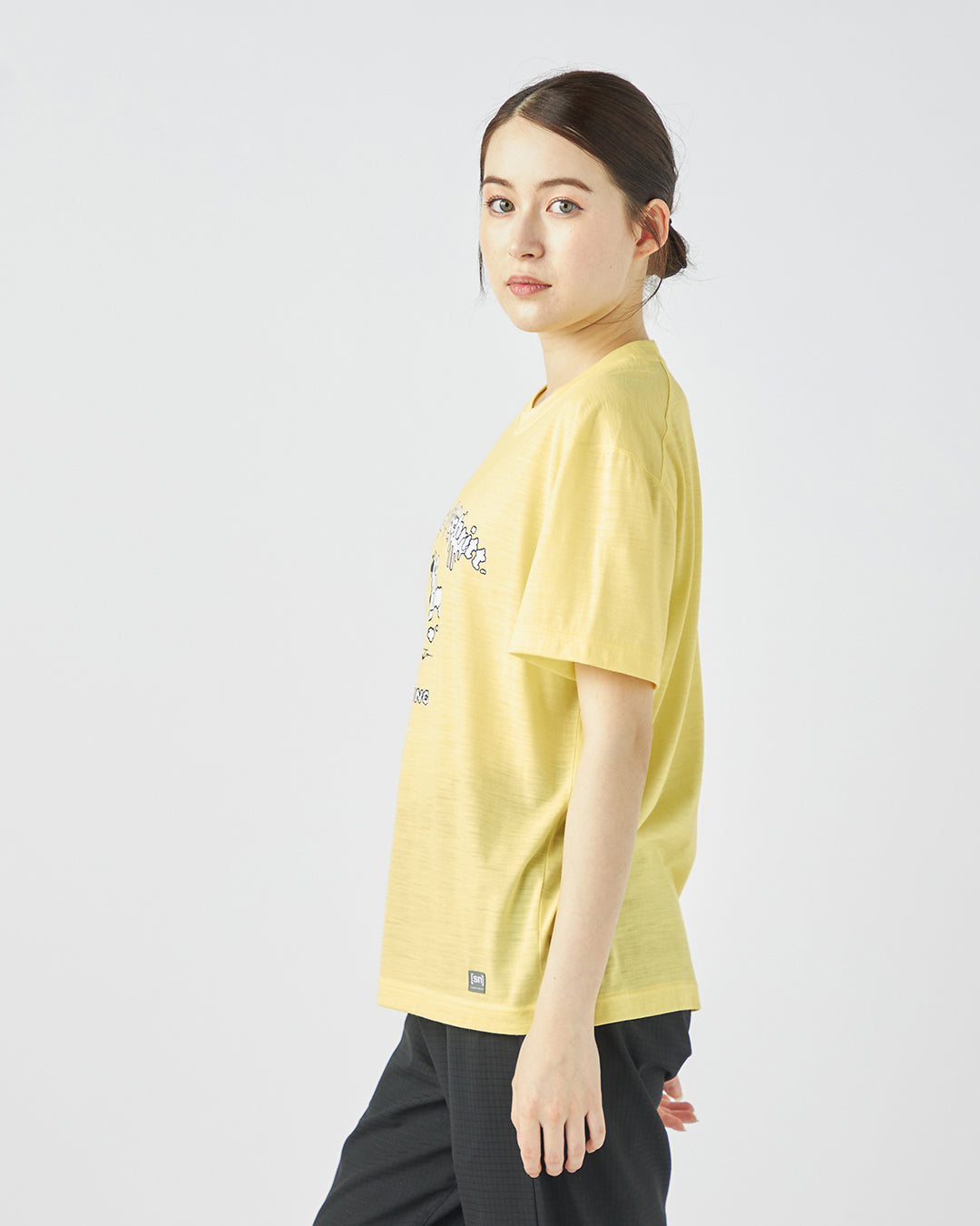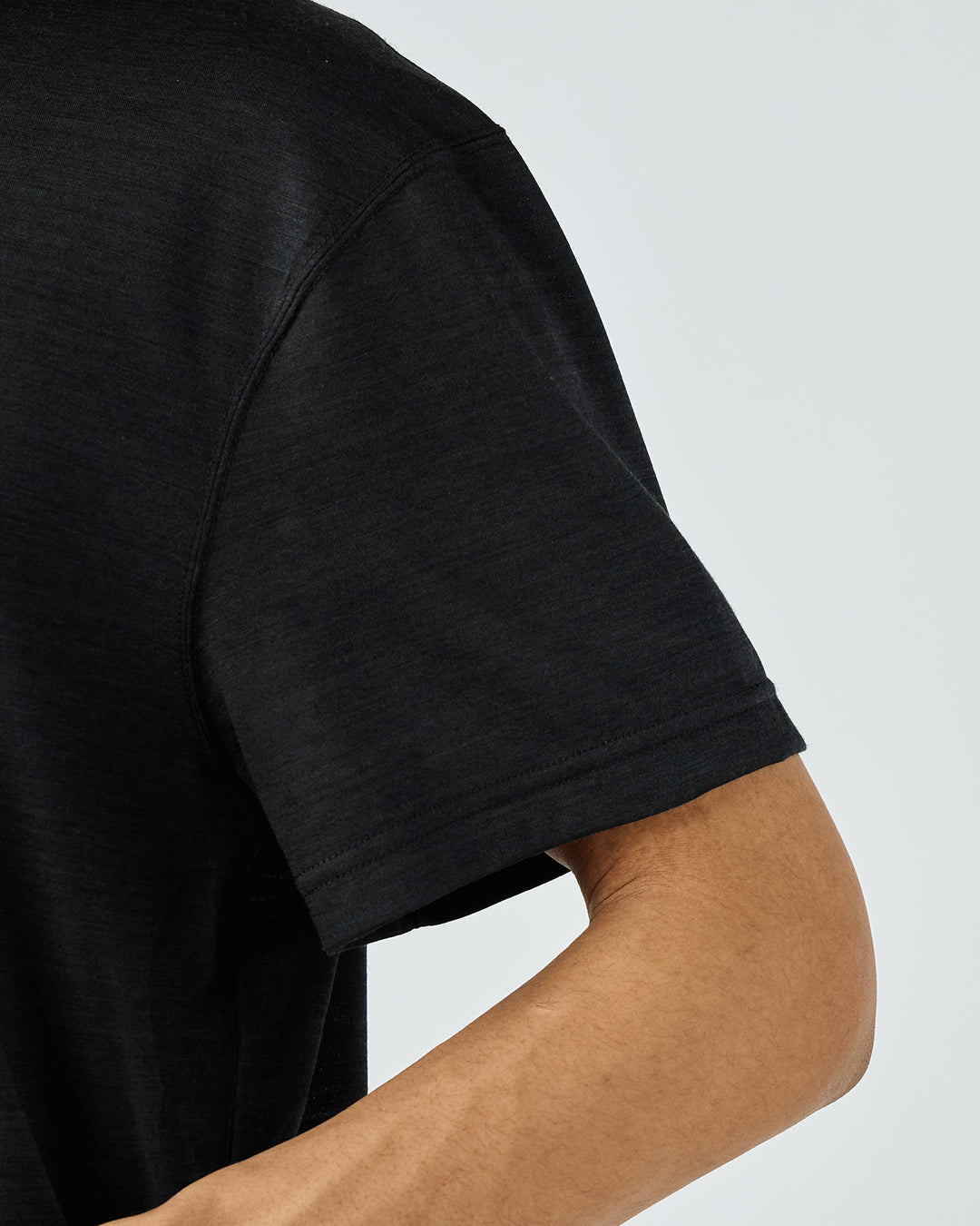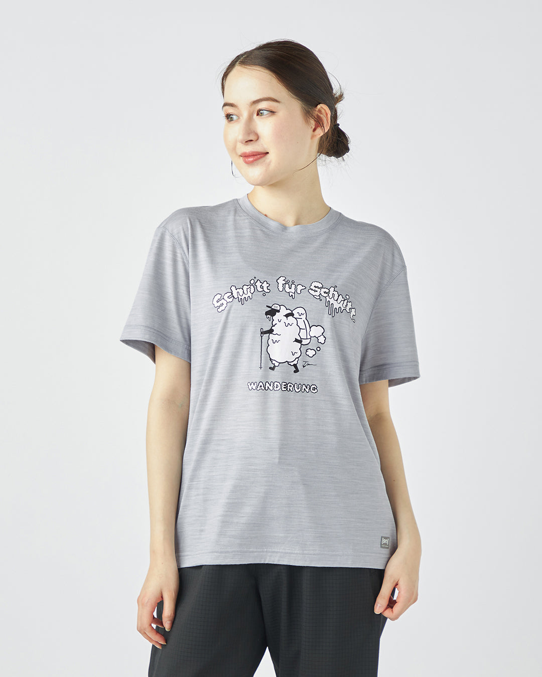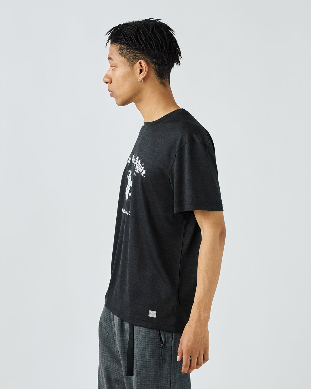 [sn]定番素材のメリノウール50%・ポリエステル50%の混紡生地を使用したTシャツは、普段使いから、ハードなトレーニングまで通年着用しやすいライトウェイト(140g/㎡)。