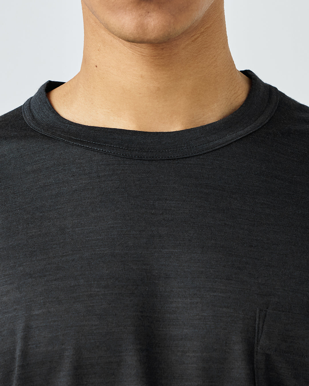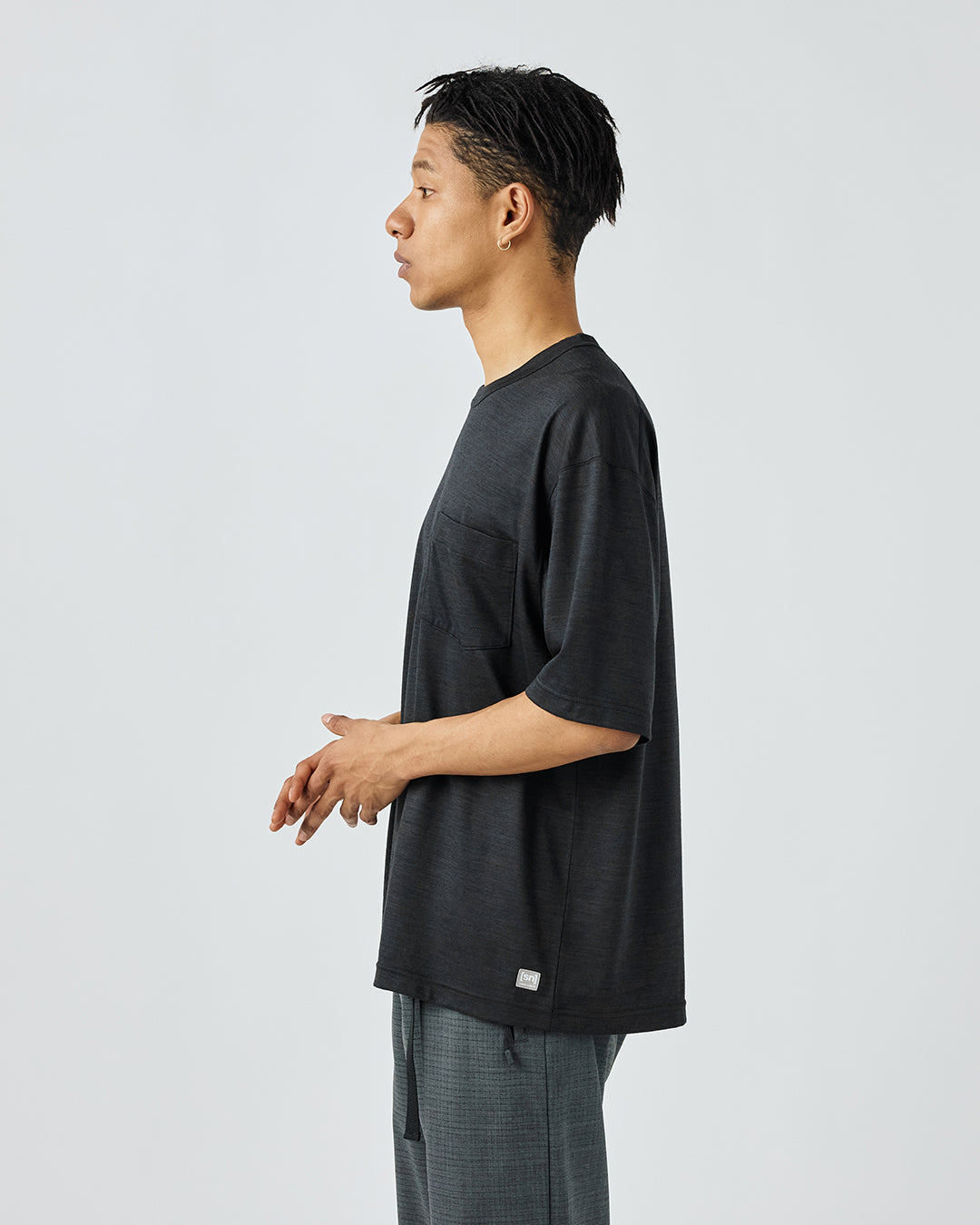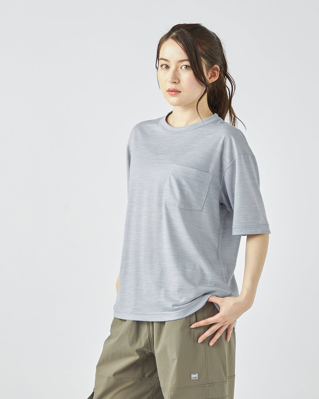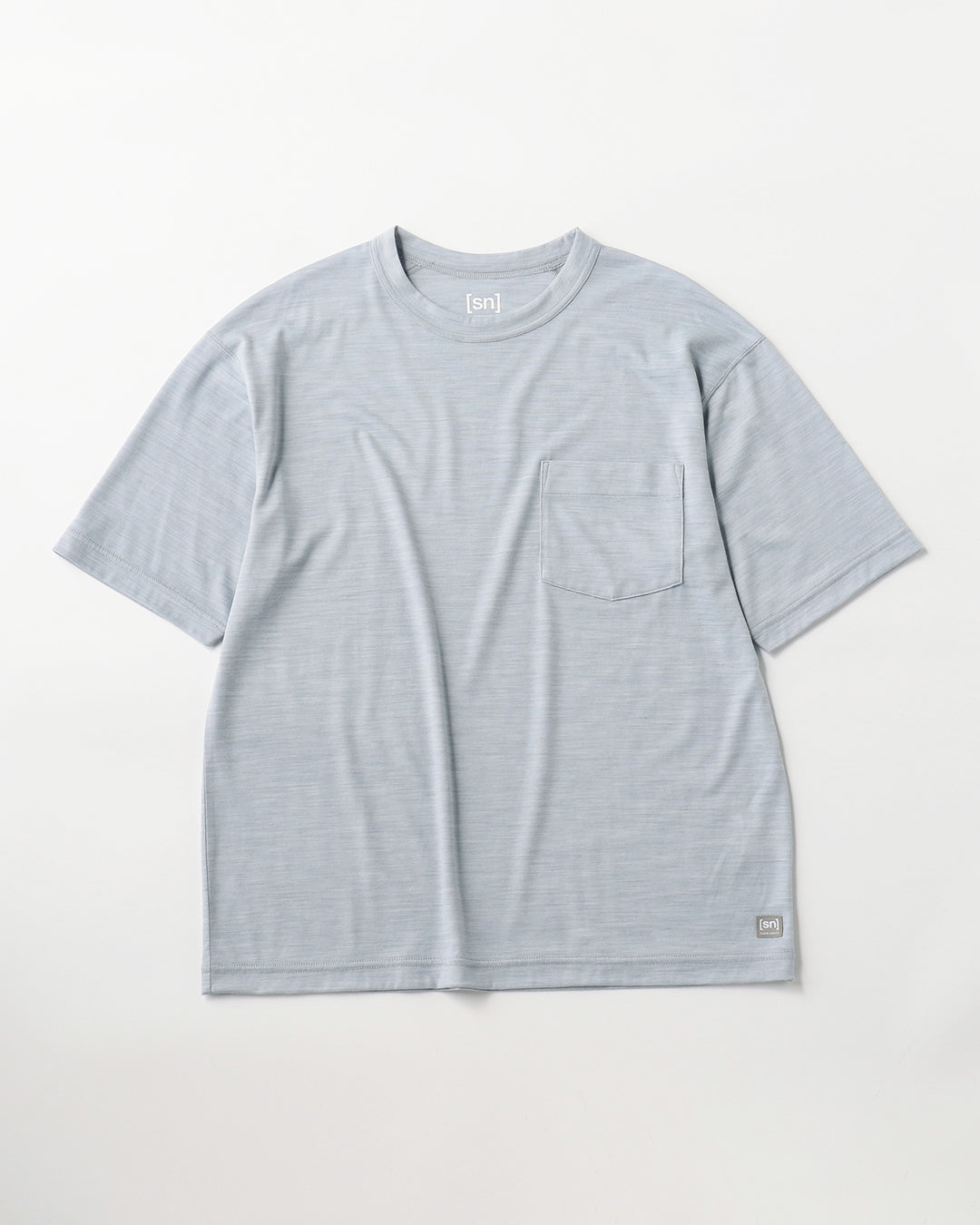 [sn]定番素材のメリノーウール50%・ポリエステル50%の混紡生地を使用したTシャツは、普段使いから、ハードなトレーニングまで通年着用しやすいライトウェイト(140g/㎡)。