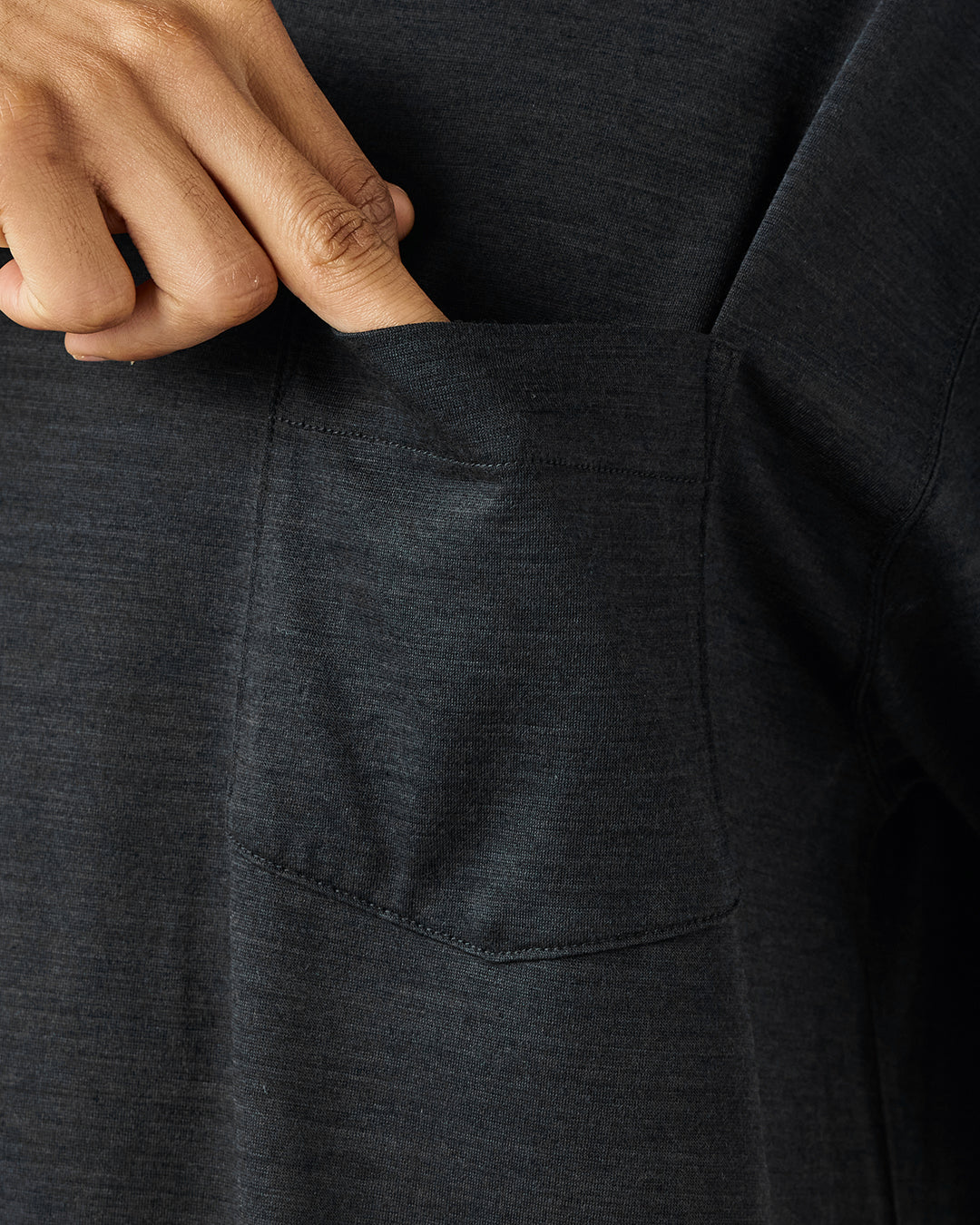 メリノウールのさらりとした風合いと吸湿効果、抗菌・防臭効果、UVカット効果に、更にポリエステルの優れた速乾性と耐久性も備えました。家庭での洗濯も可能。