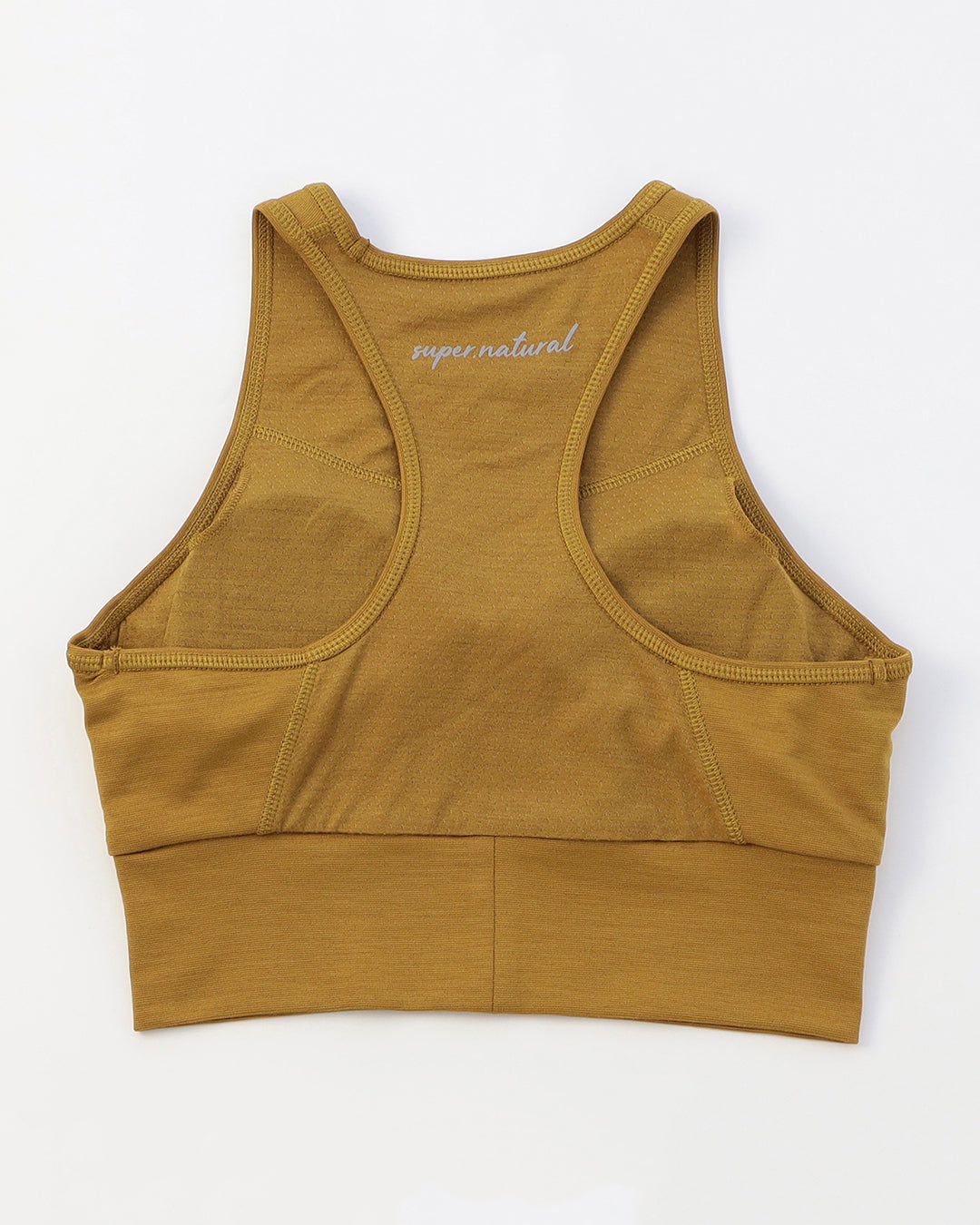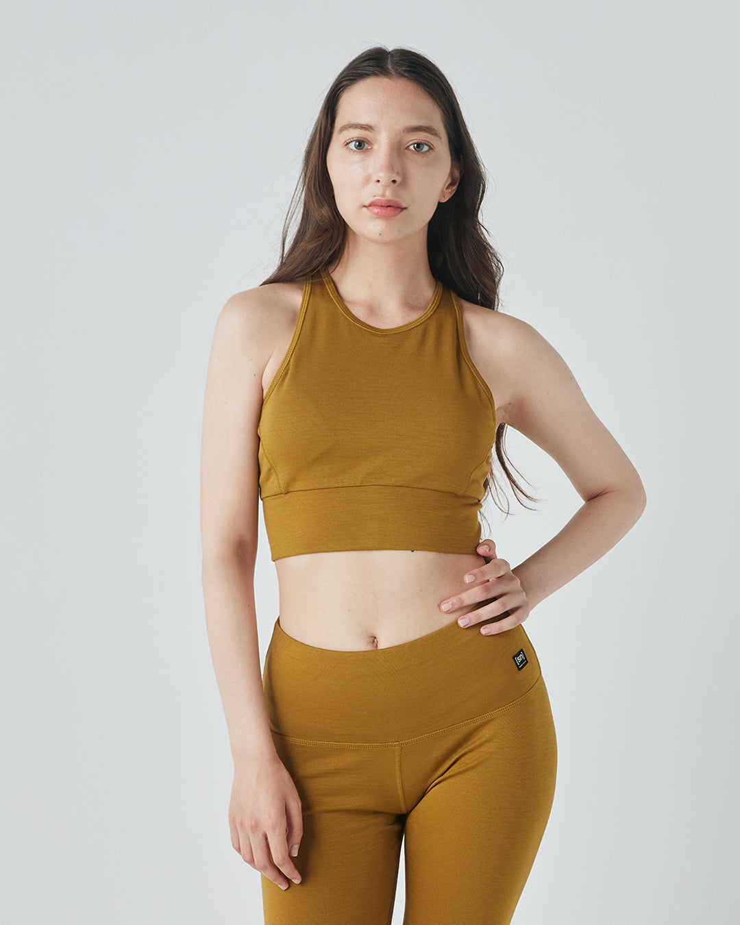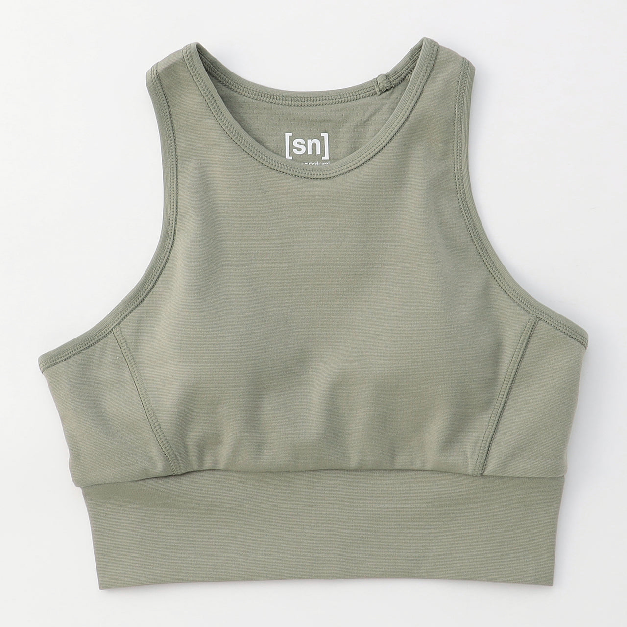 長めの着丈・ネックの詰まりが特徴のデザインブラトップ。