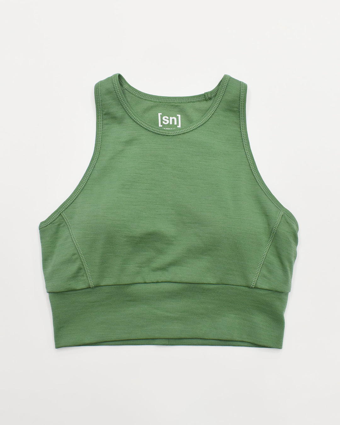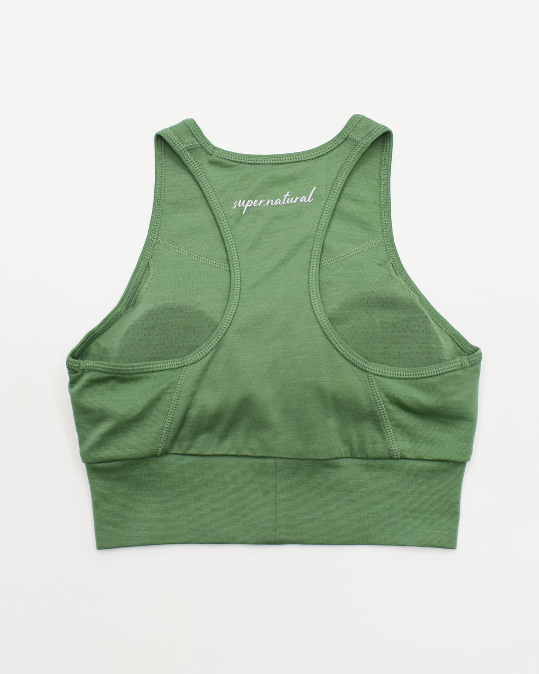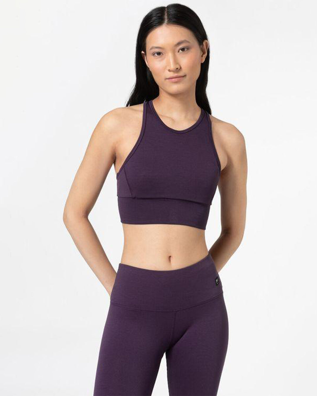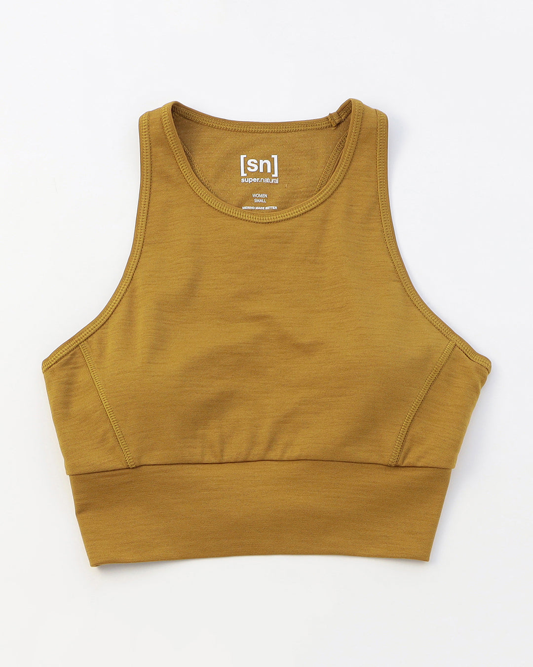 長めの着丈・ネックの詰まりが特徴のデザインブラトップ。