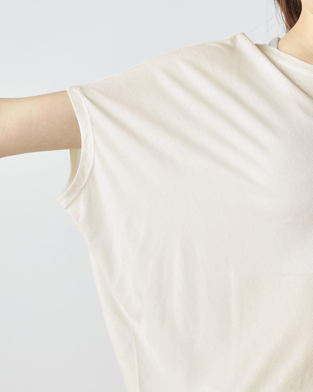 あきすぎないネックは首回りを綺麗に見せつつ、前屈みなどの動きにも安心。