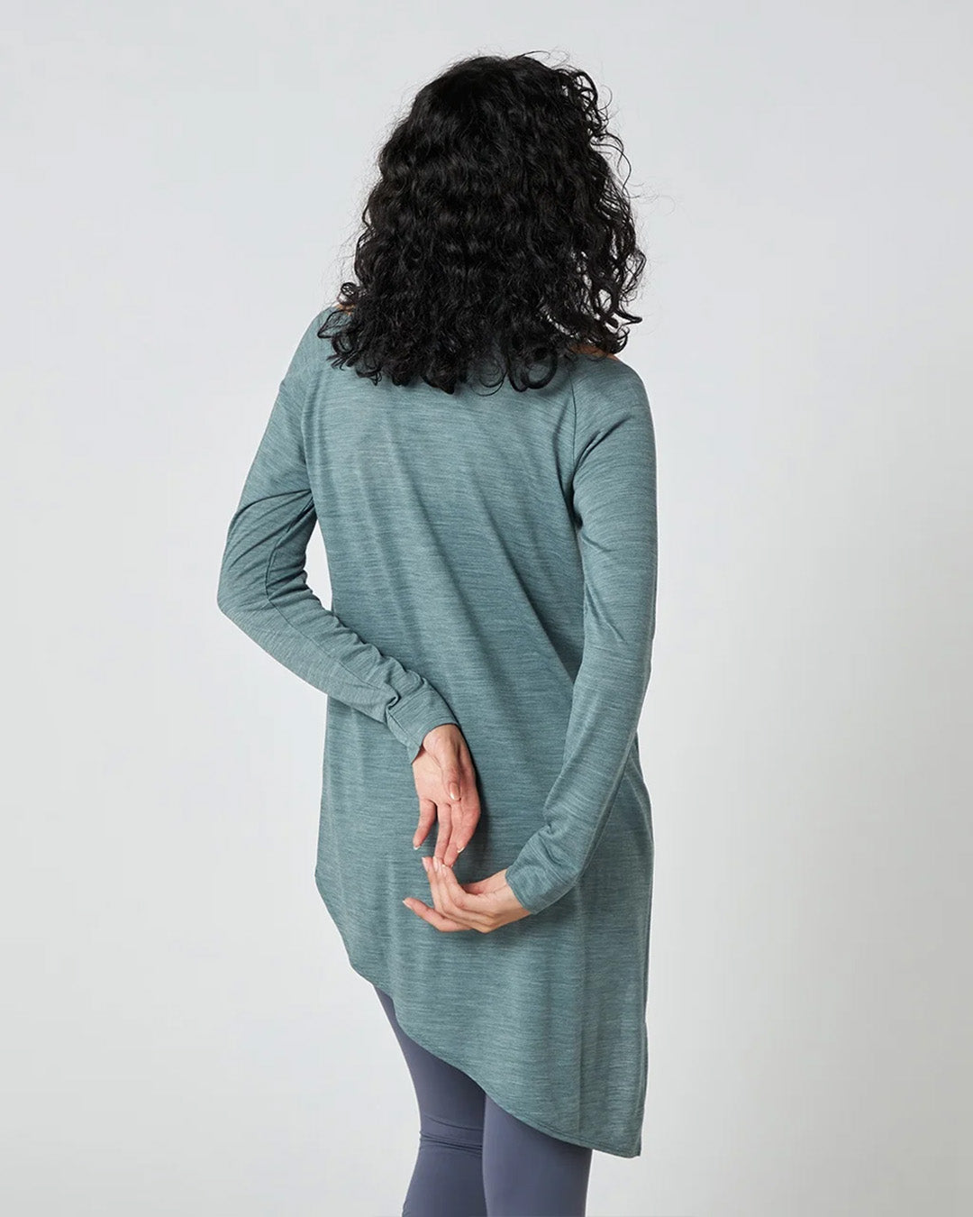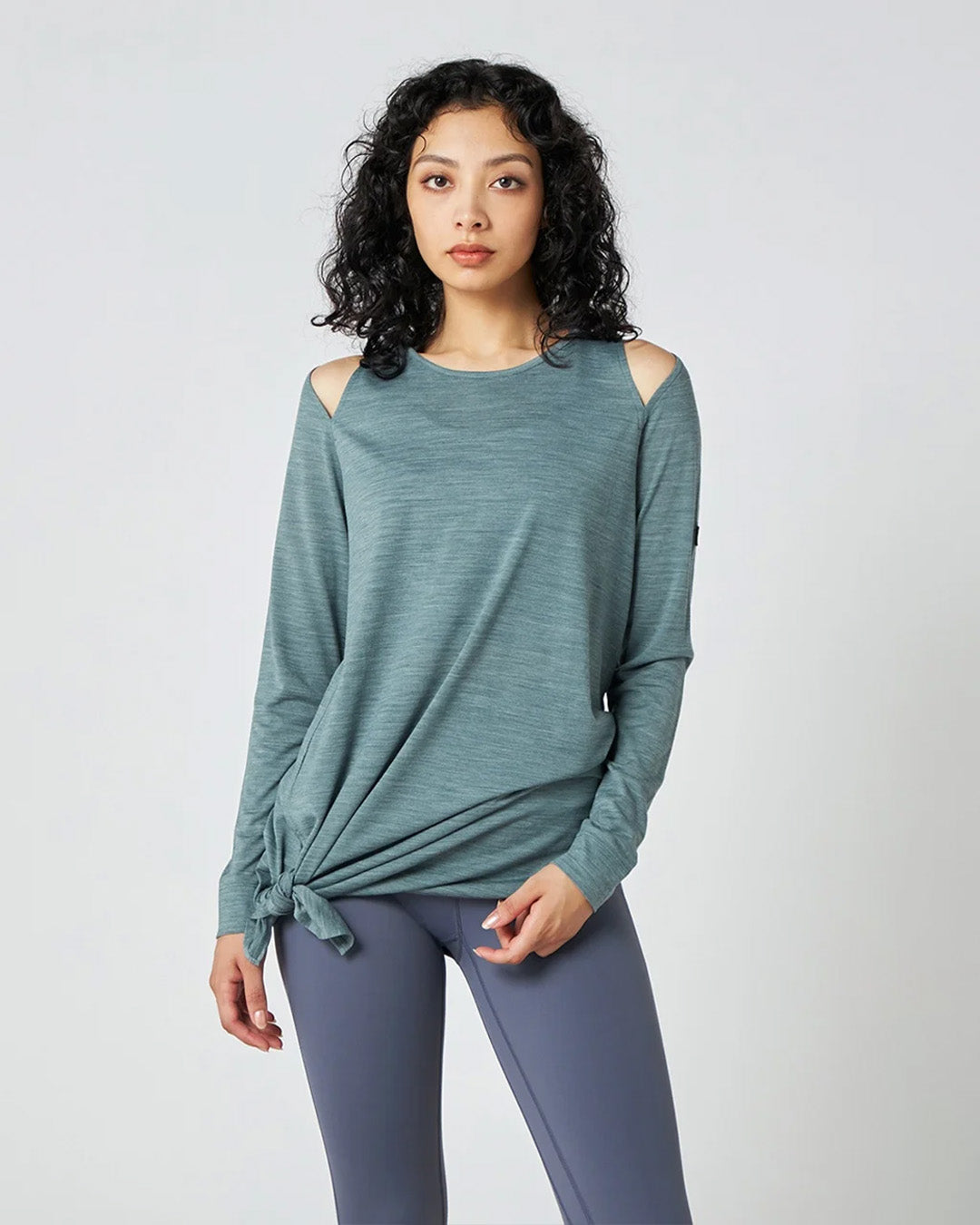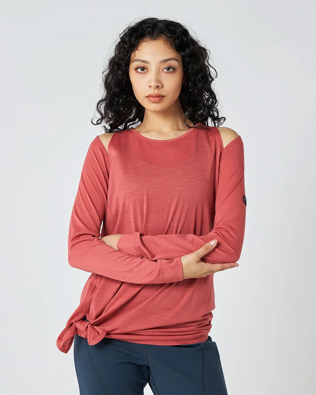裾のスリットを結んでもサラッとそのまま着ても様になる長袖TEEです。