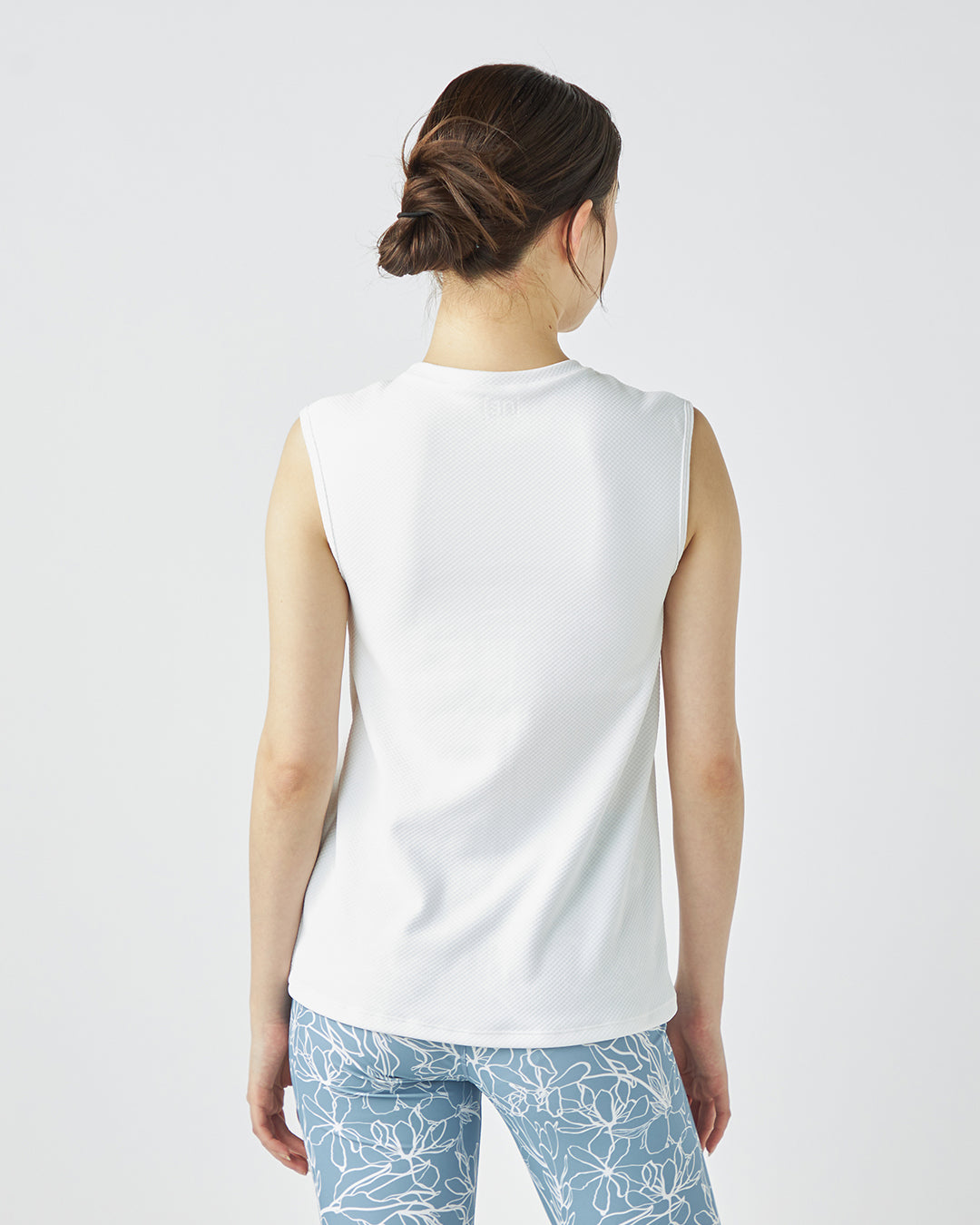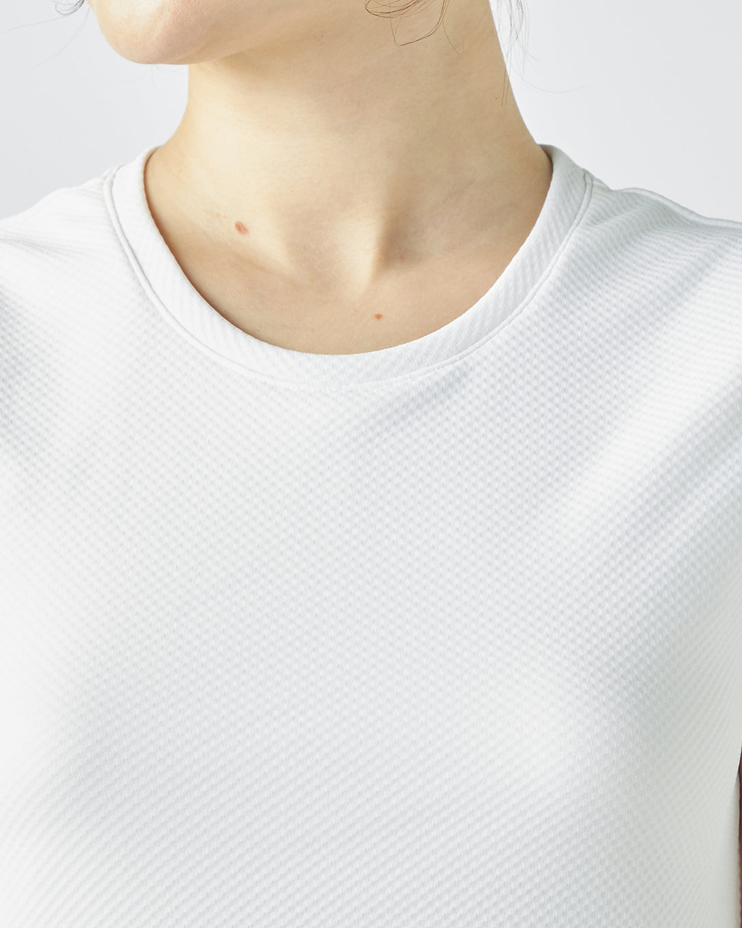 素材に汗を吸収して素早く発散することで快適な着心地を保つCOOLMAX® EcoMade(ケミカルリサイクルから生まれるエコポリエステル) を使用したハニカム生地を使用。
