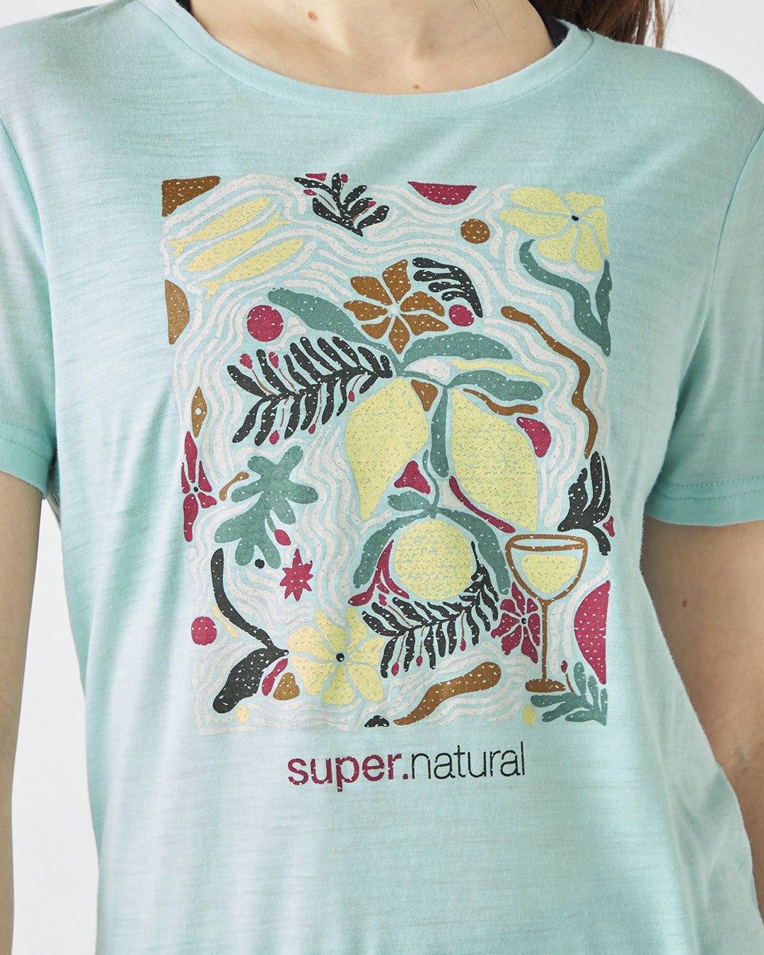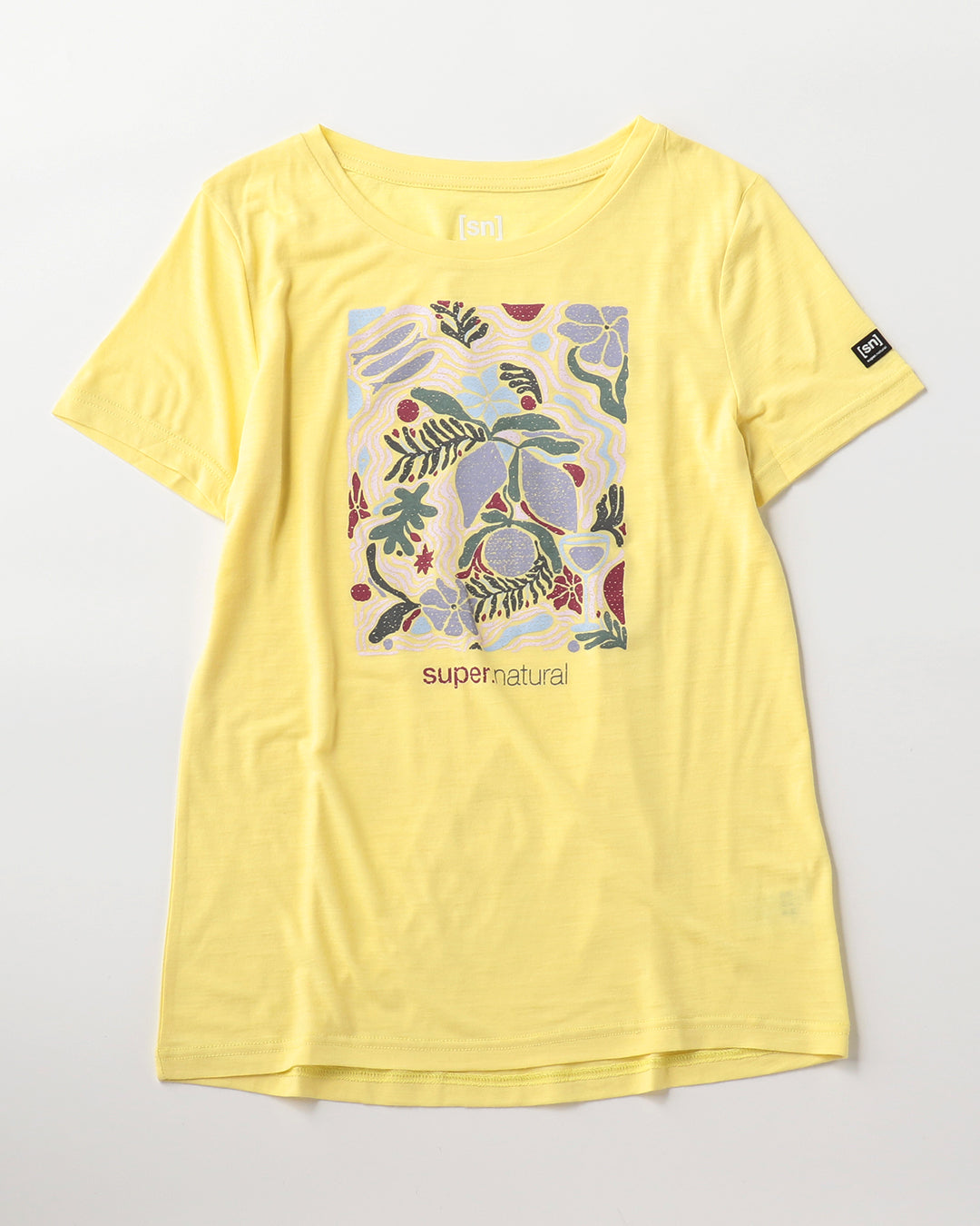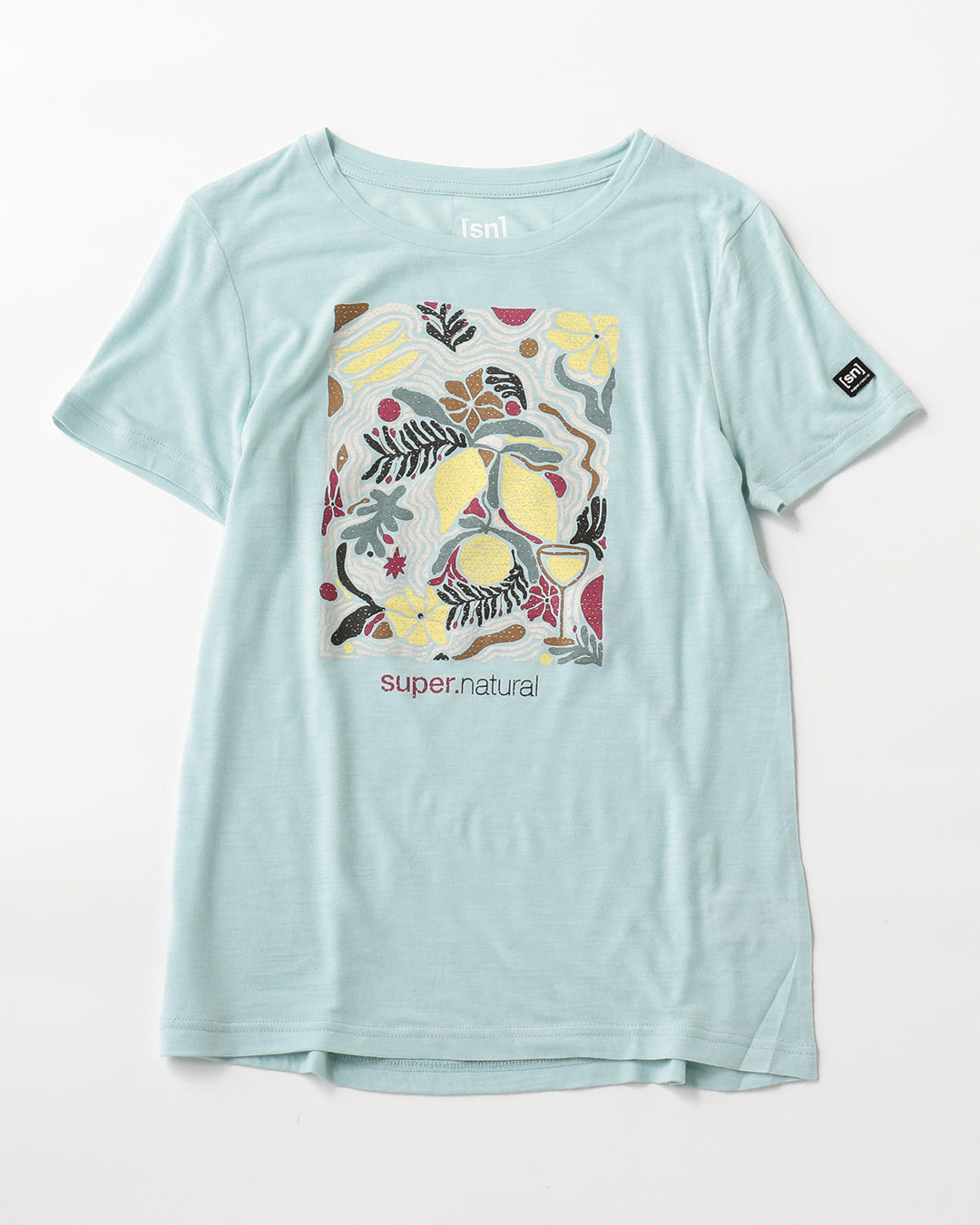 明るいカラーリングのボタニカルプリントが<幸せな生活(Dolce Vita)>を感じさせるグラフィックTシャツ。