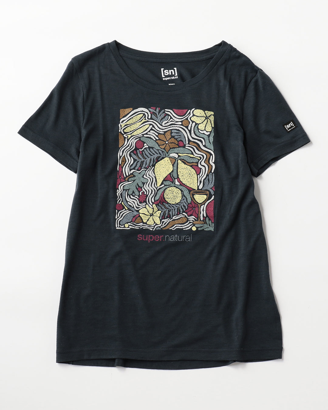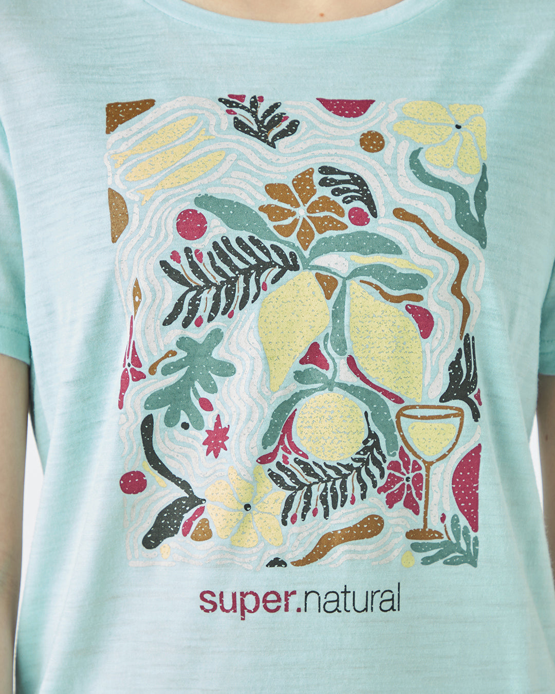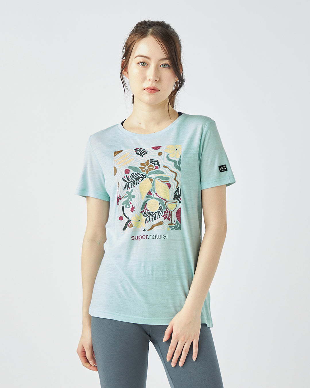 明るいカラーリングのボタニカルプリントが<幸せな生活(Dolce Vita)>を感じさせるグラフィックTシャツ。