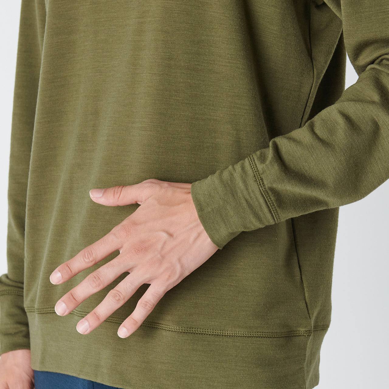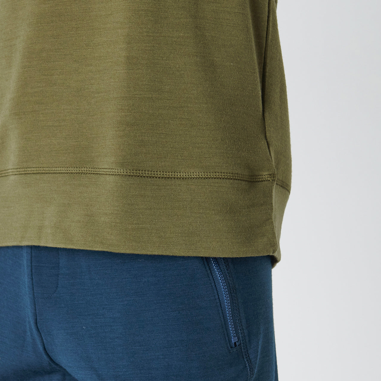 人気素材、TERRY LOOP 220を使用したクルーネックのスウェットで、ウールを47%使用、さらにハイテク素材とのハイブリッドなので、両方の良いところが生かされています。