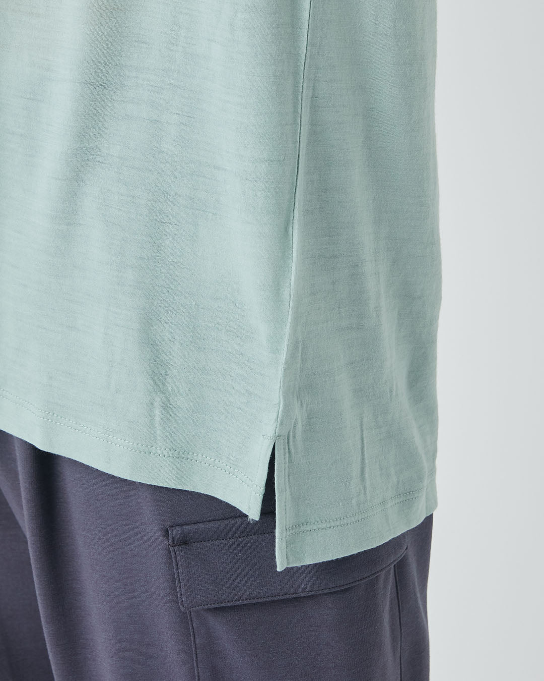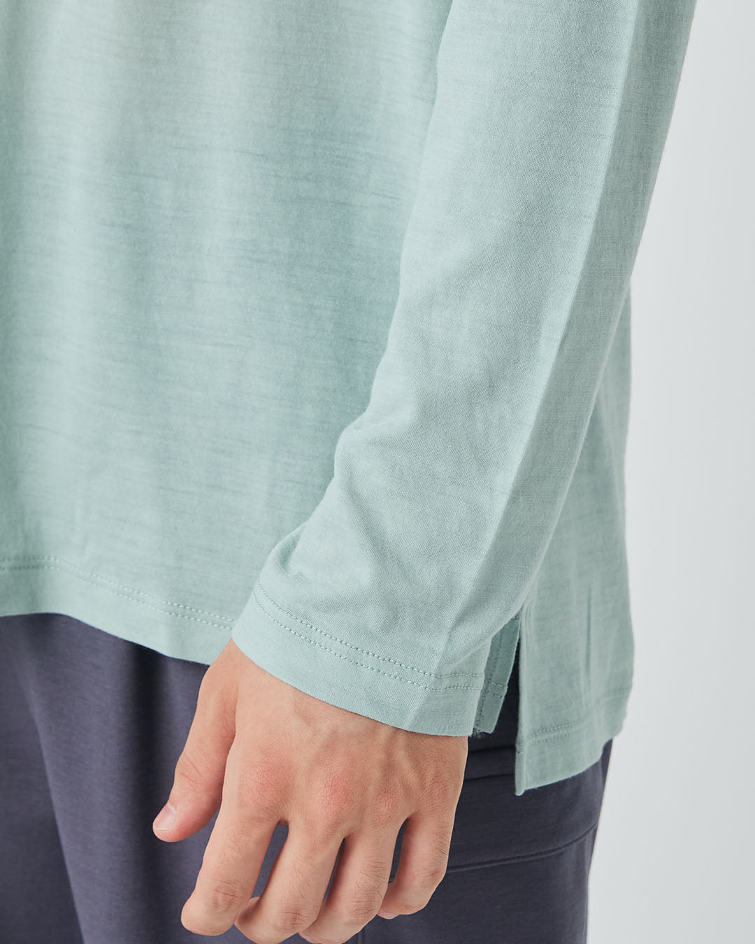 運動時の汗もさらりと乾くので汗冷えを防ぎ、いつも快適な状態です。重ね着しても収まりがよく、単品で着てもきれいな形です。
