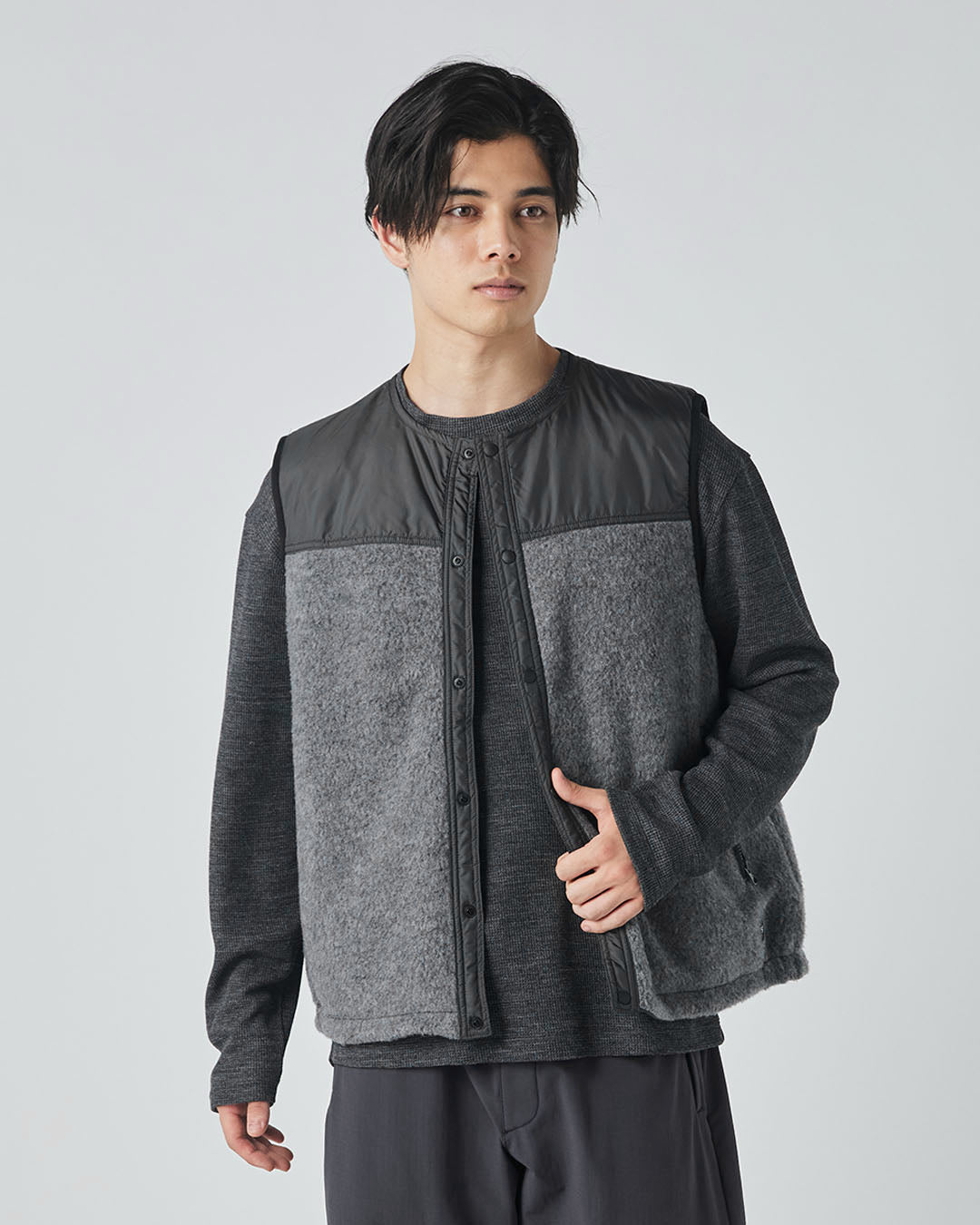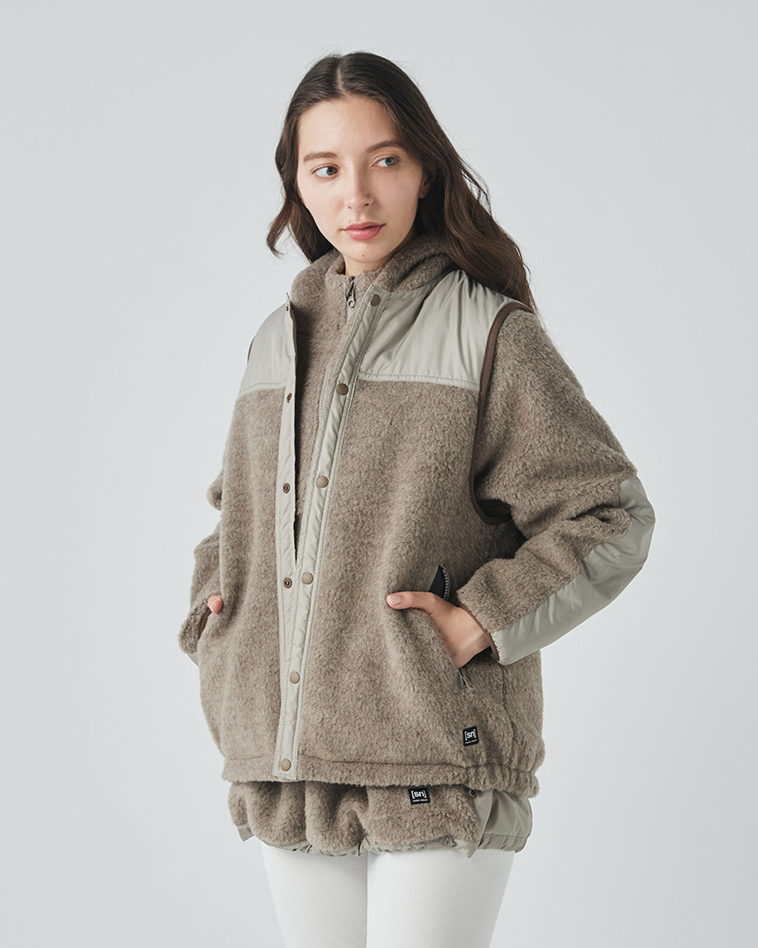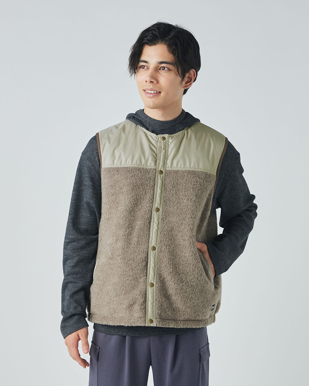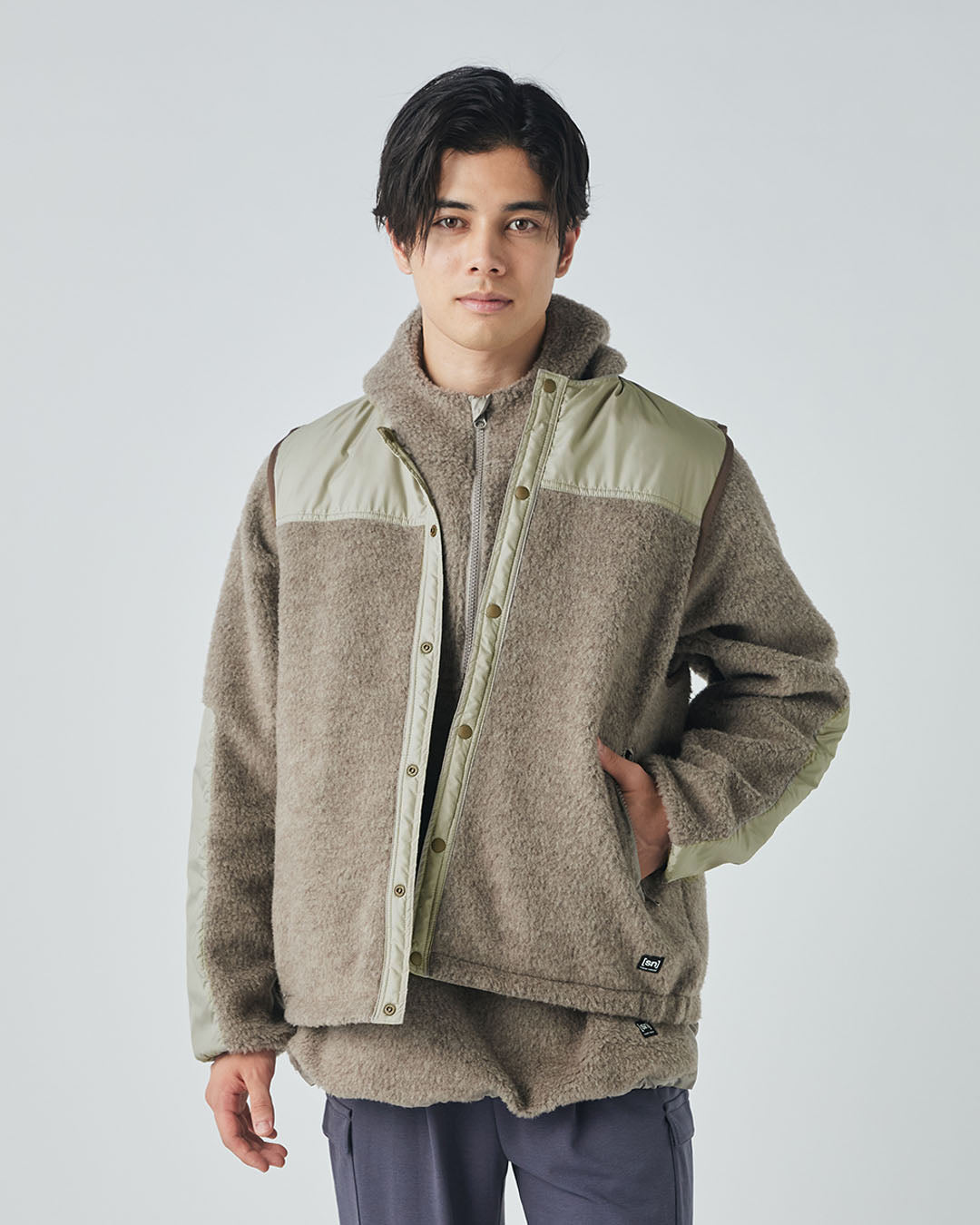 ボリュームのあるメリノウールフリースは毛足の長く、TOP調のナチュラルなカラーでウール本来の良さを味わえる素材感。