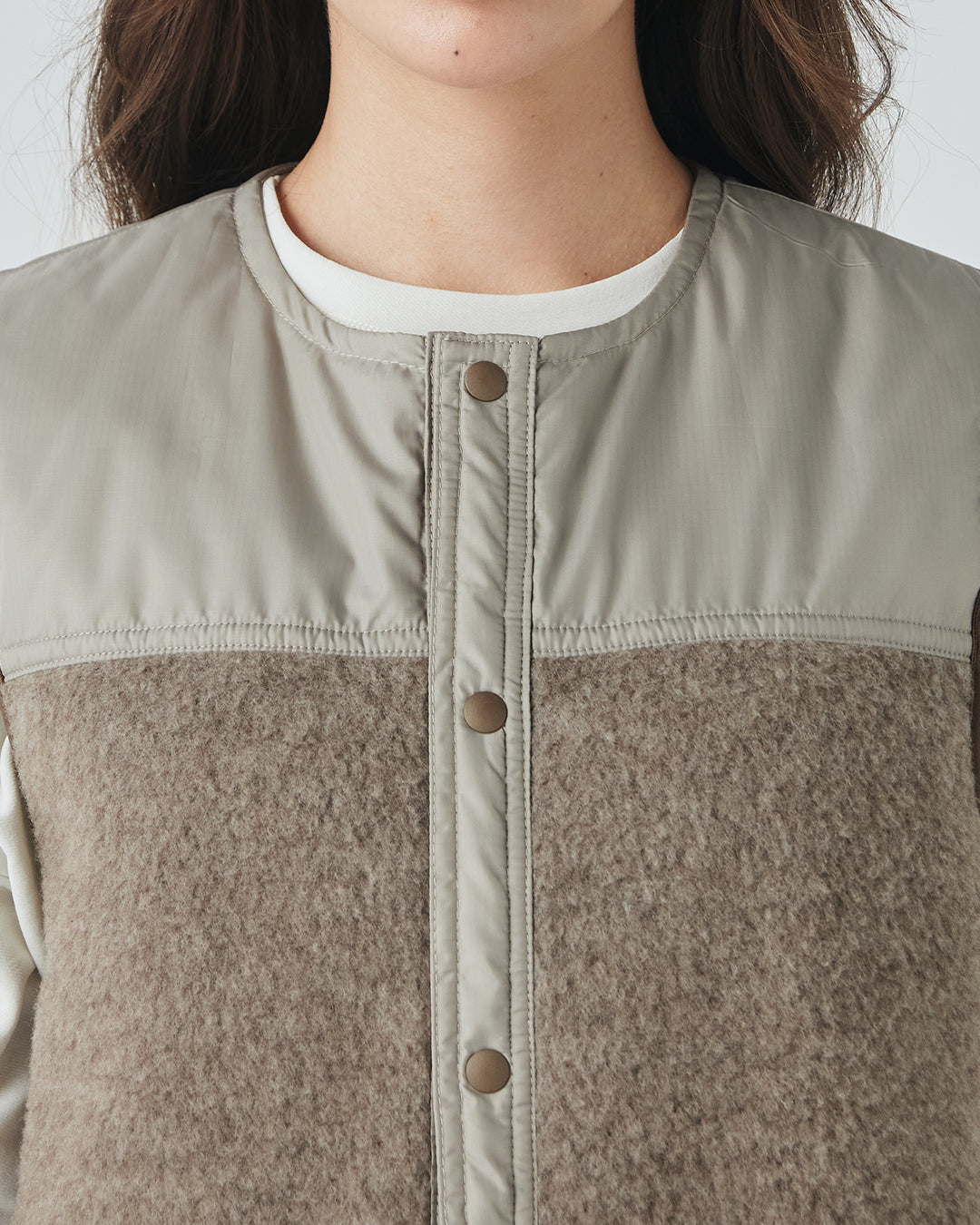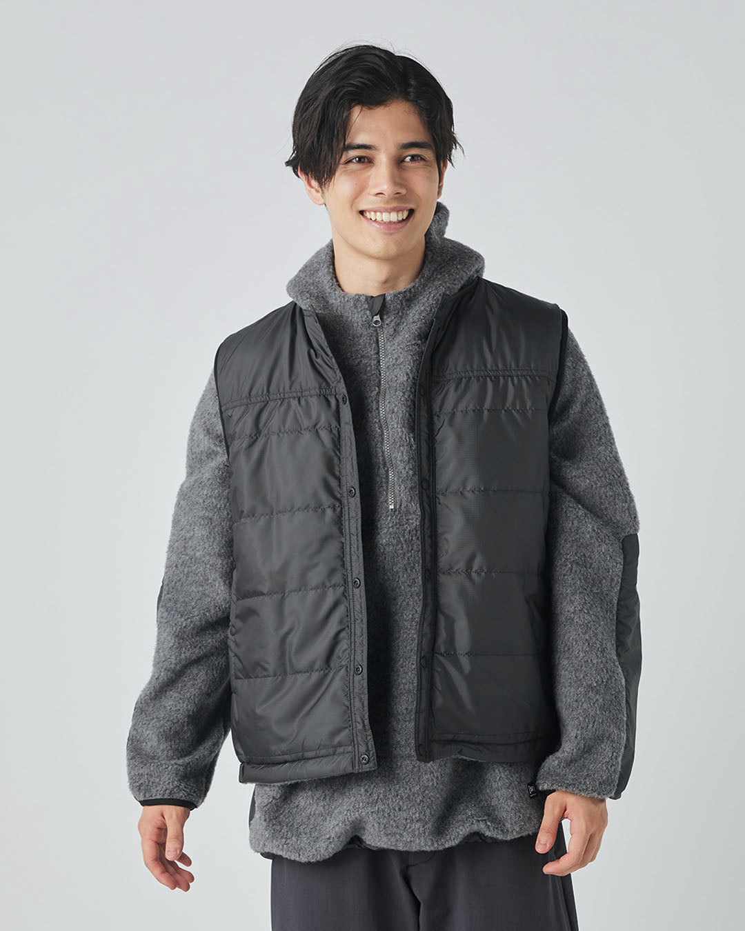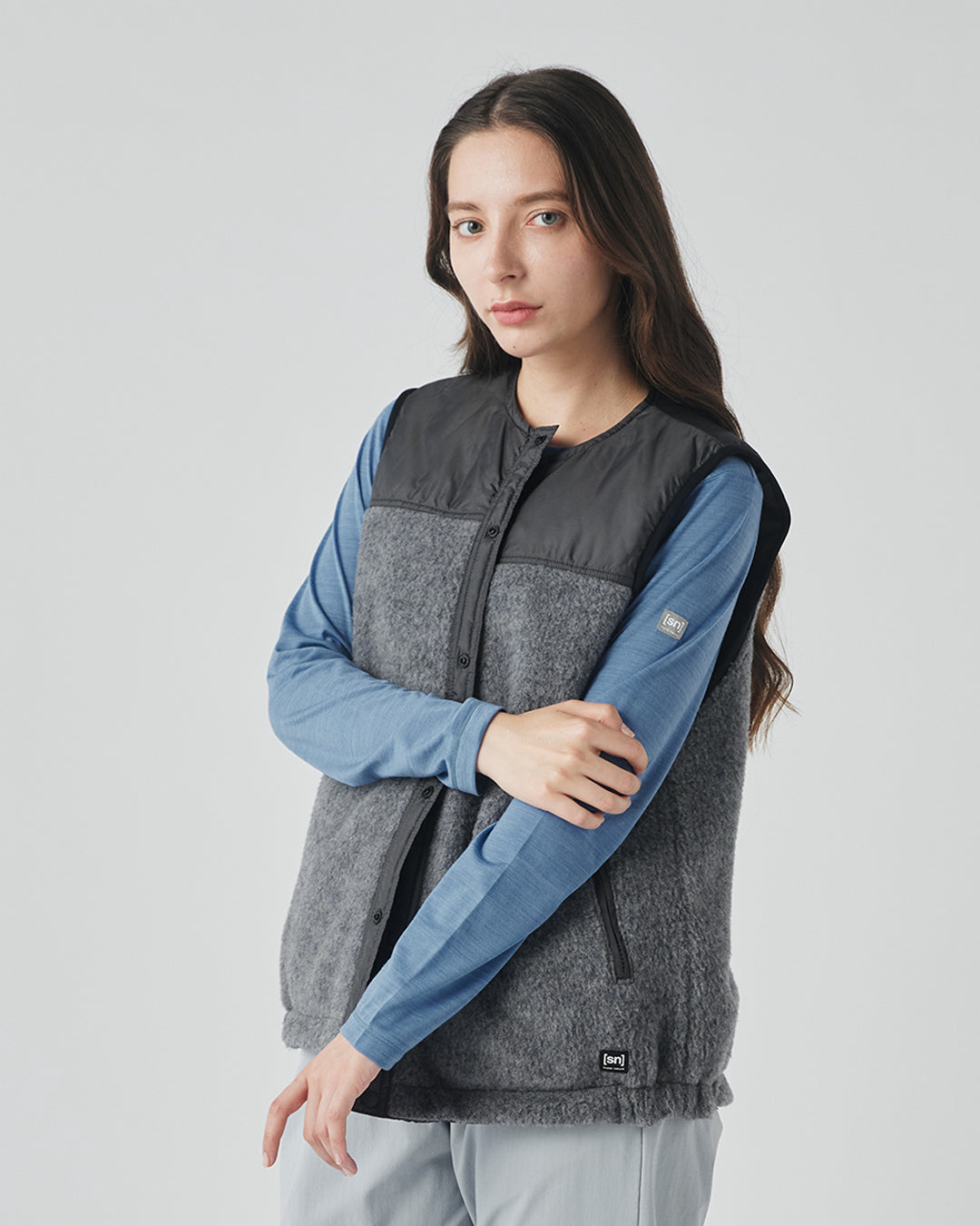 メリノウールフリースを贅沢に使用した、軽くて暖かいユニセックスベスト。