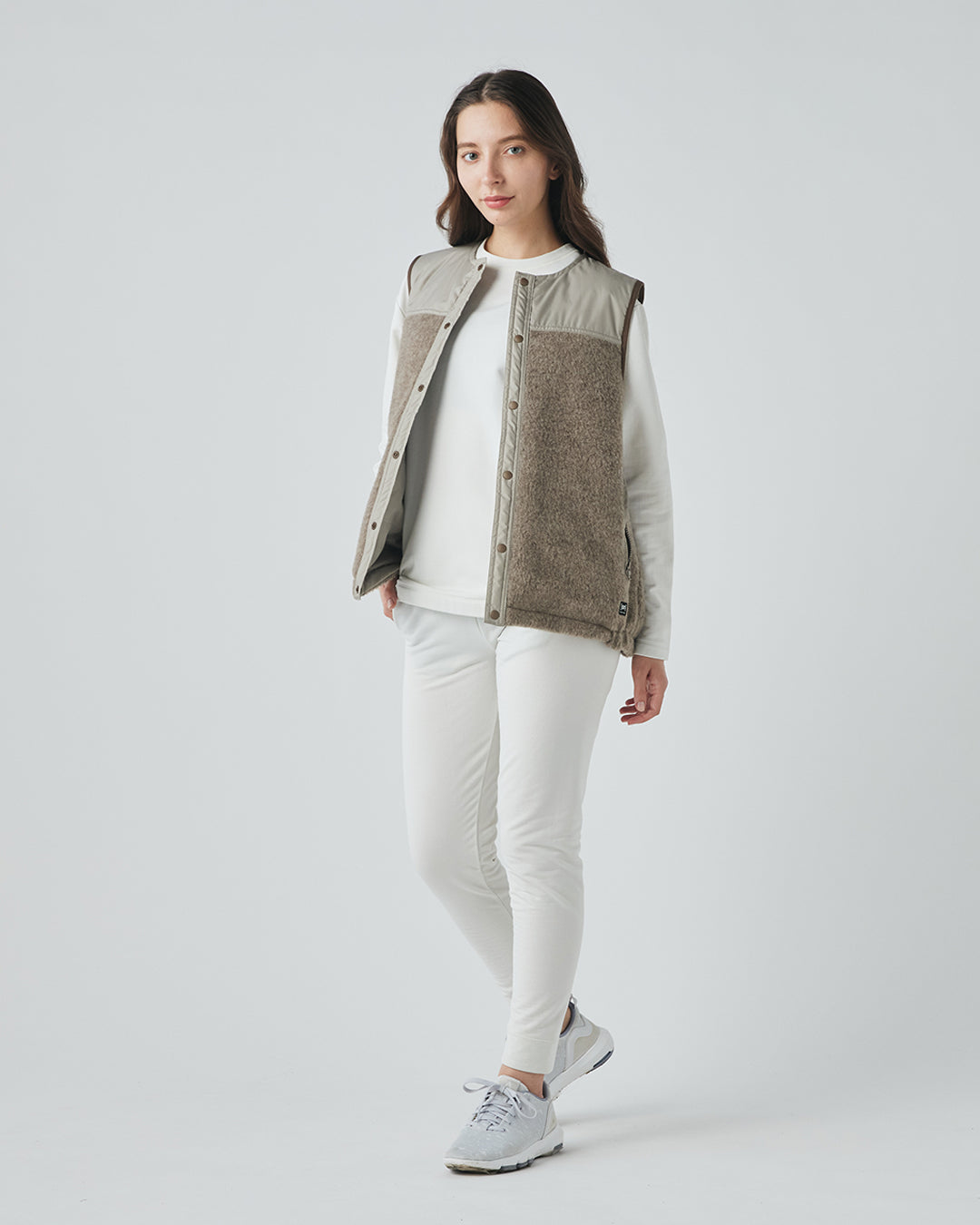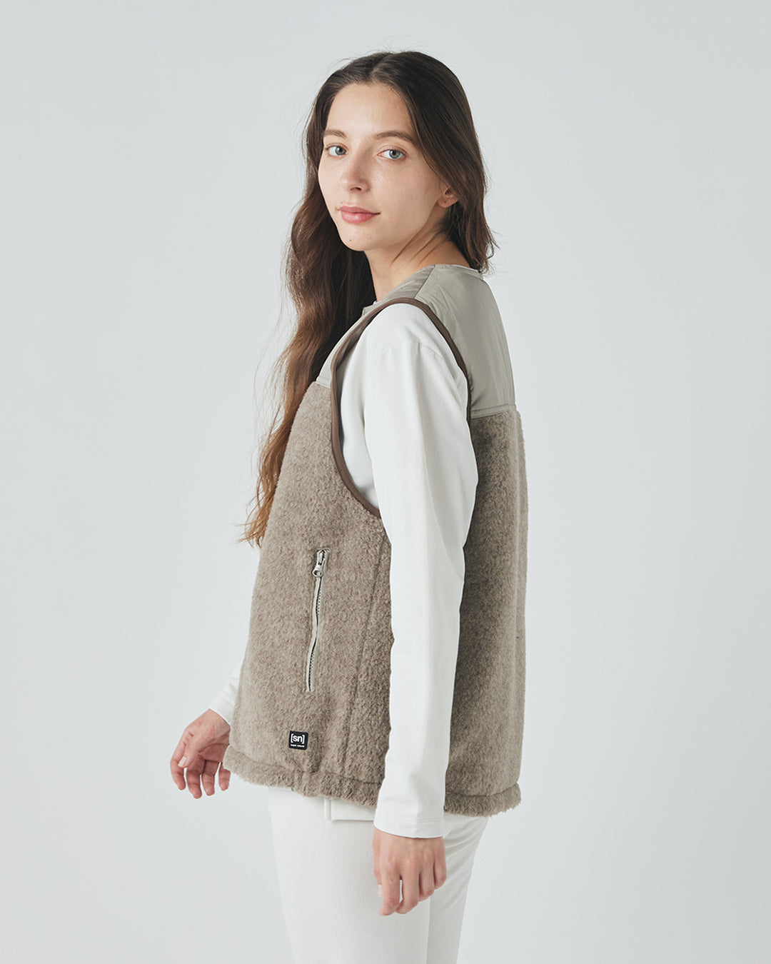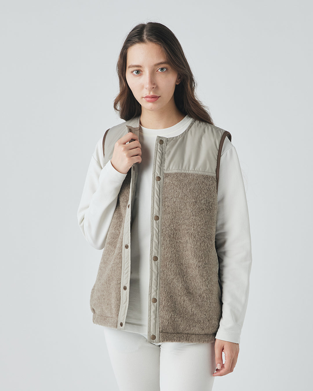 メリノウールフリースを贅沢に使用した、軽くて暖かいユニセックスベスト。
