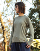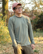 ・ラグランスリーブにすることで腕が動きやすく、ザックが縫い目に干渉するのを防ぎます。また、切り替え箇所の肌あたりが気にならないよう、縫い目はフラットシーマを採用。