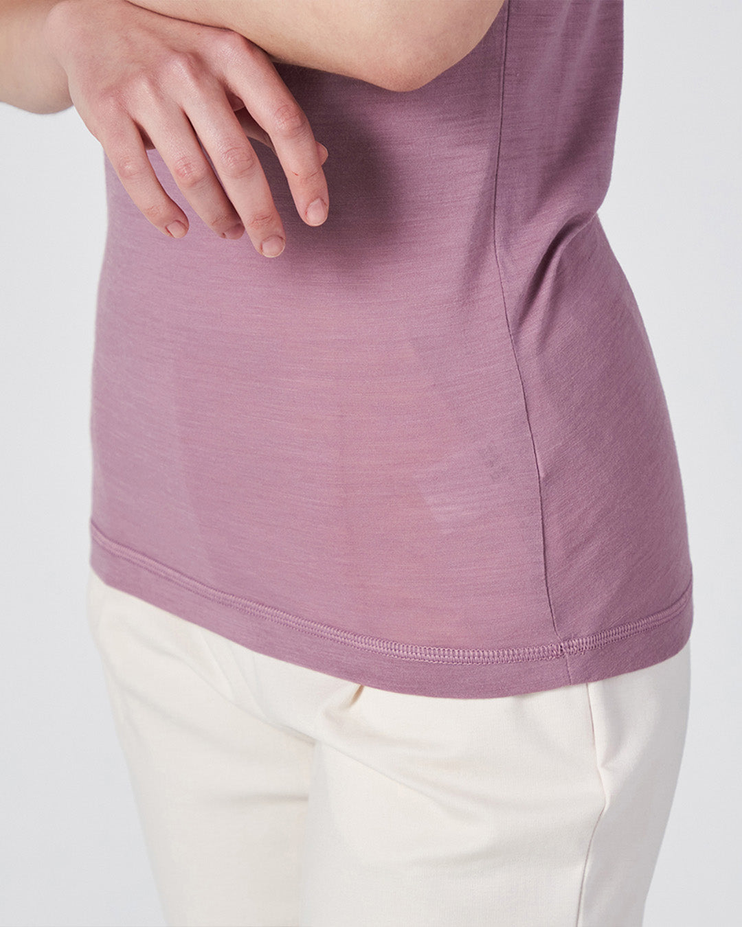 シンプルながらも洗練されたシルエットは、ベースレイヤーはもちろん、一枚での着用もおすすめです。