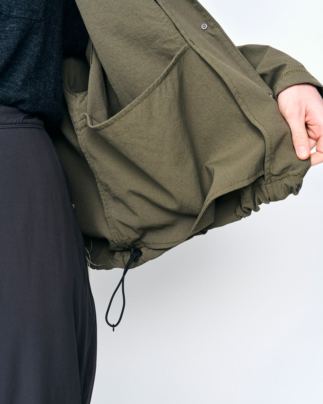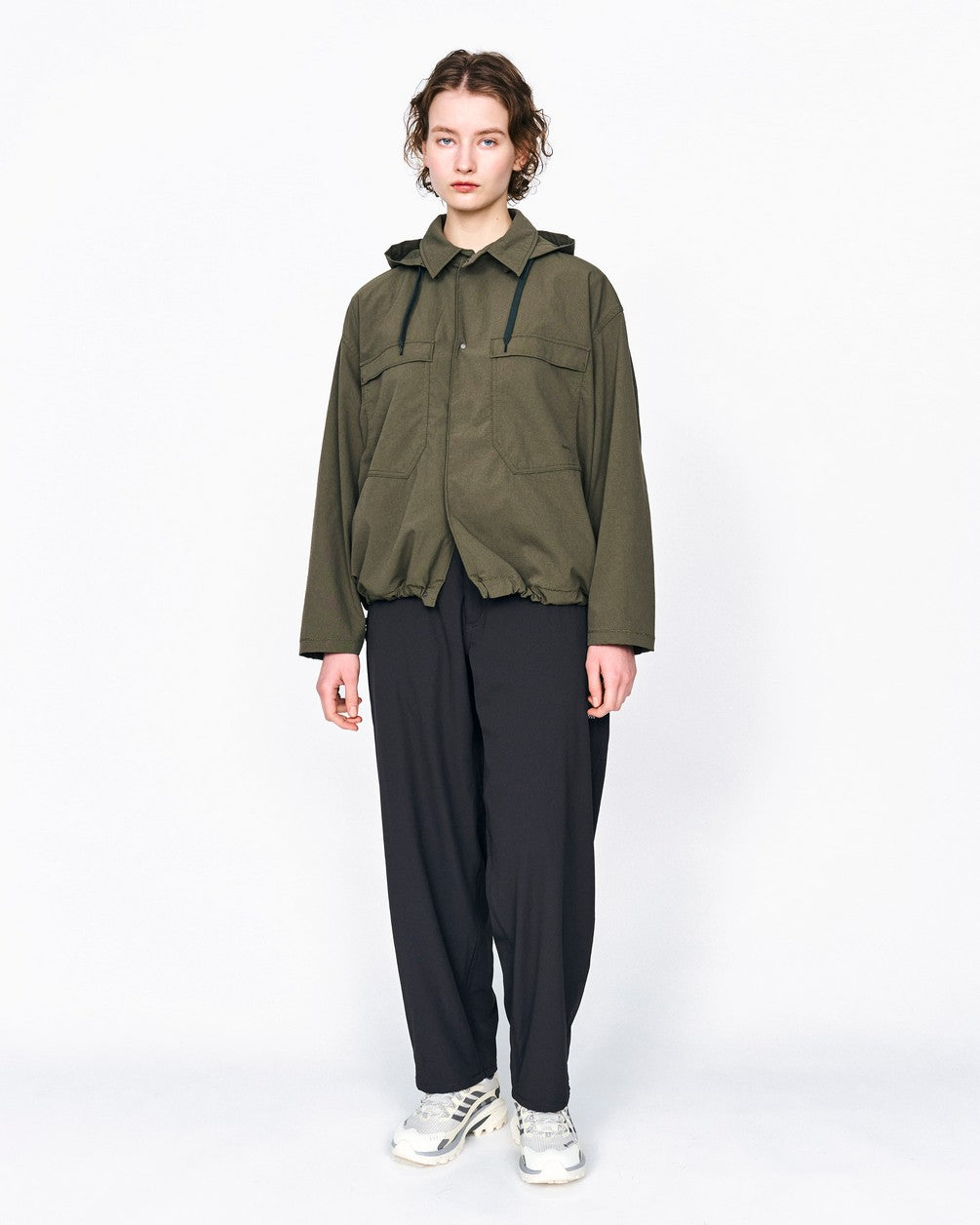 高い撥水性能を持つファブリックを採用するフードジャケット。