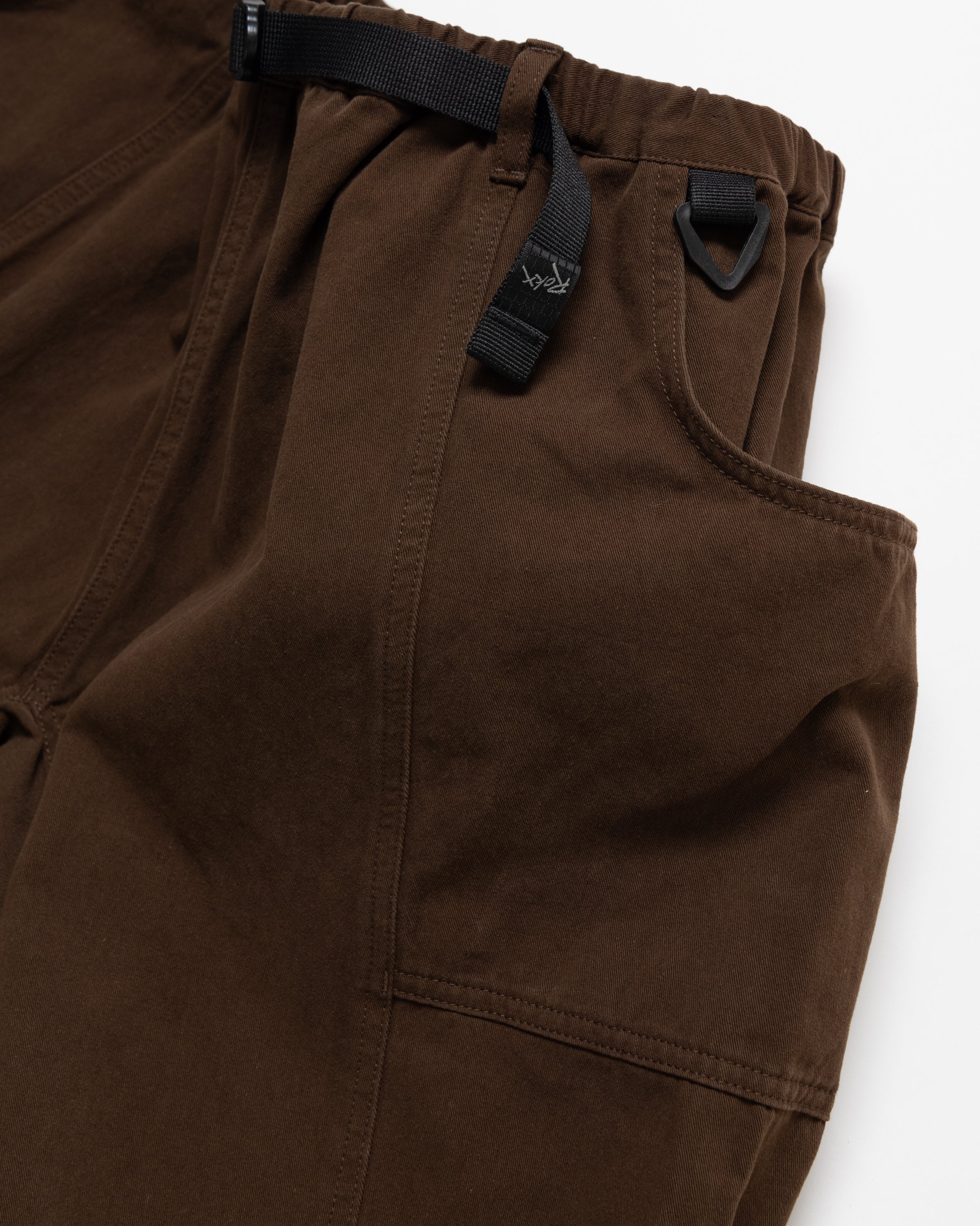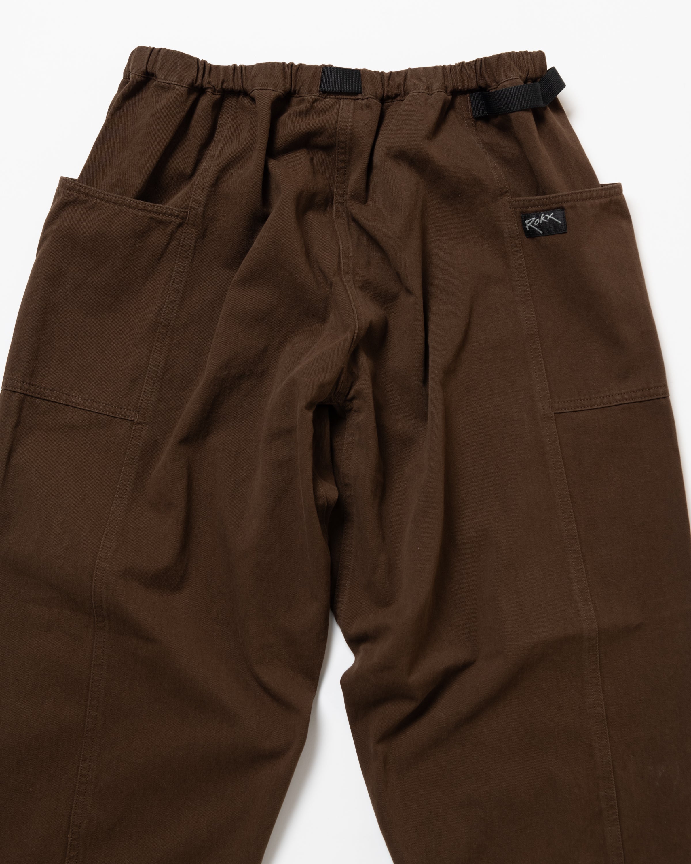 大胆なほど大きなシルエットになってますが、裾にかけてテーパードなのでクライミングでも邪魔になりません。