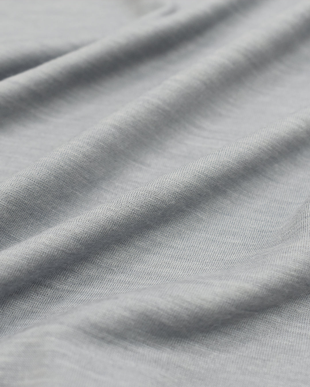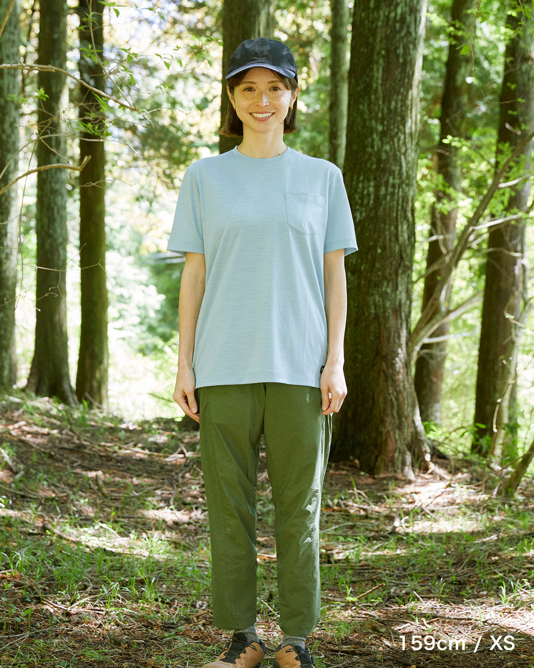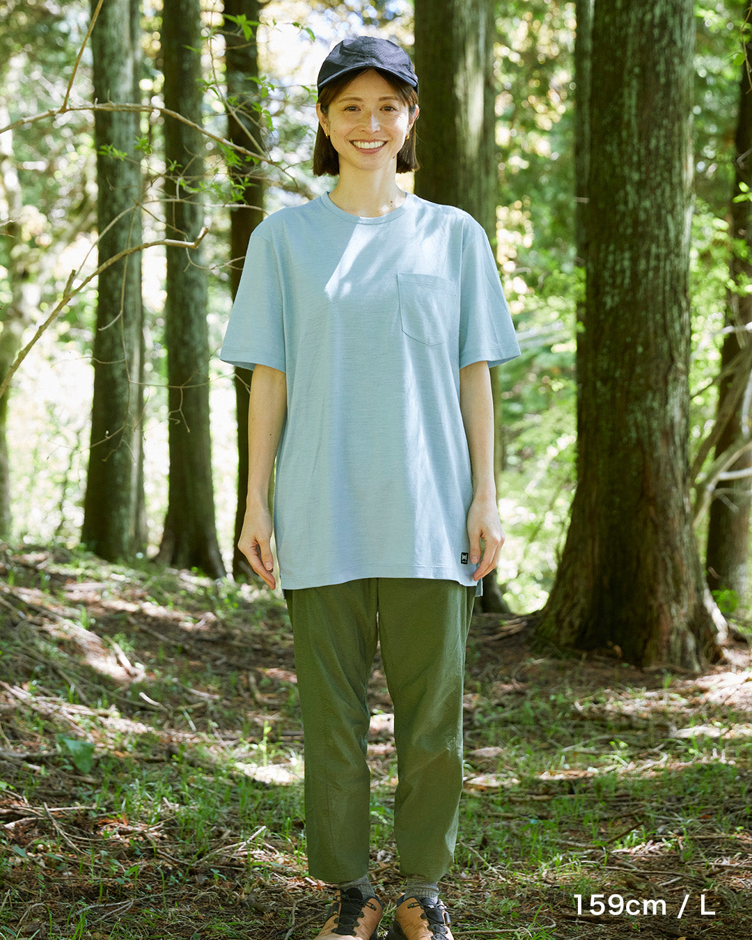 特にこだわった素材は、ポリエステルとメリノウールの強みのバランスが取れた「メリノウール×ポリエステル混紡」を採用。ポリエステルの一部をリサイクル素材を使用した、環境に配慮した素材です。生地の厚みは170と、少し厚みを持たせて透けにくくしています。