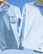 狭すぎて首が苦しくならないようにもバランスをとった、インナーウェアが見えにくい首の広さ。半袖タイプには、ワンポイントで胸ポケットがあります。