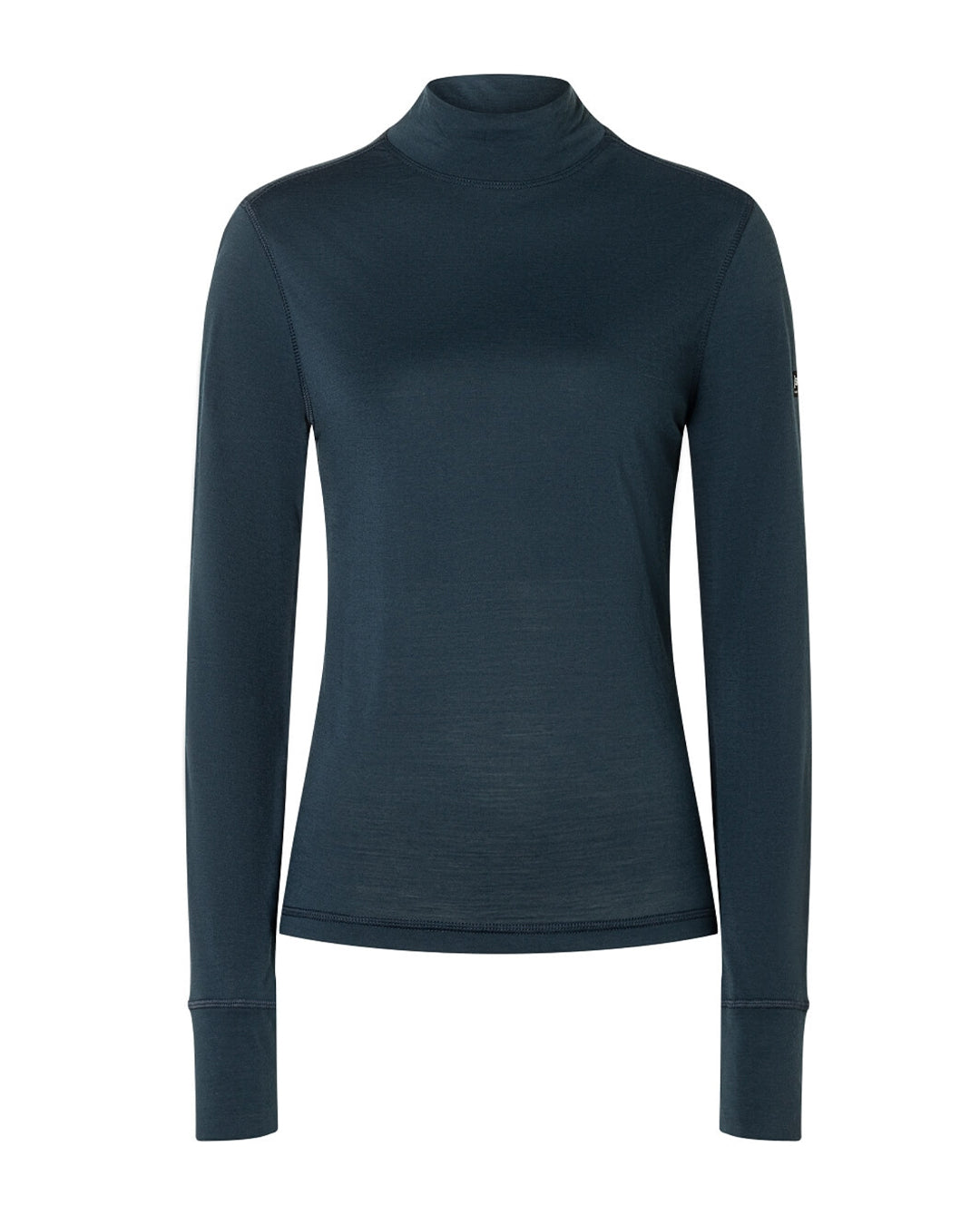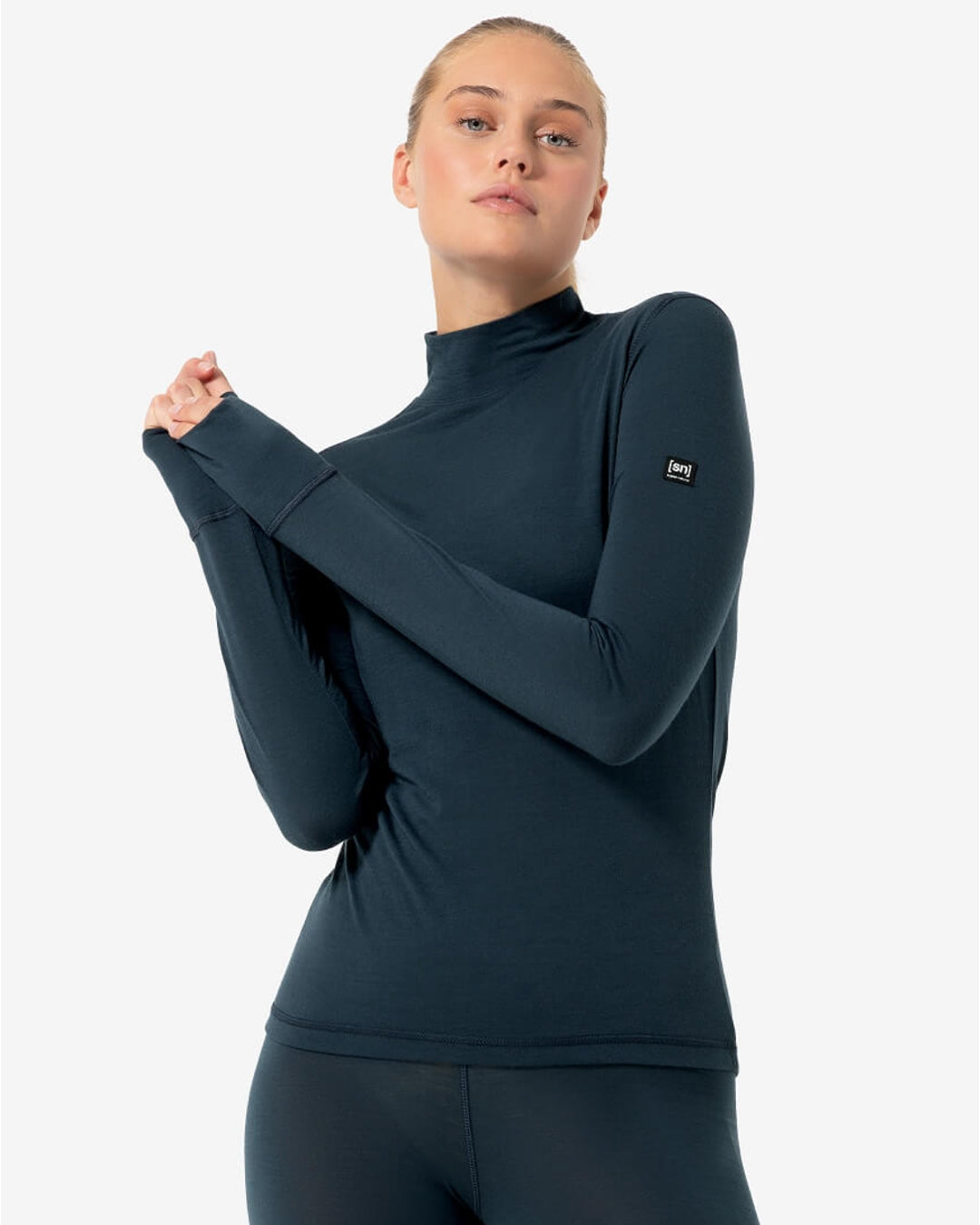折り返しのないタートルネックモデルは、スッキリとした首周りながらも、首元までしっかりと温めてくれます。